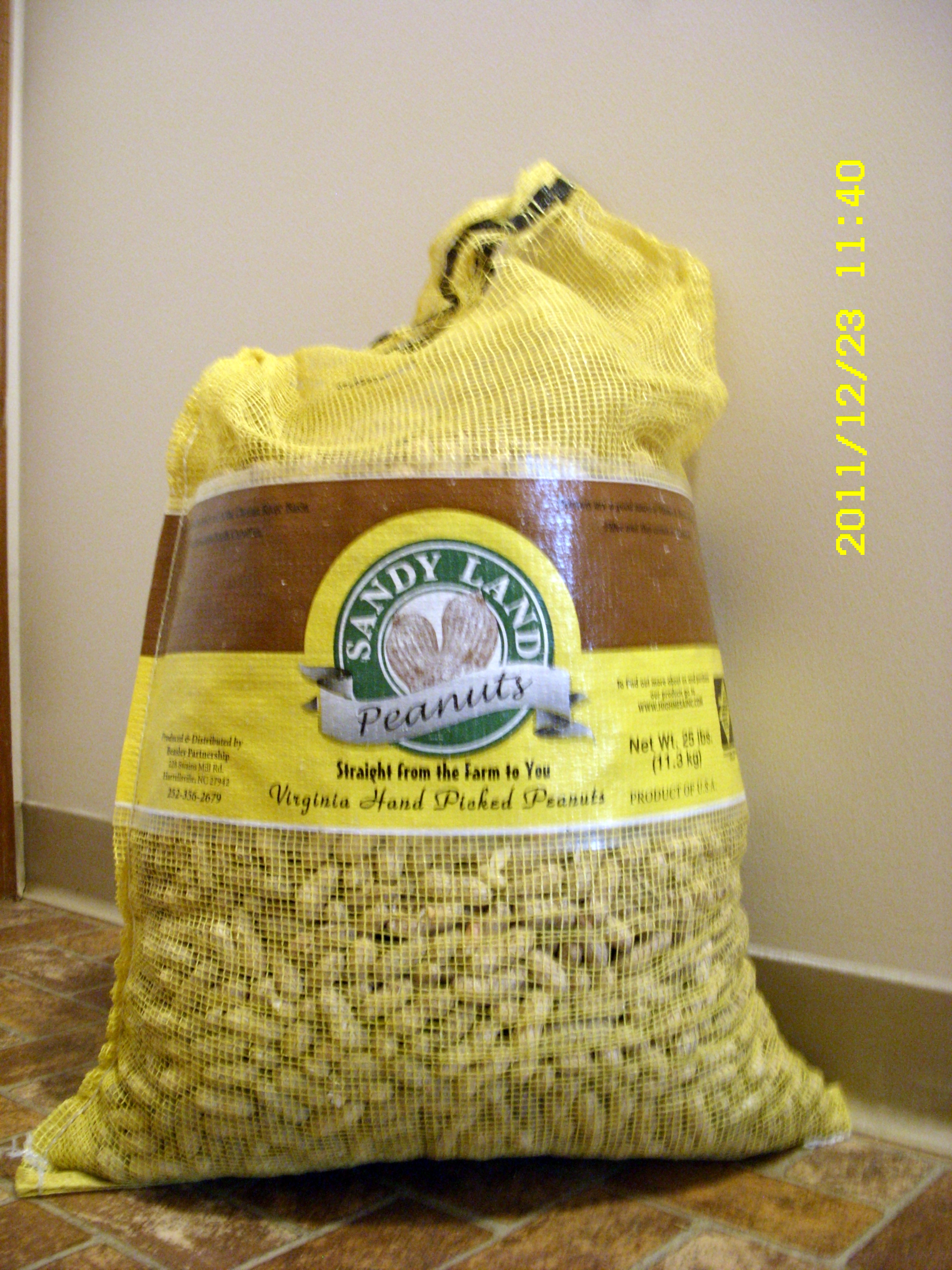 Mid-afternoon, impulsively, I got in the car and drove about twenty miles to the Wild Bird Center. I needed more whole peanuts for my fine furry friends. Oh, how they love the peanuts from that new feeder!! I browsed the store but limited my purchases to a twenty-five pound bag of peanuts and a book that identifies the birds in the Carolinas. It’s time I learn the names of my feathered friends that visit my eight bird feeders.