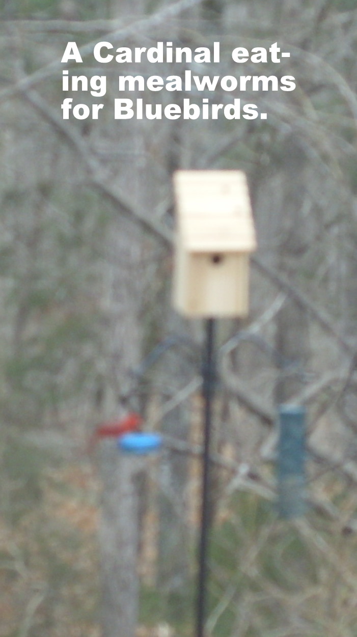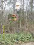 Well, I exerted a lot of almost non-existent energy to spray paint one wrought-iron post and erect it. It is 63 degrees as I write this (at 4 PM) and it has been a delightful afternoon, weather-wise. I’ll accept an “E” for effort but the project gets an “F” for failure. I don’t have enough strength to drive the pole into the ground. I hammered, and hammered, and ruined the top of one post!! I put the Bluebird house on top… and the whole thing toppled to the ground!! (Not that the Bluebird house is very heavy.) The bar-bells have too small a diameter so I couldn’t use them to secure the post. (But they will work for future projects.) I drove a smaller post in the ground and have the two tied together. Frankly, I’ll have to give more consideration (and effort) to this specific project. (If we have any wind, I fear it will topple over.) I don’t think I can dig a “posthole” because the ground is full of tree and vine roots. (But I’m not giving up!!)