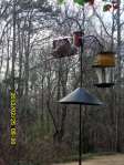 Squirrel insanity this morning!! They are bold and brazen–and determined to get to sunflower seeds in feeders hanging from the eaves or shepherds hooks!! ~~ I think I need to upgrade my camera so I can take a video of the antics of the squirrels. ~~ Sadly, this is a cold and windy day and I will be forced to work on projects indoors. We had tornado warnings yesterday and the bluebird house withstood the wind. But I’ll stabilize that pole in the near future (when the weather is warmer). Note several more Goodwill purchases. I couldn’t resist the Topsy-Turvy upside-down strawberry planter for 99 cents.