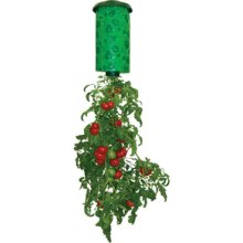 Doing my research, I found the advertisement for this tomato tree. All the details, and fancy picture that you could “zoom” for better detail, etc. “No longer available.” I wasn’t considering the purchase (because quite expensive) but the picture substantiates my belief that I really need to stabilize the hanging basket. My assembly won’t look exactly like the one in the picture but I believe I have enough “stuff” for a sturdy hanger. I see this as a challenge!! I don’t want my brain to vegetate, ha! (“Vegetate” = become a vegetable.) All the articles about upside-down planters discuss the huge amount of water to sustain the plant(s). ~~ I have a concern: Will the plant(s) survive for a week when I leave for camping events?? I have reservations for two events this Spring.