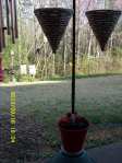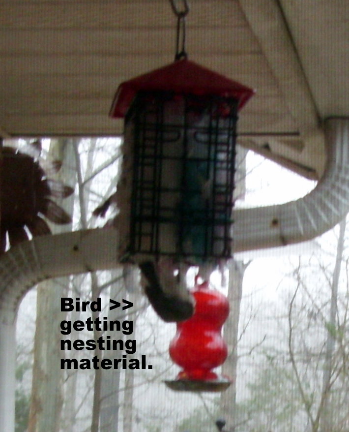 I’ve seen the Bluebirds a couple of times and hope they will adopt the bird house. No interest yet (that I’m aware of) in other bird houses, and baskets, scattered at the perimeter of my yard. Some birds must already be creating nests because lots of visitors to the container with medicine-bottle cotton, string, and shredded cotton rags. I added dryer lint yesterday because I recently learned the birds love dryer lint.