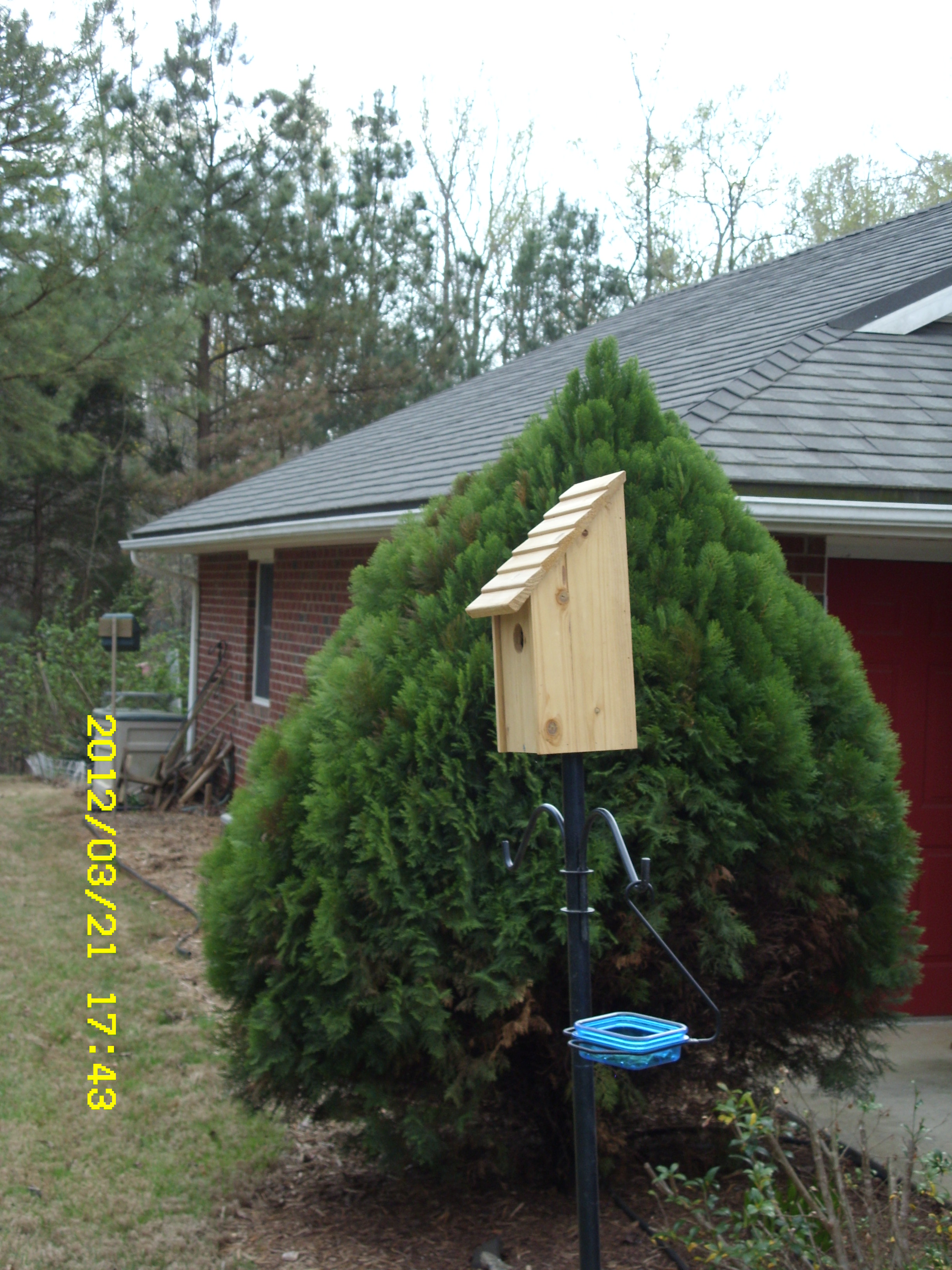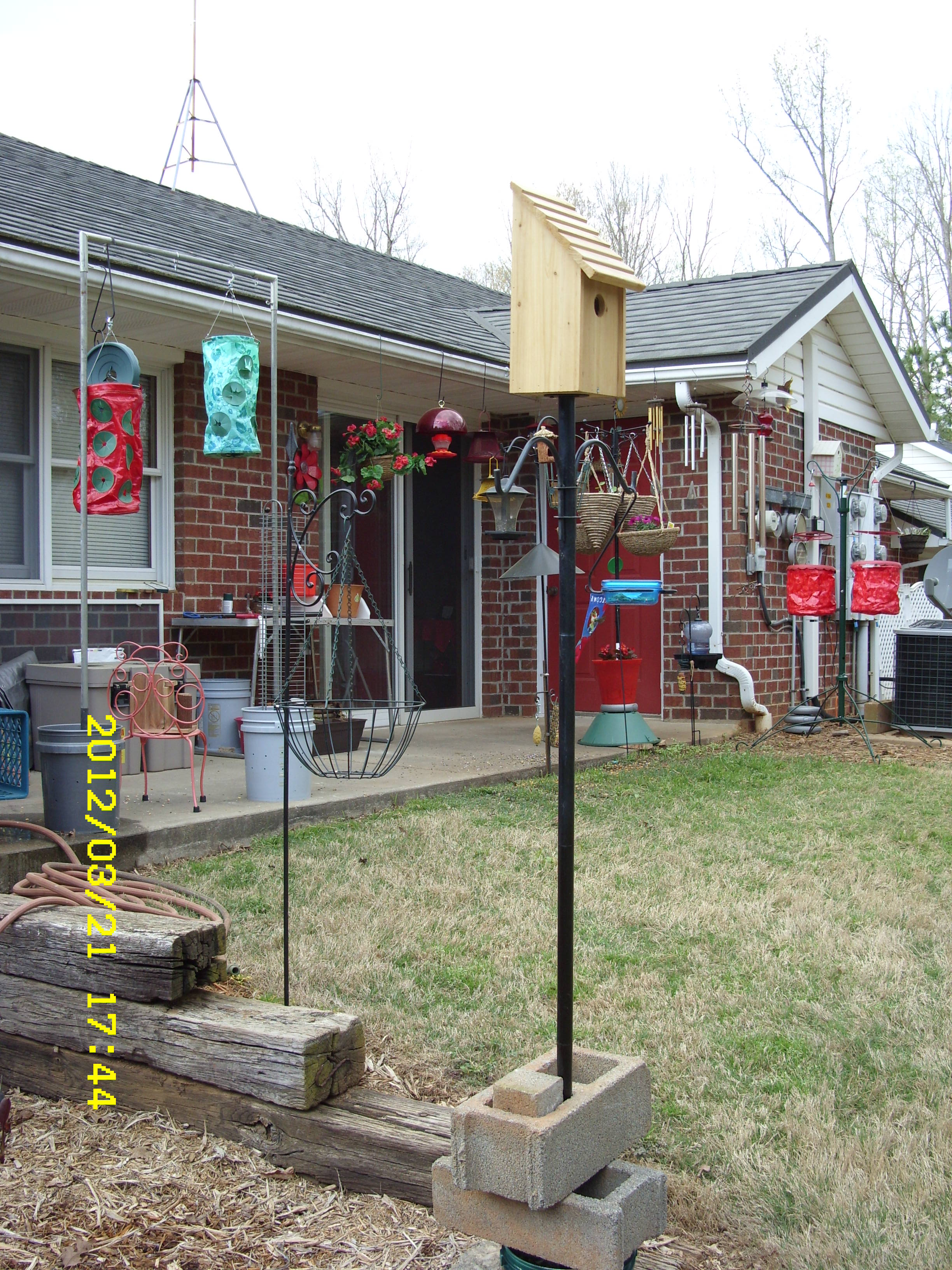 In my humble opinion, the area looks rather naked now. I really enjoyed watching the birds, and squirrels, at that location. Speaking of squirrels, I wonder if they created these problems–or did a raccoon?? (Furthermore [boo hoo], now I can’t see the Bluebird house from my comfortable chair.)