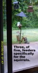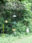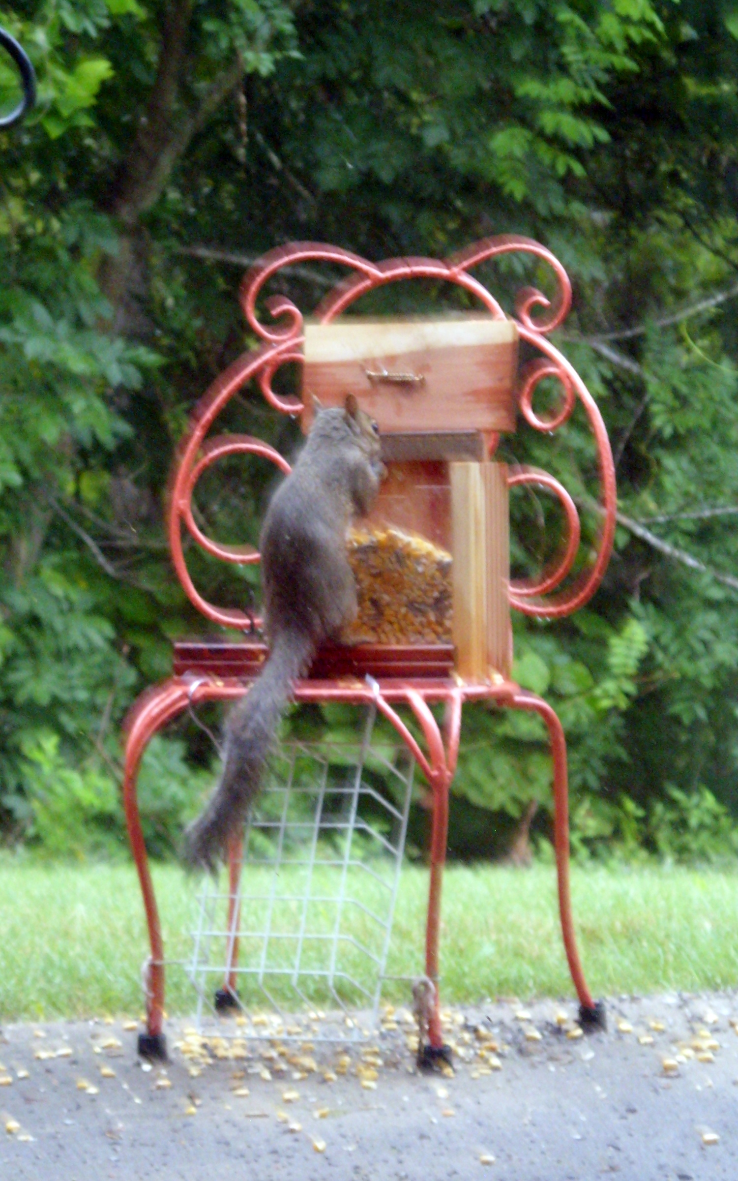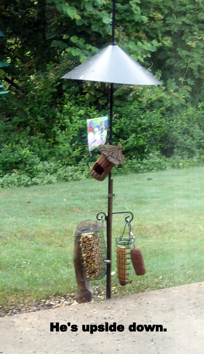 Remember the song You’ll Never Outfox the Fox? I wonder if my squirrel friends sing a similar song?? This morning I had seven squirrels in my back yard. Although they have their own feeders, and there is bird seed scattered in the lawn, they continue to climb (or jump) to feeders specifically for the birds. I have an ongoing battle with my cute little furry friends!!