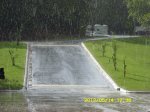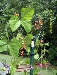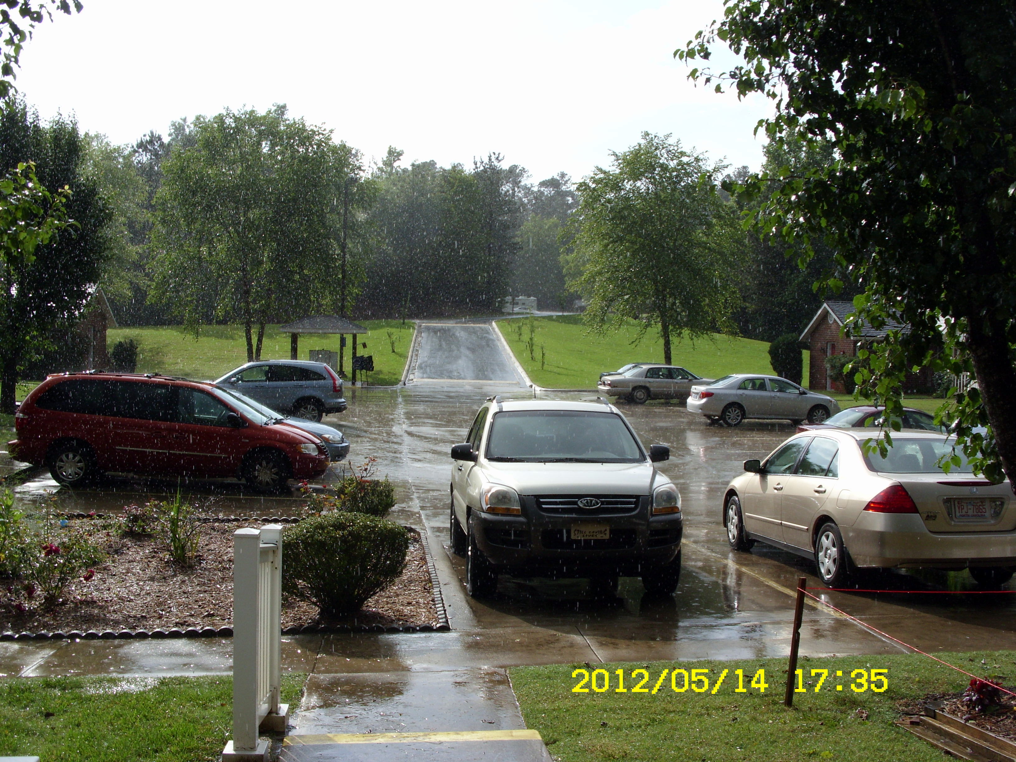 En route home from the chiropractor appointment (and shopping) we experienced a cloudburst with thunder and lightning. The two-lane highway became deep with water. Cars in front, and cars approaching, were throwing a huge spray of water on traffic. The windshield wipers couldn’t keep the windshield clear!! By the time I got home, the rain had stopped. I unloaded bird seed, squirrel feed, and groceries. I took a picture of the first tomato blooms. Then, suddenly, the sky opened up with another torrential downpour. Strangely, the sun was shining, too. In my youth, I often heard “Rain and the sun is shining; rain this time tomorrow.” I did a Google search and found a variety of explanations for “sunshower.” The weatherman is just confirming (6:20 PM) that “we will have another round of thunderstorms tomorrow.” My pictures don’t clearly show the rain (sorry).