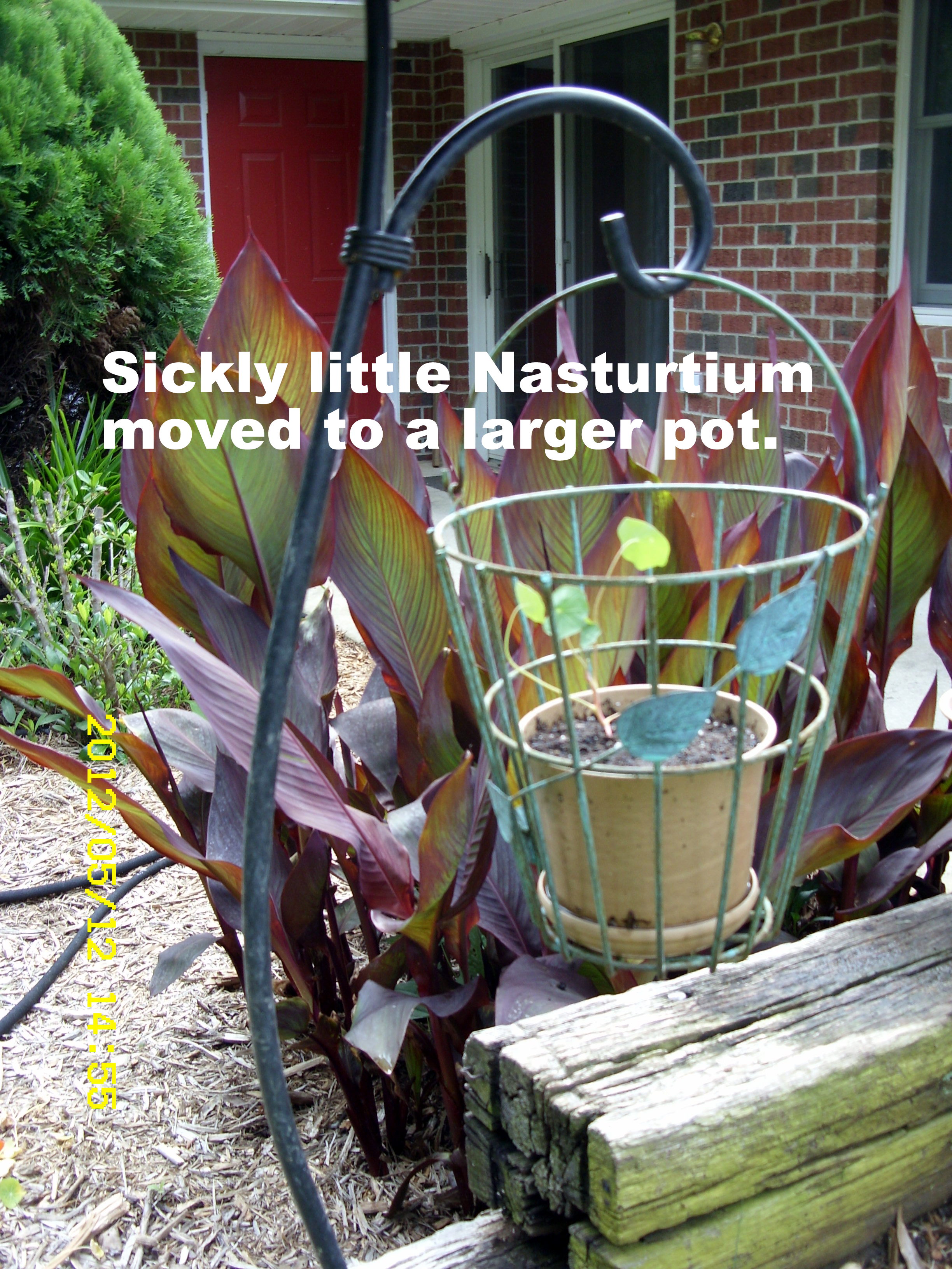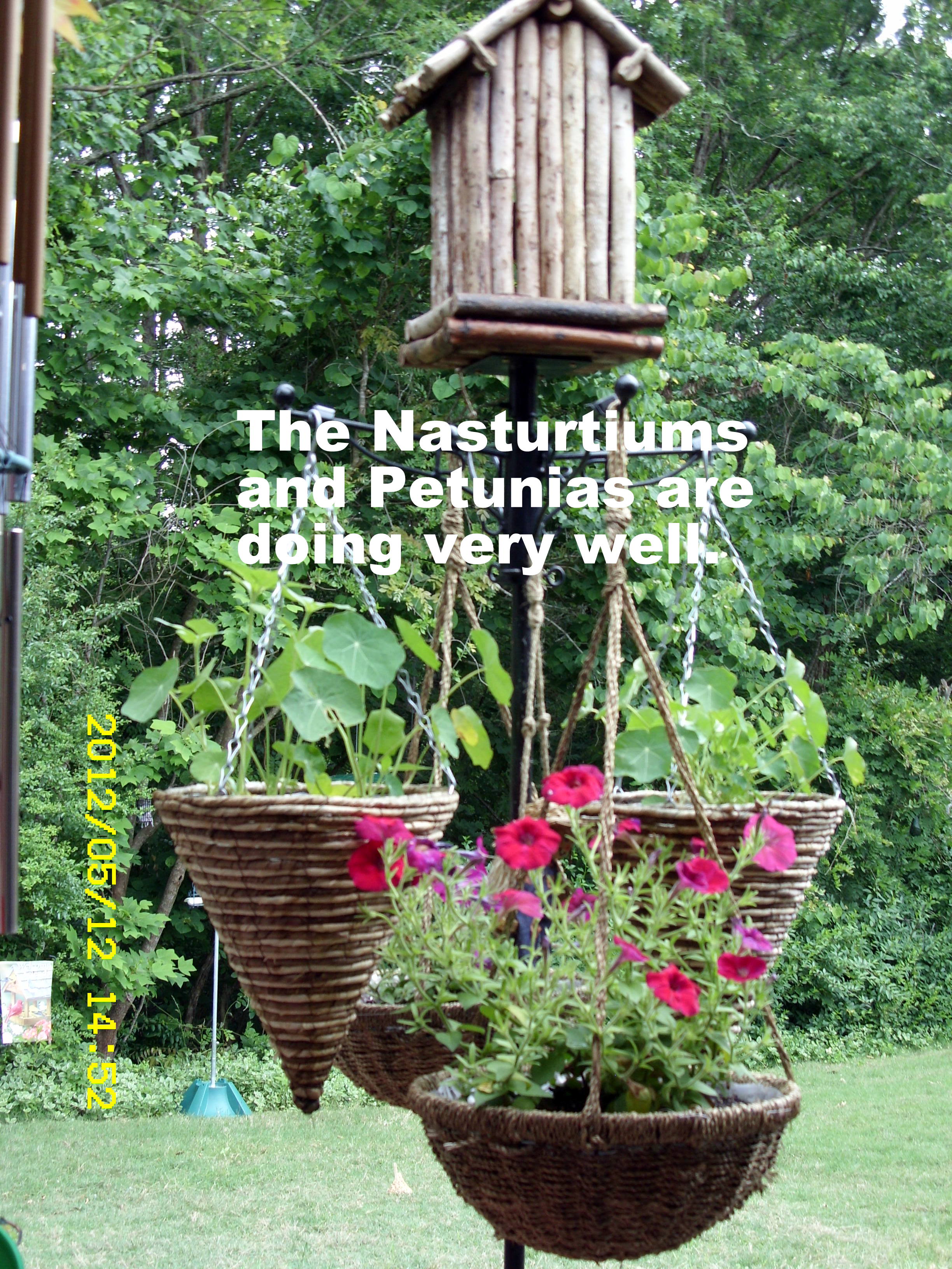 “Mary, Mary, quite contrary; how does your garden grow?“ ~~ Quite well, thank you!! ~~ I spent almost the entire day in my backyard garden. Besides replanting…, and relocating…, I made fresh nectar for the Hummingbird feeders, and rehydrated mealworms for the Bluebirds feeder. I replenished the bird feeders with sunflower seeds, watered plants, swept the patio, etc., etc. I ate my salad lunch on the patio watching my squirrel and bird friends feast on the bird seed scattered in the grass. ~~ Last night, at 5:15, I had a visit from a Hummingbird that spent a long time drinking nectar. I am so thrilled!! This was the first time I observed a Hummingbird linger at one of my feeders. I’ve spent a lot of time (and money) hoping to attract Hummingbirds. (No additional expenses with today’s project. I have an over-abundance of planters, etc., etc.)