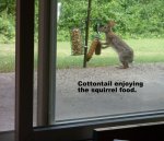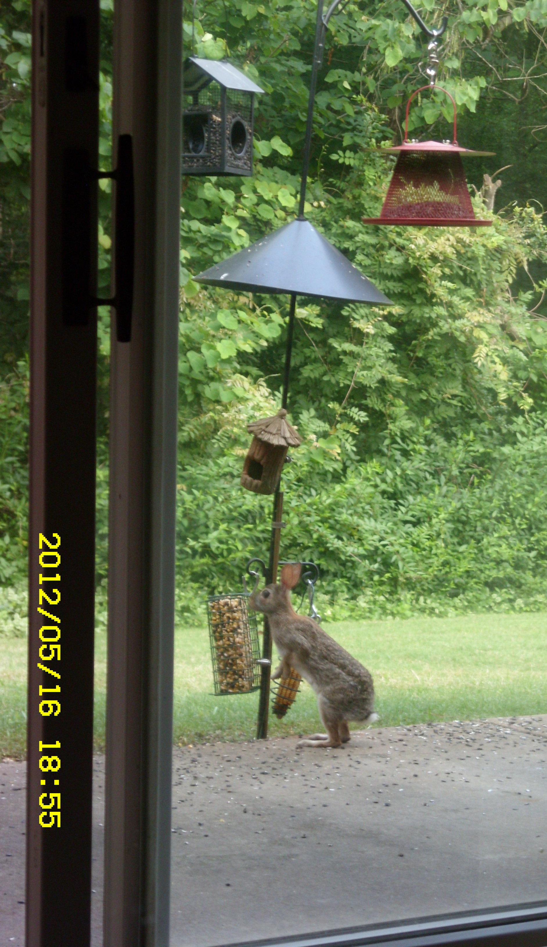 Forrest Gump said: “Life is like a box of chocolates, you never know what you’re gonna get.” ~~ The squirrels frantically raid the bird feeders although they have feeders specifically for them. ~~ A cottontail rabbit spent half-an-hour eating at the squirrel feeder. ~~ Last four telephoto and/or cropped pictures are the best of two dozen pictures taken through the glass patio sliding door (from my easy chair). ~~ To repeat something I’ve said previously: “I love my backyard–and the wildlife!!”