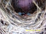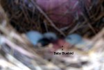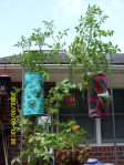It was after 3 o’clock before I got to my backyard garden. Two days since I watered and my Topsy-Turvy upside-down tomato plants had wilted. It hasn’t been hot but there is probably a big root system to feed the large plants (and the planters aren’t extremely large). I gave them lots of water and liquid fertilizer. ~~ I checked the Bluebird house and saw a little red object that moved. My first Bluebird baby!! Thrill, thrill!!