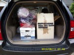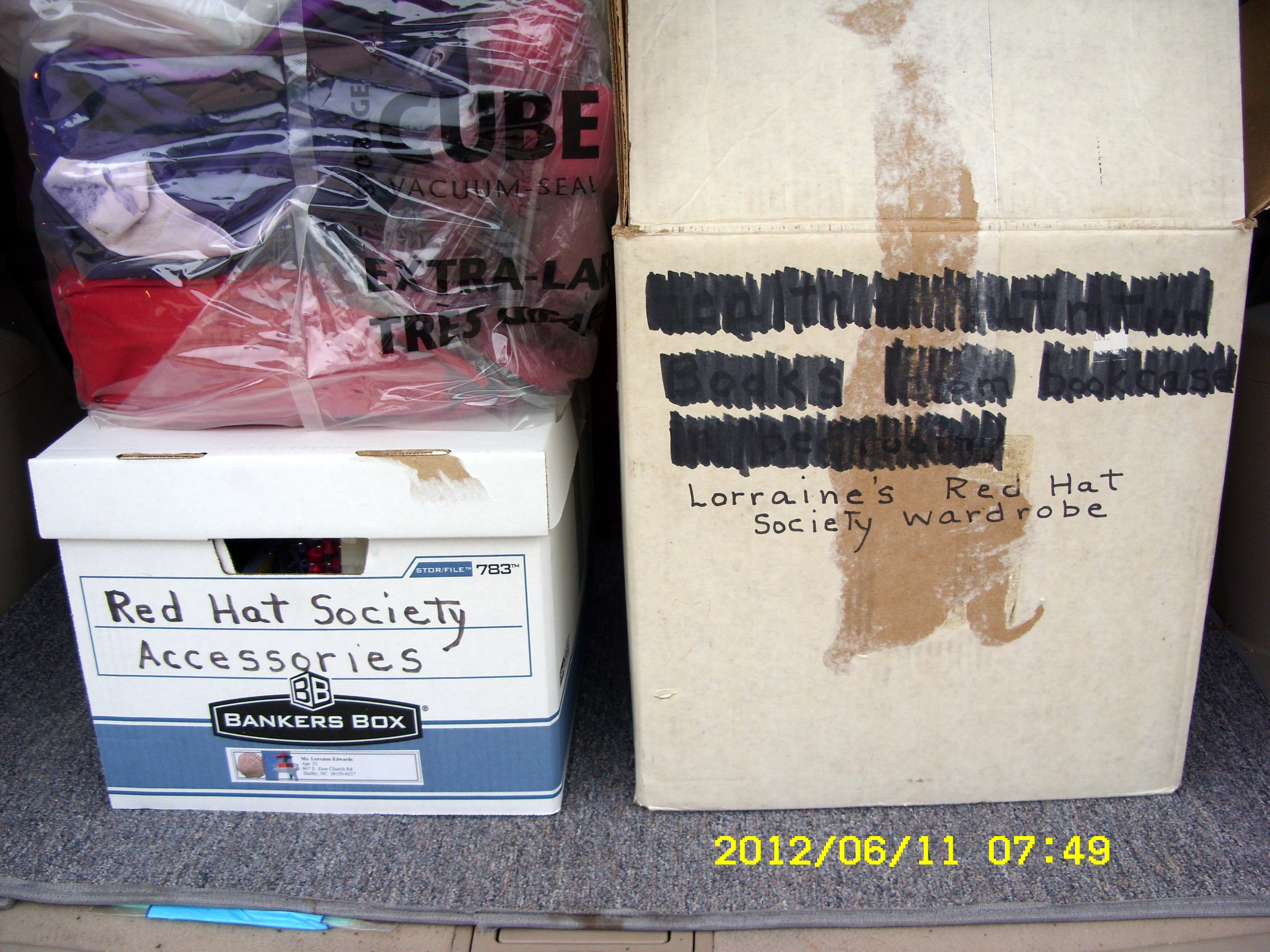 I worked all day yesterday at the JAARS open house (JAARS Day). I went to bed at 8 o’clock because I was tired!! Today I’ve been documenting clothing items, hats, shoes, purses and jewelry going to the Second Chance Boutique. (A total of 120 items.) This was my Red Hat Society wardrobe when I was active in a Chapter in Southern California (2003-2004). ~~ Why am I documenting each item?? Because North Carolina really zaps me for taxes each year. I’m OK with the standard deduction for Federal Income Taxes but North Carolina isn’t as generous. I document my donations in a software program called It’s Deductible (and you can access it on the Internet). ~~ I have a one-track-mind!! It’s almost 5 o’clock and I haven’t had breakfast or lunch. I think I’ll fix some supper!!