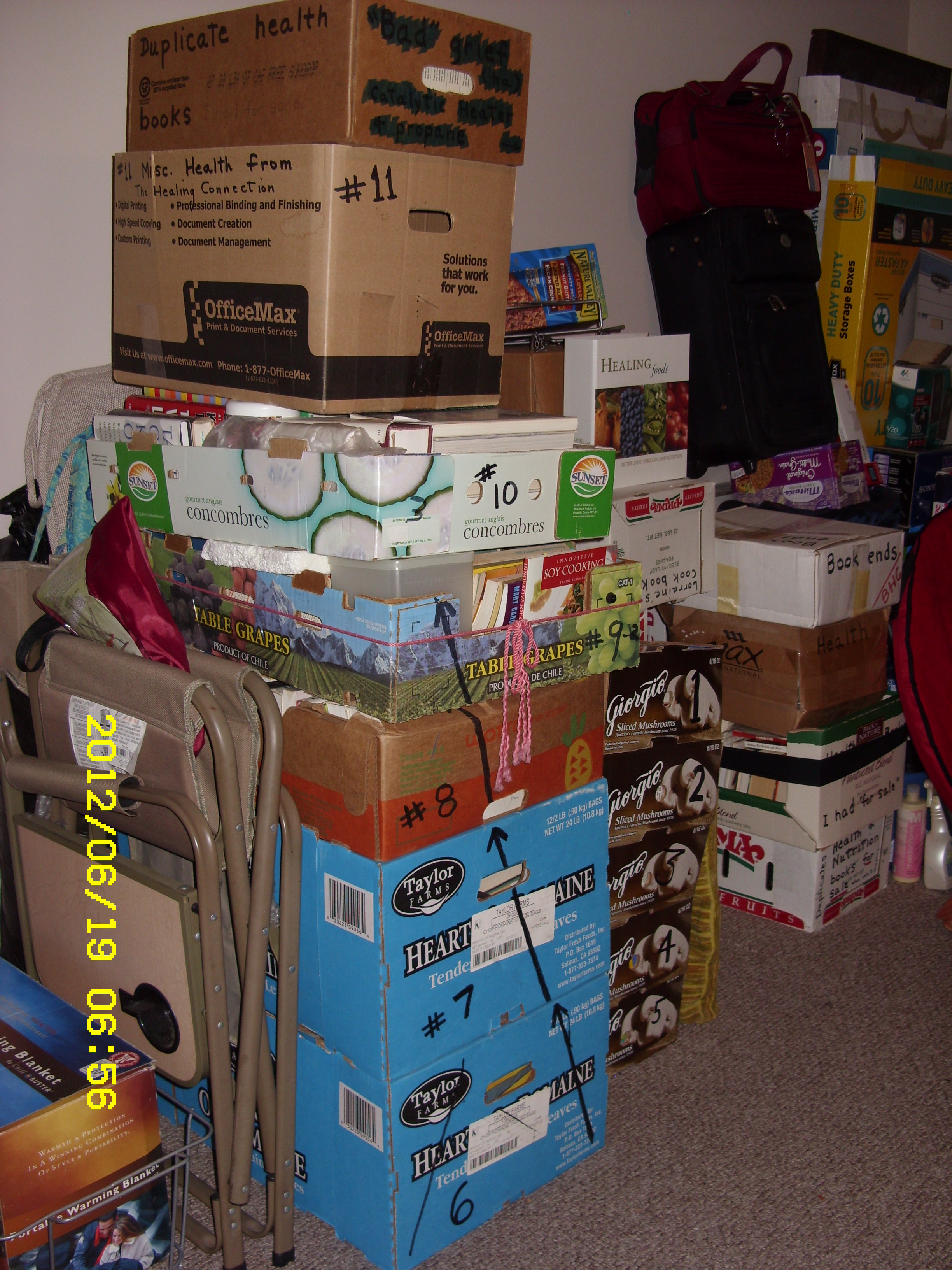 Yes, my halo tilted this morning. I planned to unpack the crate with Christmas things BUT “my being” was screaming “No, I can’t face that task today!” In years past, I reduced Christmas from numerous boxes to this one. It contains sentimental things and I just couldn’t handle, document, and donate. Maybe later?! This past week I emptied those several crates. The third picture shows the corner (of the bedroom) where the crates were stacked for many months. The fourth picture shows the corner after the crates were removed. The fifth picture shows over a dozen boxes of health and nutrition books that need a new home.