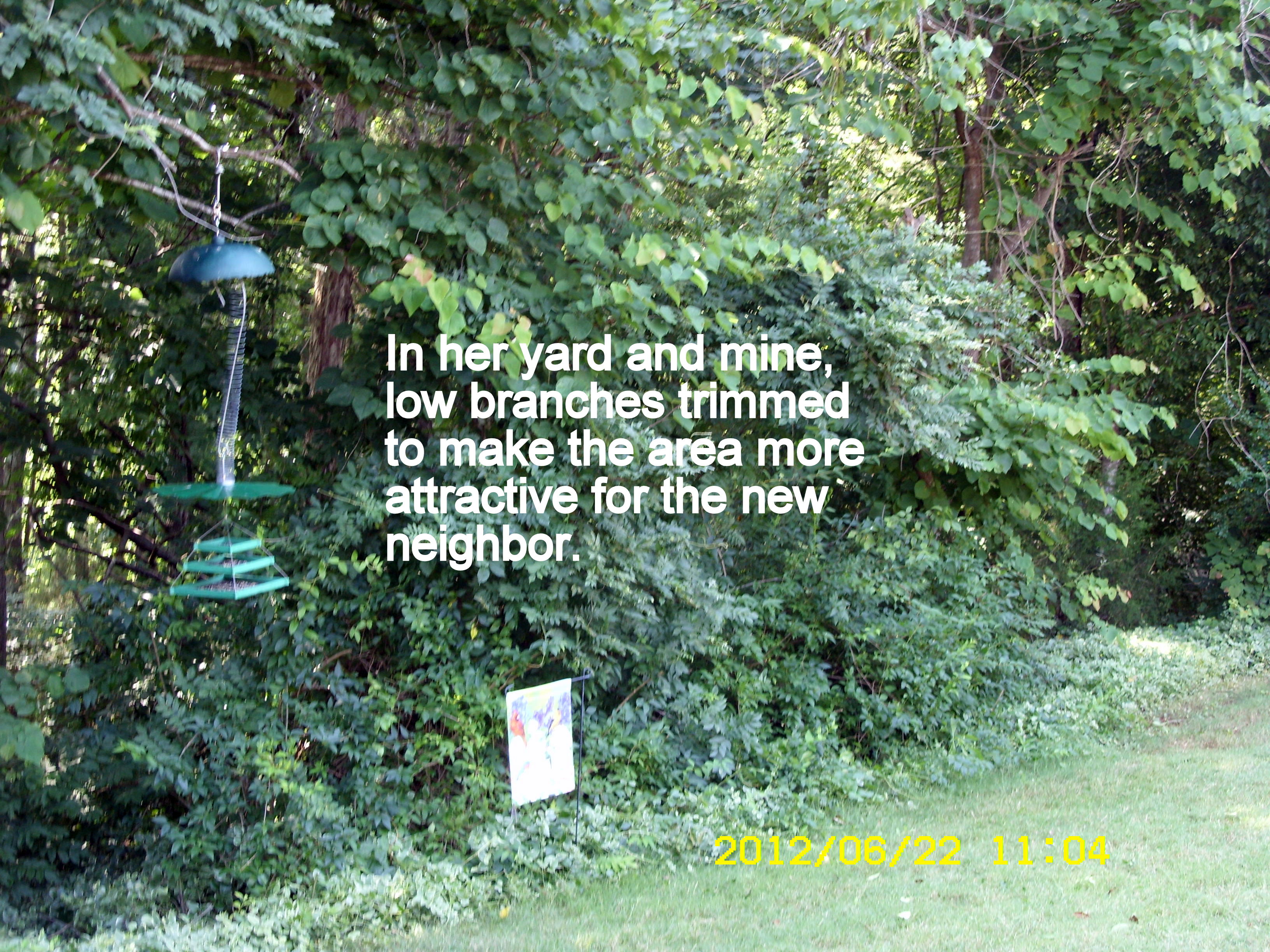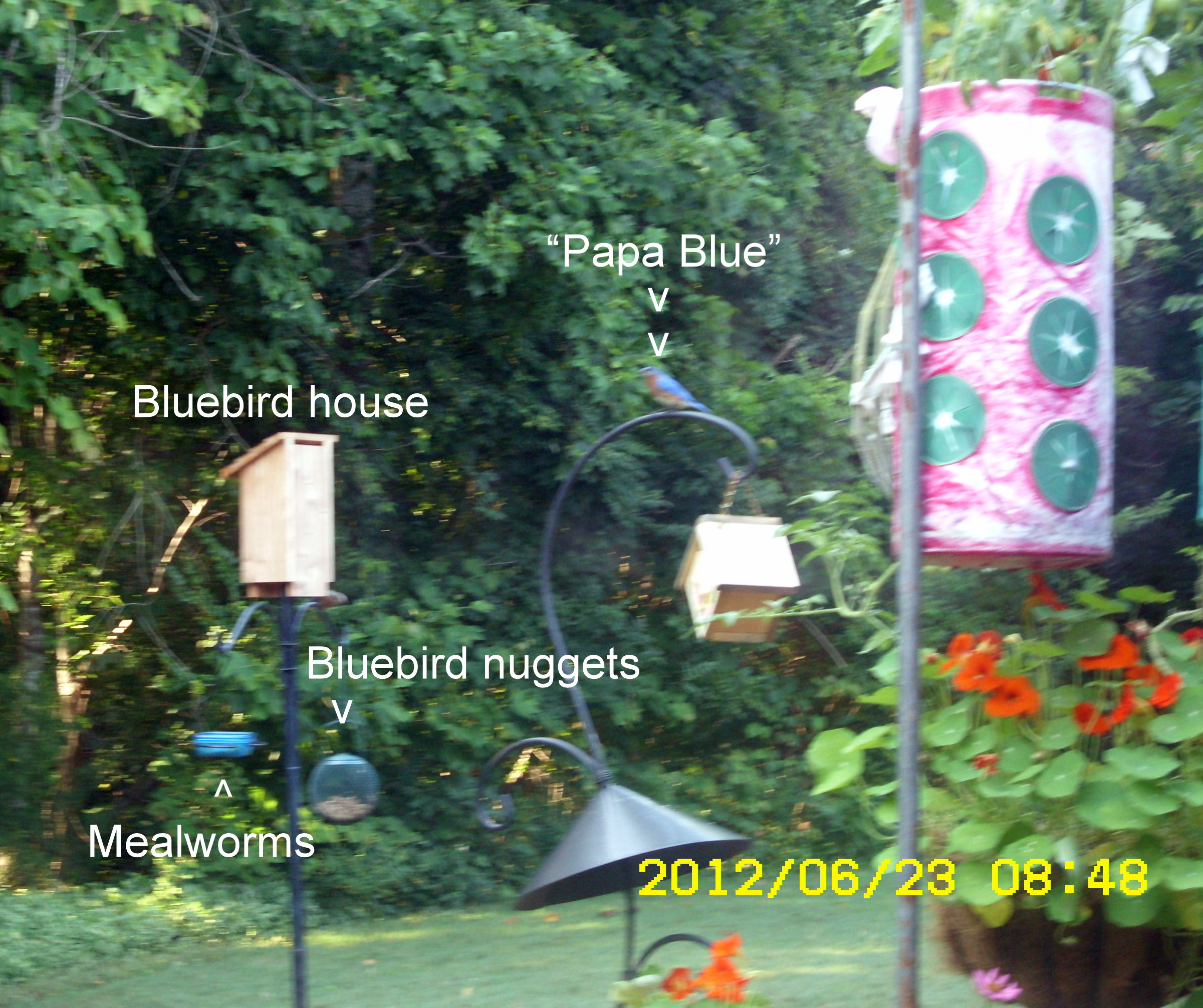Postscript, June 21st, 2012, 7:45 AM: I exaggerated (above) and confess I was not sobbing. (Sobbing on the inside!!) I’ve worked so hard to coax a Bluebird couple to my yard!! Some of that journey is documented in earlier blog messages.