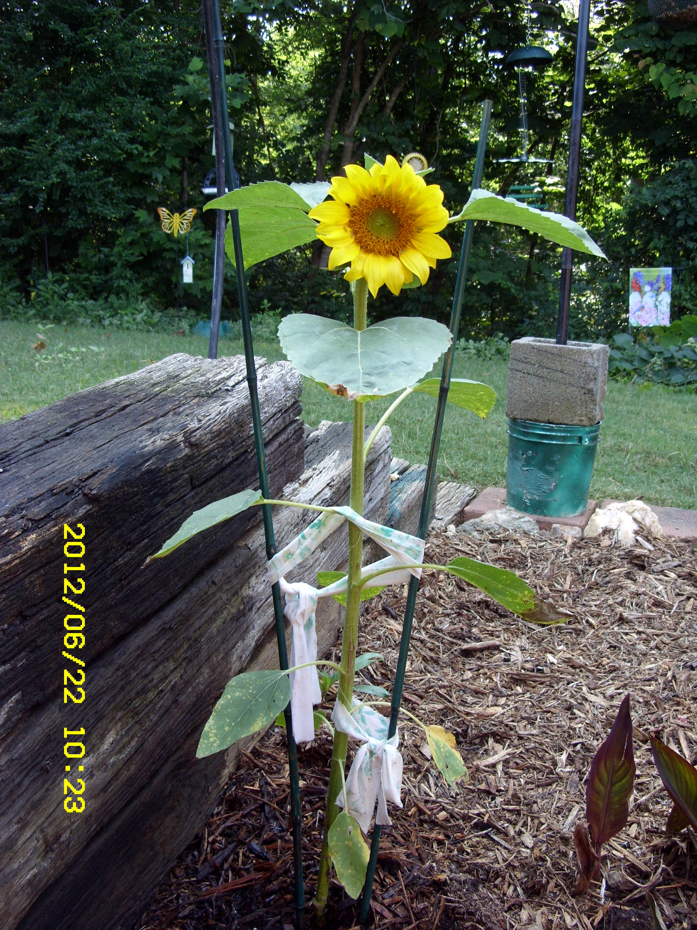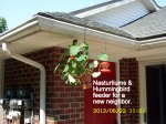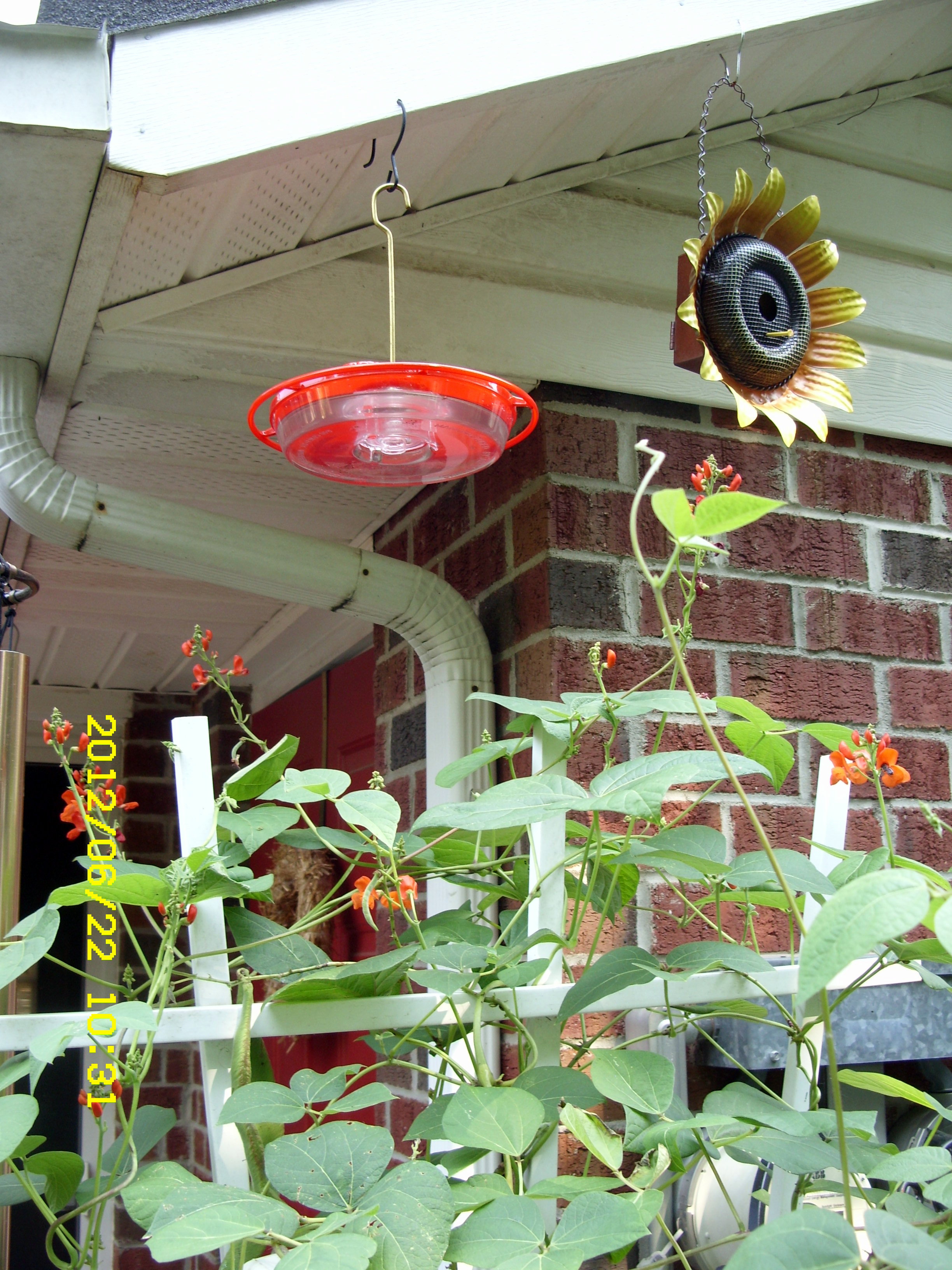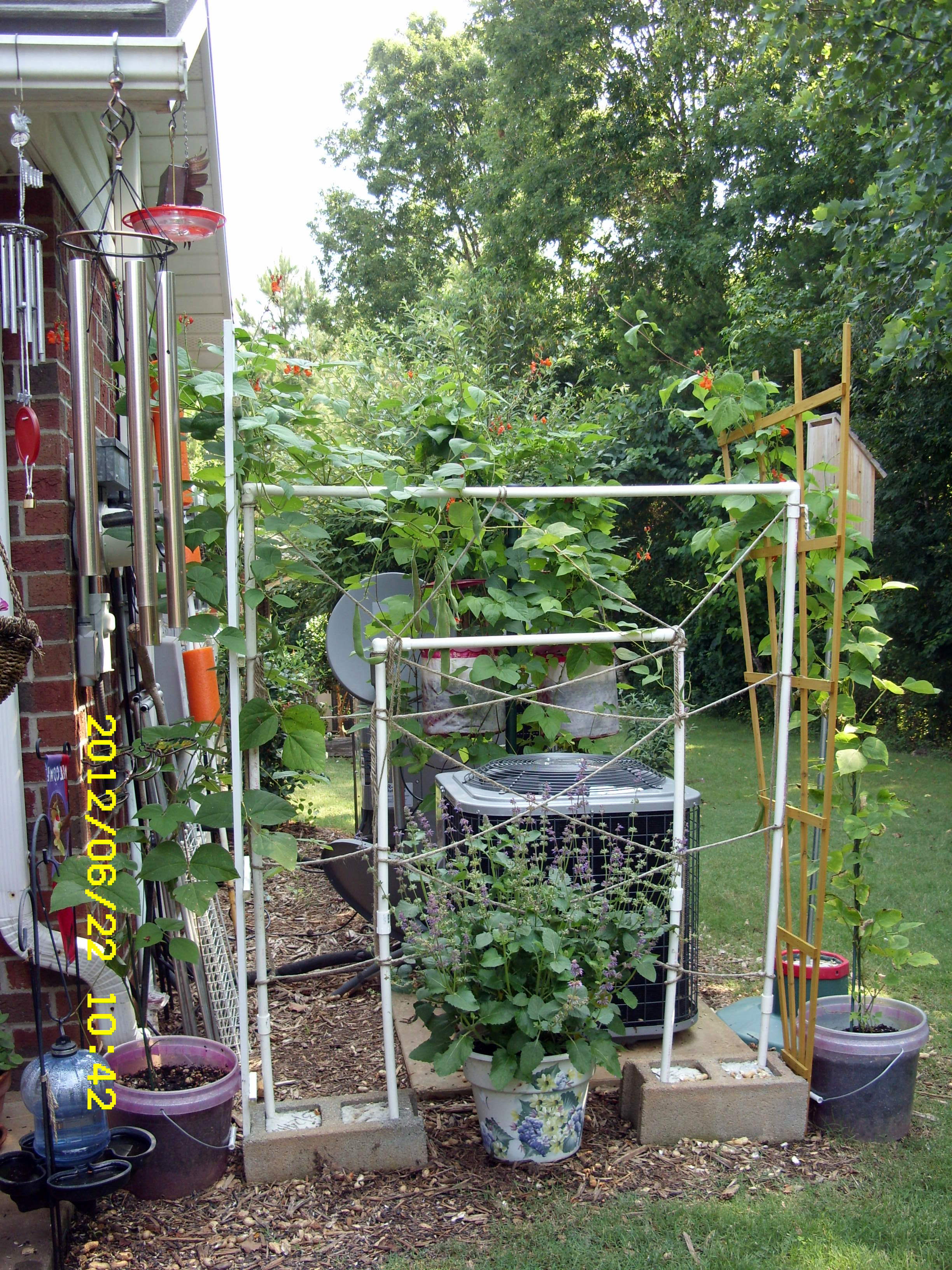 Like most of the nation, North Carolina has been extremely hot. It reached a hot, humid, high of 93 degrees today. (Weatherman says “Felt like 95.”) I started working in my backyard garden about eight o’clock and didn’t seek shelter until about noon. I had “planned” to work on “downsizing” inside the apartment but my enjoyment escalates outside the patio doors. There is a caption with most of the pictures but please note that it won’t be long until I have home-grown tomatoes. I had fresh-picked home-grown Scarlet Runner Beans for supper. (I planted the Scarlet Runner Beans so their bright red flowers would attract Hummingbirds. Likewise, nasturtiums, petunias, and begonias planted to attract Hummingbirds. I seldom see a Hummingbird at the two feeders but I frequently see a Hummingbird at the flowers.)