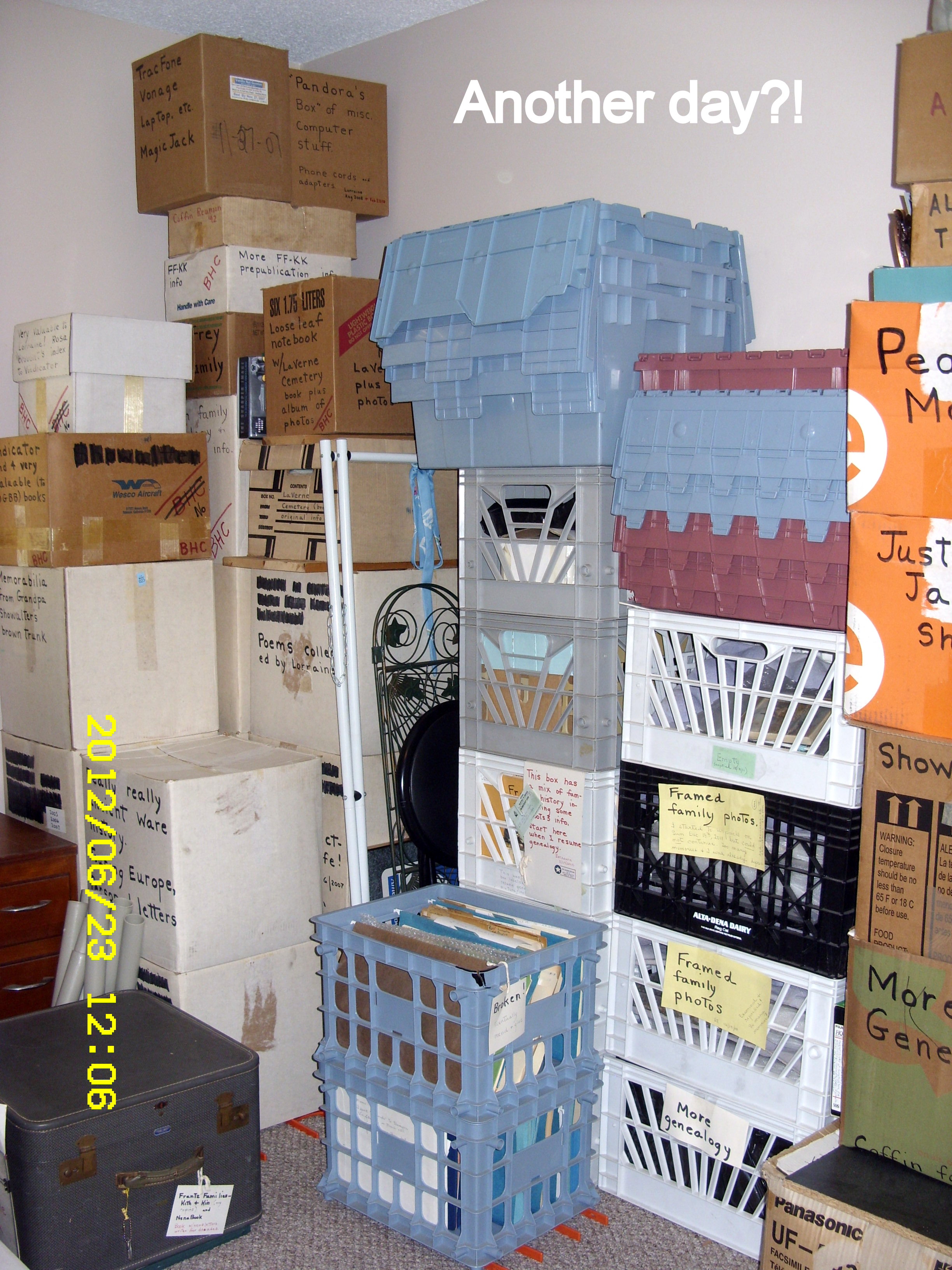 Yes, my halo tilted this morning. I planned to unpack the crate with Christmas things BUT “my being” was screaming “No, I can’t face that task today!” In years past, I reduced Christmas from numerous boxes to this one. It contains sentimental things and I just couldn’t handle, document, and donate. Maybe later?! This past week I emptied those several crates. The third picture shows the corner (of the bedroom) where the crates were stacked for many months. The fourth picture shows the corner after the crates were removed. The fifth picture shows over a dozen boxes of health and nutrition books that need a new home.