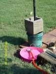 I’m sad!! Extreme heat killed some of my plants today!! I was away from home from 8;30 AM until 3:00 PM. First, my appointment with the chiropractor; second, some shopping which included the purchase of more squirrel feed, and Bluebird mealworms. I looked at bird bathes at Wild Bird Center but would not / could not allow myself to spend $30. to $130. I love my fine feathered and fine furry friends but there is a limit to how much I will spend!! Unexpectedly (as I was driving past Michaels) I thought “Maybe they have something I can use.” And I found a shallow enamel container “on sale” for one-fourth the original price. (So inexpensive I’m embarrassed to document the price.) At home, I got out an old-fashioned small lawn sprinkler to use as the “bubbler.” ~~ With our extreme heat, I’m very sympathetic to the birds!! A big black crow was the first to splash in the new bird bath. ~~ As soon as I got home, I quickly started running water to my tomato plants and other plants. But I’m afraid the zinnias and nasturtiums are beyond saving. ~~ Ninety-seven degrees as I write this and (according to evening TV news) “one-hundred degrees or higher heat index.” One-hundred degrees predicted for tomorrow!! But, praise the Lord, I have electricity for air-conditioning. I sympathize with folks in areas without power–without power for one week!! (There was recent storm damage in the Charlotte area but [to my knowledge] absolutely no problems here at JAARS.)
