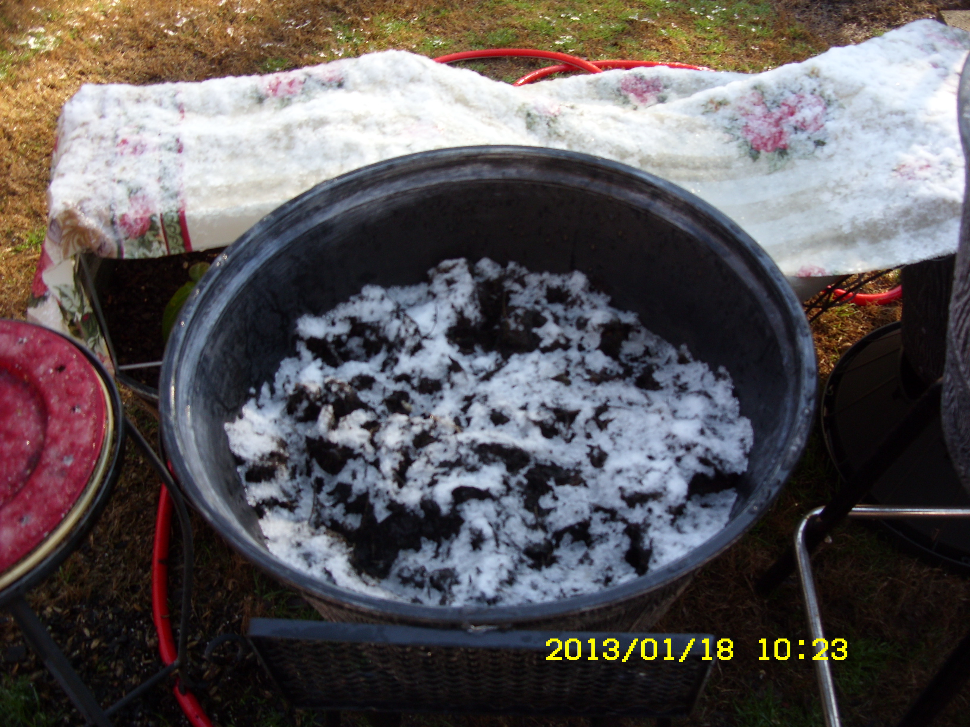 Can you see the snow on the fabric that covered the Phlox in the planter? The fog in the woods was beautiful!