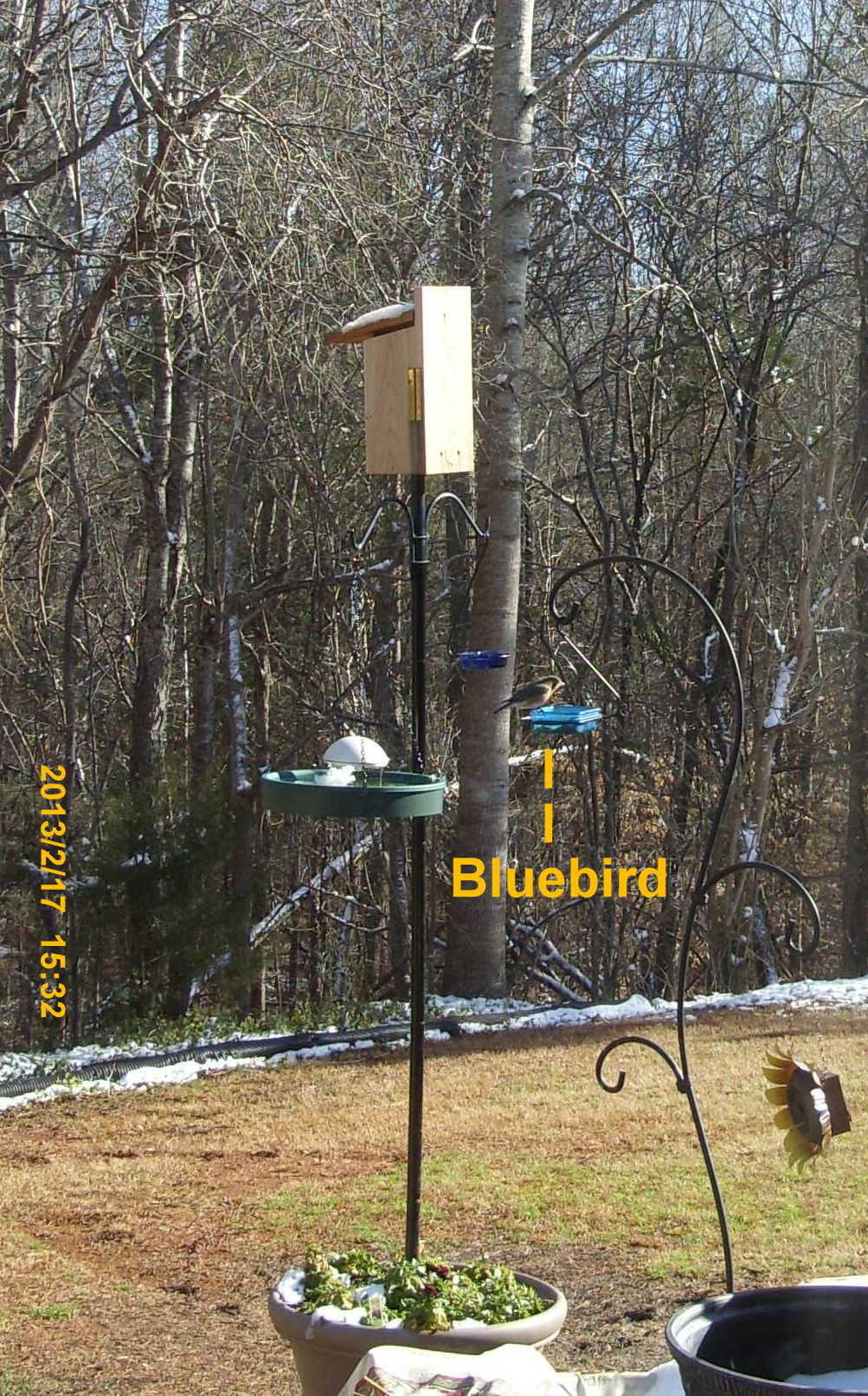 Note that snow is almost gone five & one-half hours after that earlier picture of Bluebird house and feeders.