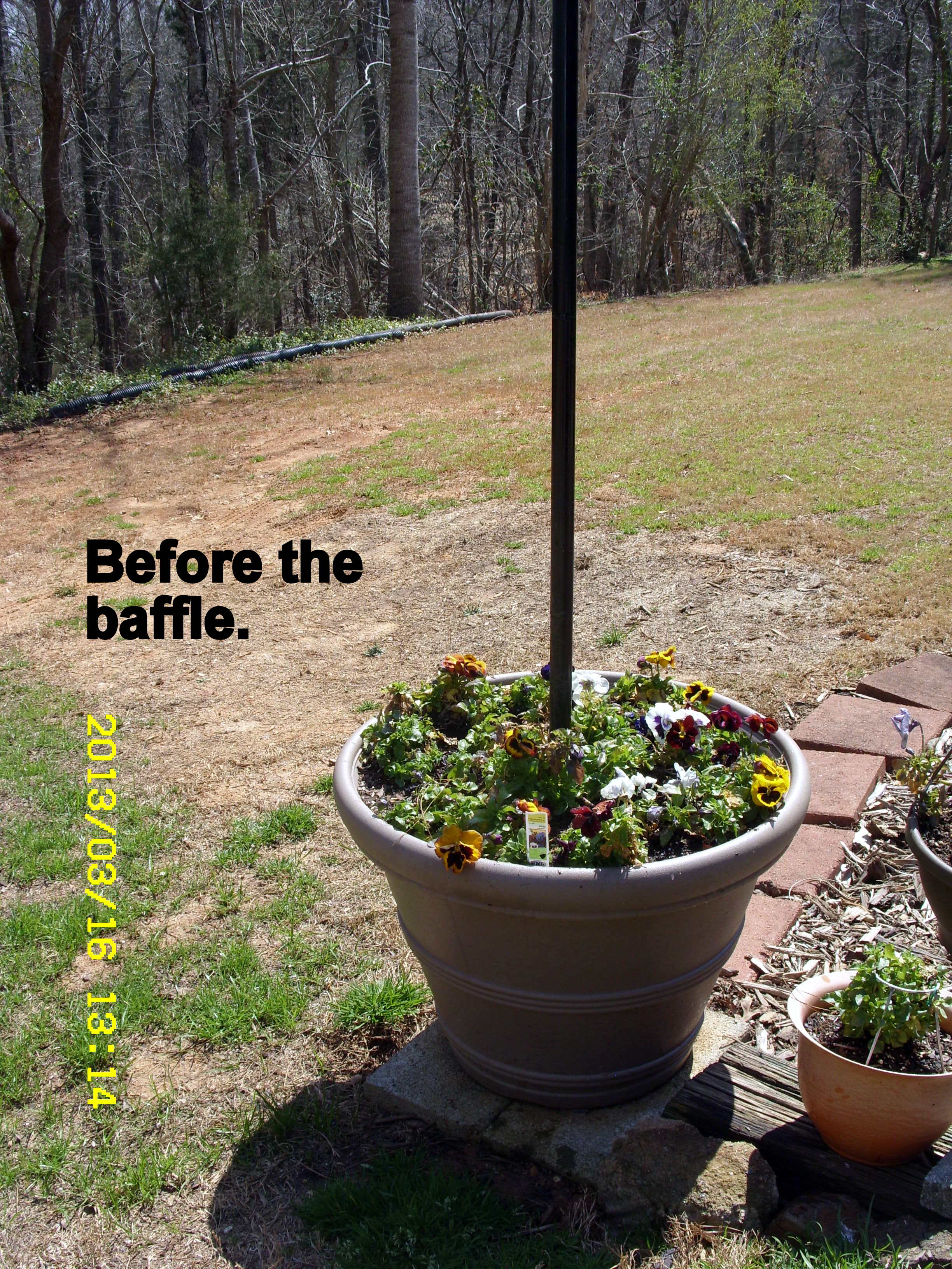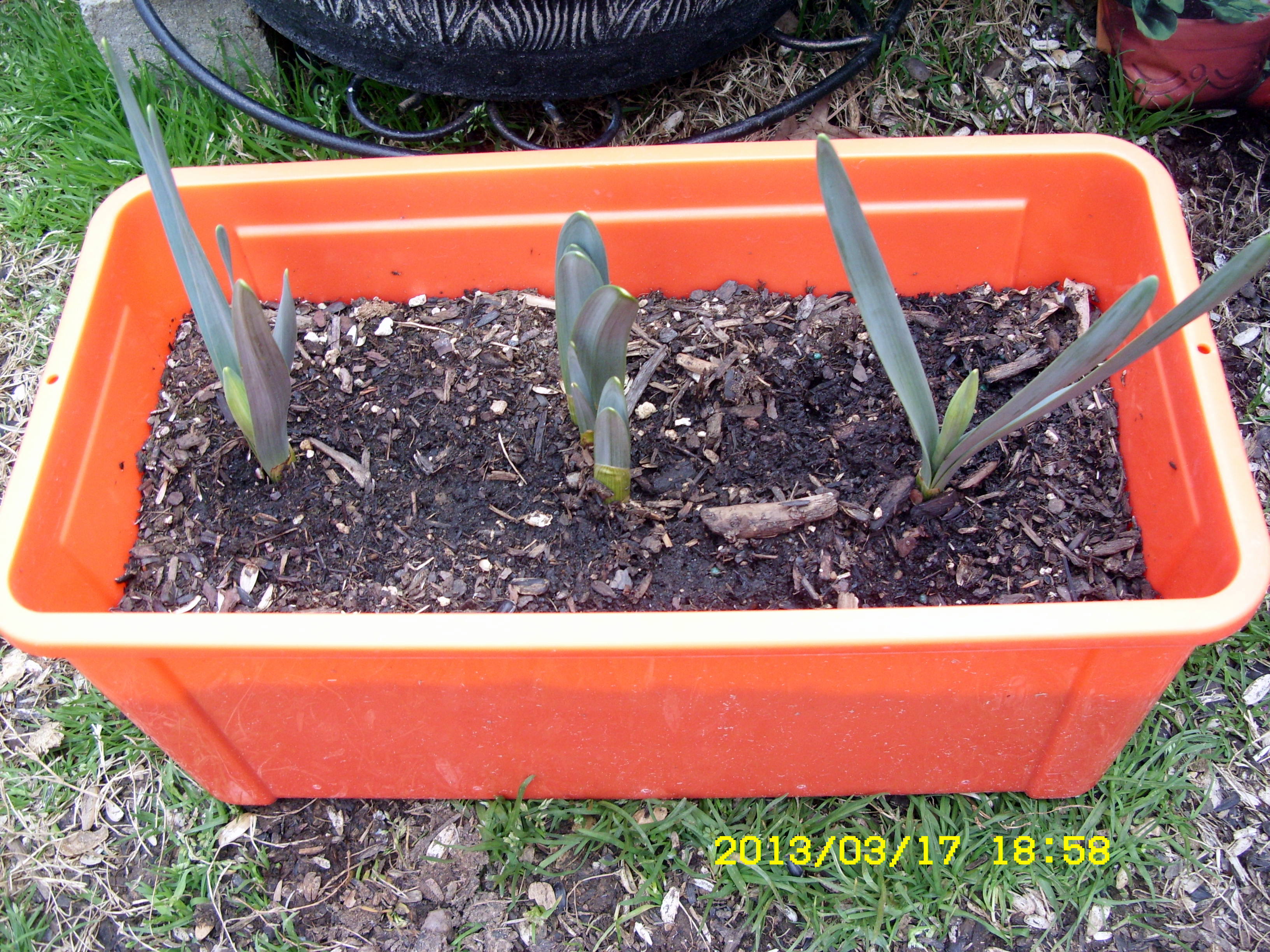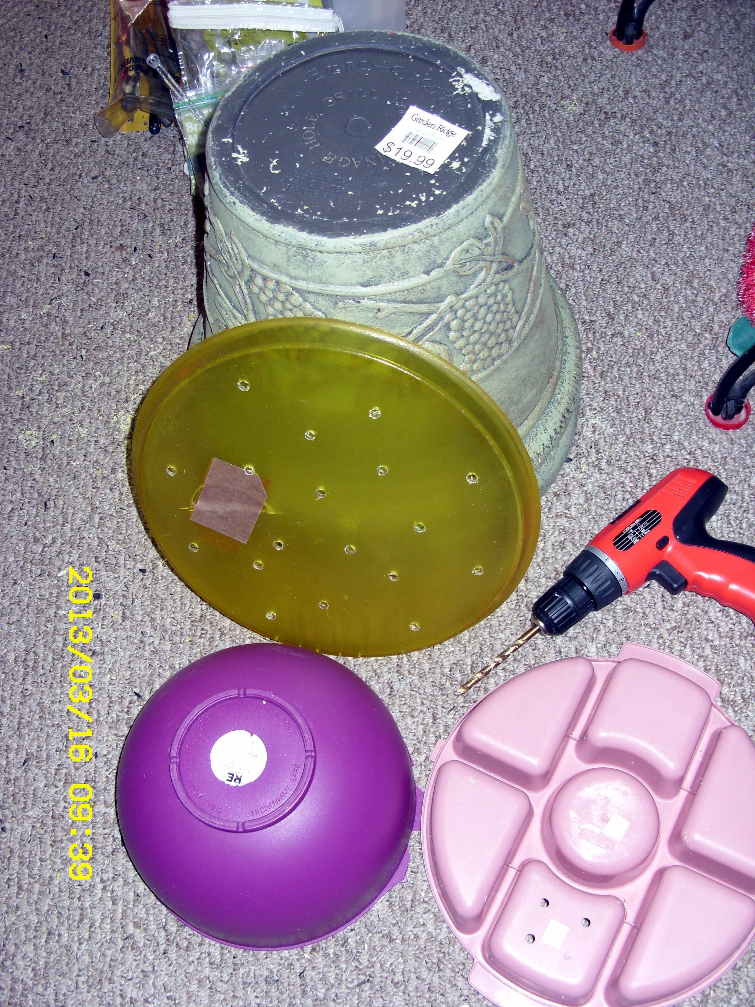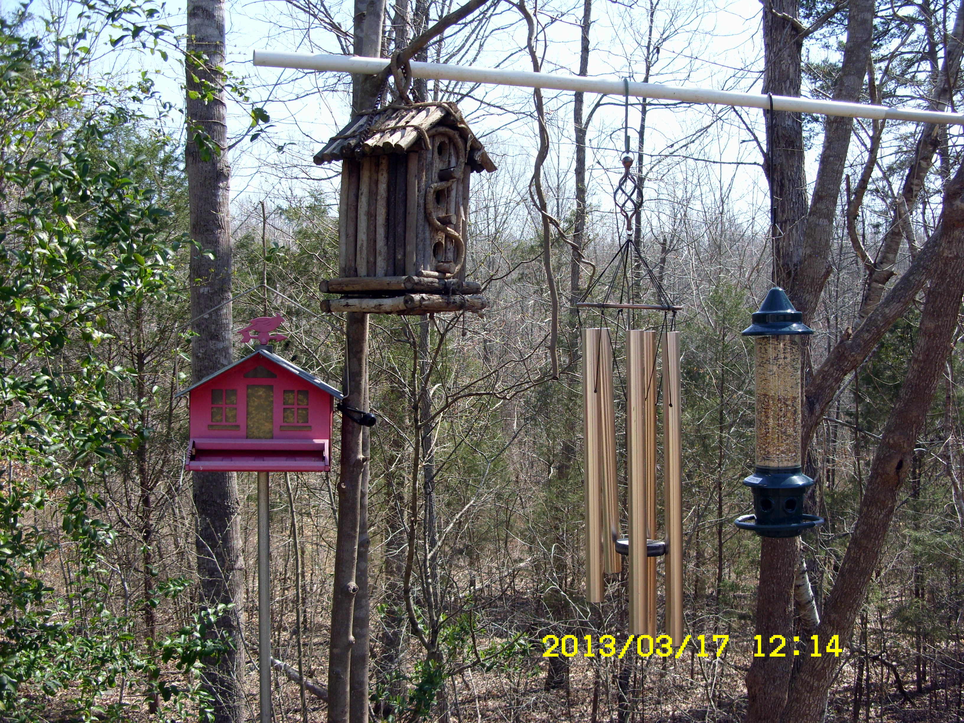 I’m still sick!! (Extremely bad cold, I think.) However, I spent hours in the sunshine–in my backyard–and accomplished a lot!! Pictures: #1, Tomato seeds planted and under a Grow Light; #2 & 3, $5. “Squirrel Buster” Bird feeder from Goodwill (#4, $35. at Lowes); #5 & 6, Creating air bottom(s)” for planters (make my own for $1 or less. Why pay $8. or more?)  #7, Ready to install squirrel baffle below Bluebird house; #8, Baffle.  #9, Surprise!! The Bluebirds have started a nest!!  #10, I love my Bluebirds!!  #11, Fresh water for the critters; #12, Transplanted Calibrachoa from a smaller planter; #13, Refilled the bird feeders; #14 & 15, Near the end of a busy weekend!!  #16 & 17, Surprise, surprise, the Christmas Cactus has a lot of tiny buds and one bloom!!  #18 & 19, Daffodils have tiny buds after our delightfully warm weekend!!  ~~  No pictures, but I also planted Nasturtium seeds outdoors–and small pots indoors.  ~~  I did two loads of laundry, washed dishes, and prepared a healthy salad.  ~~  It’s 8:45 and I am exhausted!!  I’ll be in bed early (won’t stay up to watch “The Good Wife”).  ~~  Sick!!–but very happy with nesting Bluebirds, Christmas Cactus (in March), and late Daffodils!!  Oh yes, the Honeysuckle vine is sending out new growth (that discarded–looked dead–plant that I adopted last Fall).