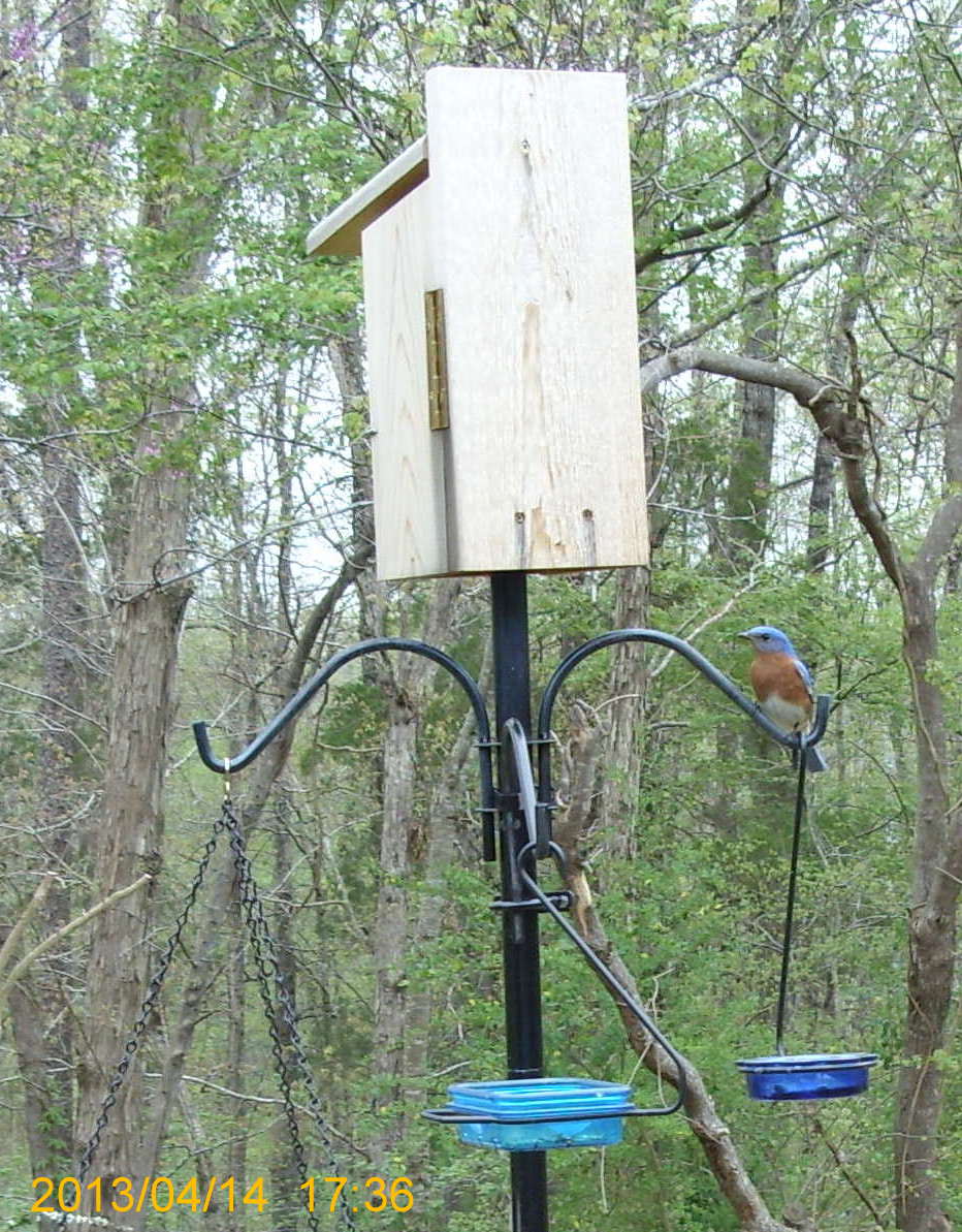 (12:30 PM) I’m trying to get things done so I can leave tomorrow (Monday) en route to a T@B teardrop trailer rally–in Townsend, Tennessee. However, I’m having a difficult time tearing myself away from the live broadcast regarding the hatching of a Red-tailed Hawk. Maybe later this year I will set up a camera in my Bluebird house. (But not a streaming, live broadcast.) As far as I can tell, no baby Bluebirds in the nest yet. The nest is so deep, I can’t see the eggs. I’m thinking–when they hatch–the babies will be at the top…eager for food from their parents.
