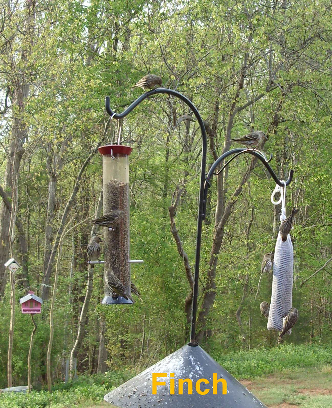 (Sunday, 2:30 PM) I posted that same first picture on April 16th. By necessity, I went to my favorite bird supply store for more Finch food. I added two more “socks” so a total of four “Finch feeders.” The birds act like they are terribly hungry!! I can’t count the number of birds on the feeders–and on the patio eating the seed that falls from the feeders. I refill the feeders every day!! I labeled them “Finch” in the earlier picture but someone said “no, not Finch.” And they aren’t exclusively in my yard because I’m generous with feed; they are in neighboring yards on feeders with the usual wild bird seed.