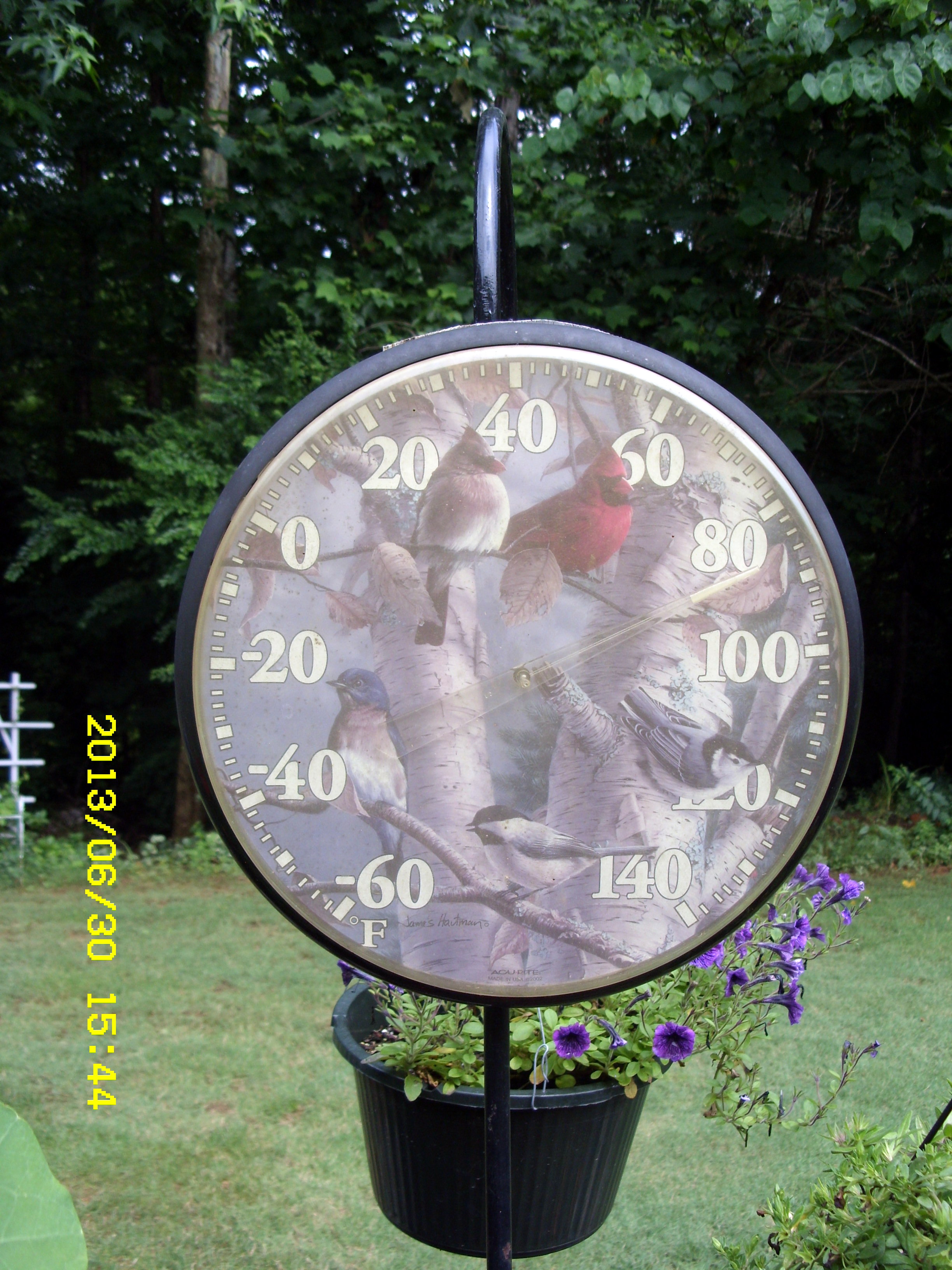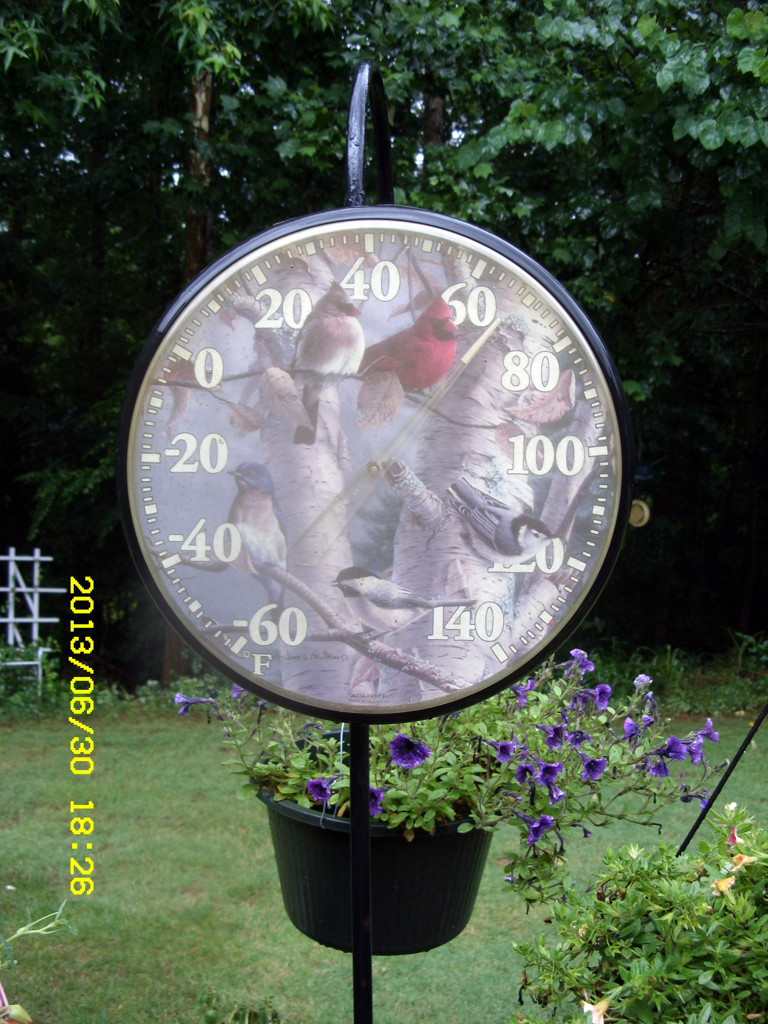 Friends and family are baking in extremely rare weather conditions–in Arizona, California and Nevada. I’m not “baking”; I’m “steaming.” Eighty-five degrees doesn’t look too bad does it? The humidity is high!! Foolishly, I was working in the garden and dripping perspiration. Shortly after 12 noon we had another of the daily thunderstorms. We received four-fifths inch of rain in less than one hour. During the downpour it was refreshingly cool; I sat on the front porch and enjoyed every minute. The storm passed and the sun came out. Whew!!