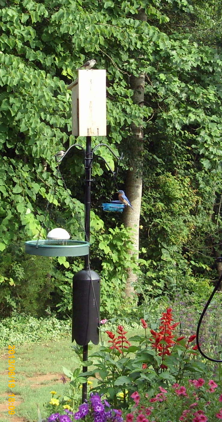 I tentatively planned to take my T@B travel trailer out for the weekend. I thought I wanted to enjoy gospel singing at “Singing on the Mountain” near Grandfather Mountain, North Carolina. **BUT** I don’t want to be away when the baby/babies fledge. From the books I’ve read and the information gleaned from the Internet, I know that Mama Bluebird starts a new nest immediately after the babies “fly the nest.” The proprietor (me) needs to immediately empty and clean the bird house. From experience (last summer) I know Mama started a nest in another bird house. I passionately desire another Bluebird family this season–where I can observe them!! With a little bit of luck I should be able to get the camera focused so I have clear images of the life cycle in the nest. (Would you agree that abandoning a relaxing weekend trip to monitor a bird house is bizarre? I can’t help it; I love my Bluebirds!!)