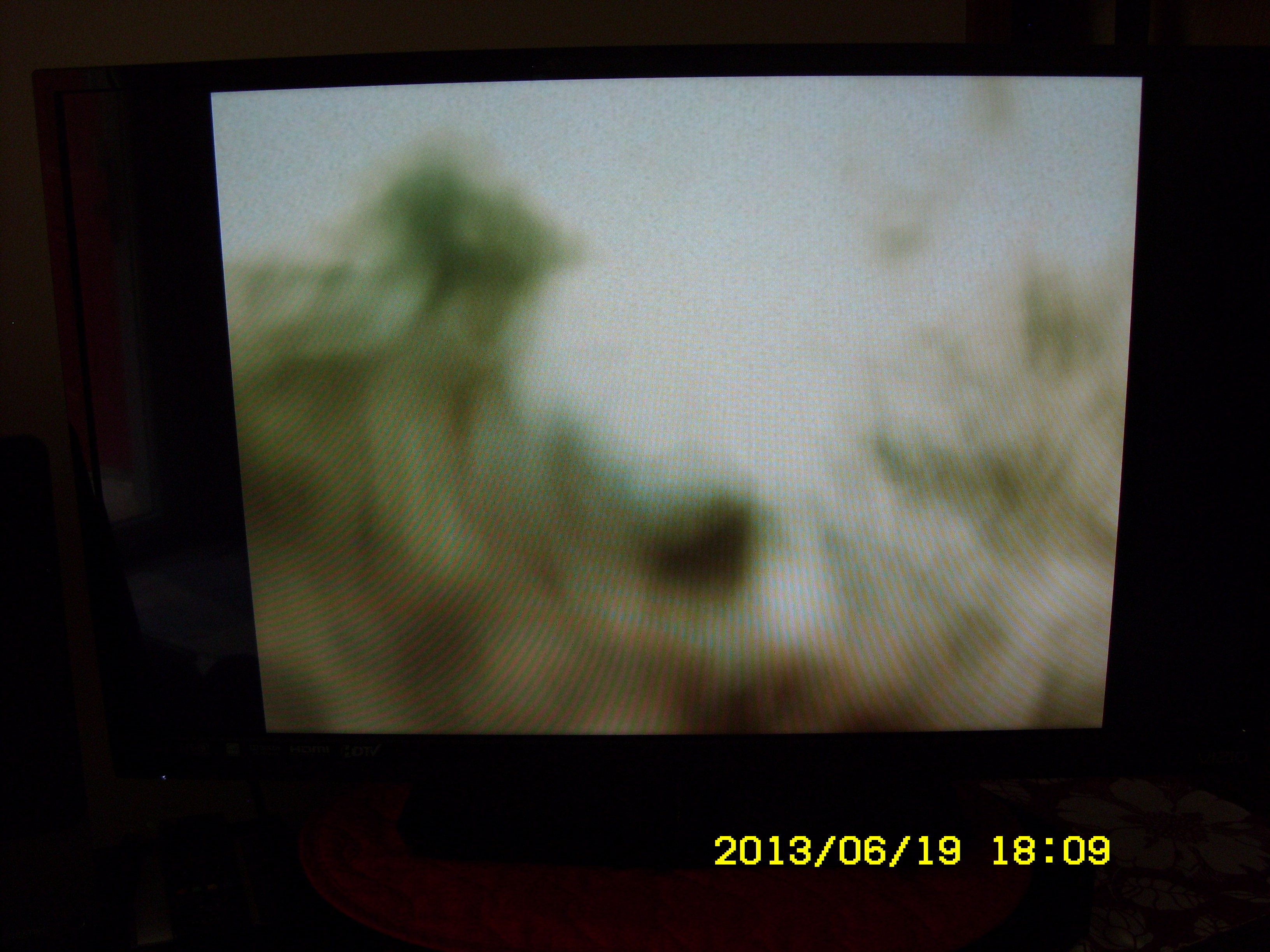 More BLURRED Bluebird pictures. By now, you know I’m obsessed with my Bluebirds!! The other day I placed a step-ladder next to the Bluebird house, climbed the ladder, and cautiously opened the door. I took that picture with my faithful old Samsung camera. Well, all the pictures are with the faithful Samsung but the last picture is the image from the Hawk Eye Cam. I had just delivered mealworms to the feeder (picture two) and Papa Blue had just delivered mealworms to the baby in the nest (picture three). From the amount of feathers, I speculate it won’t be long until it leaves the nest.