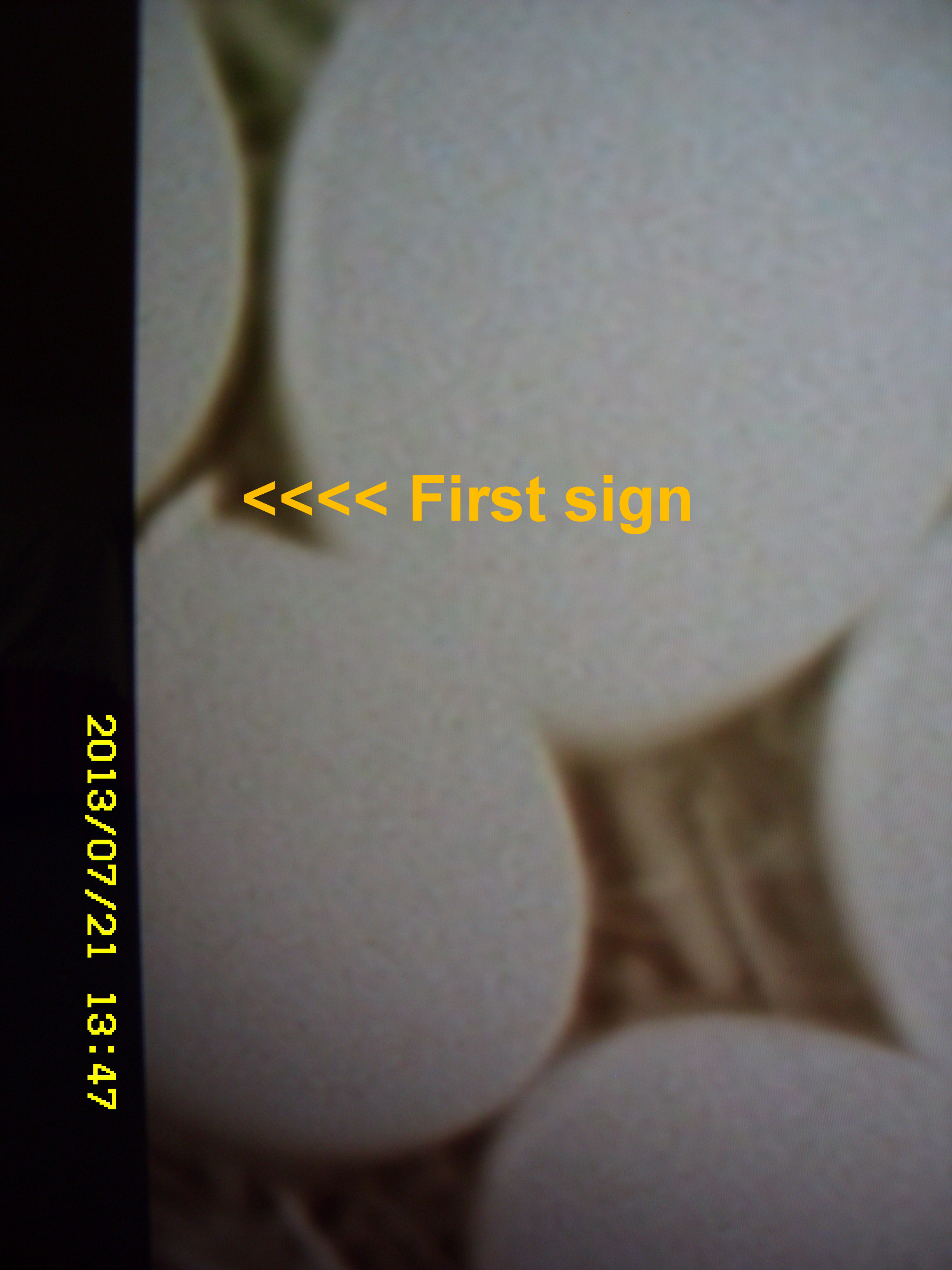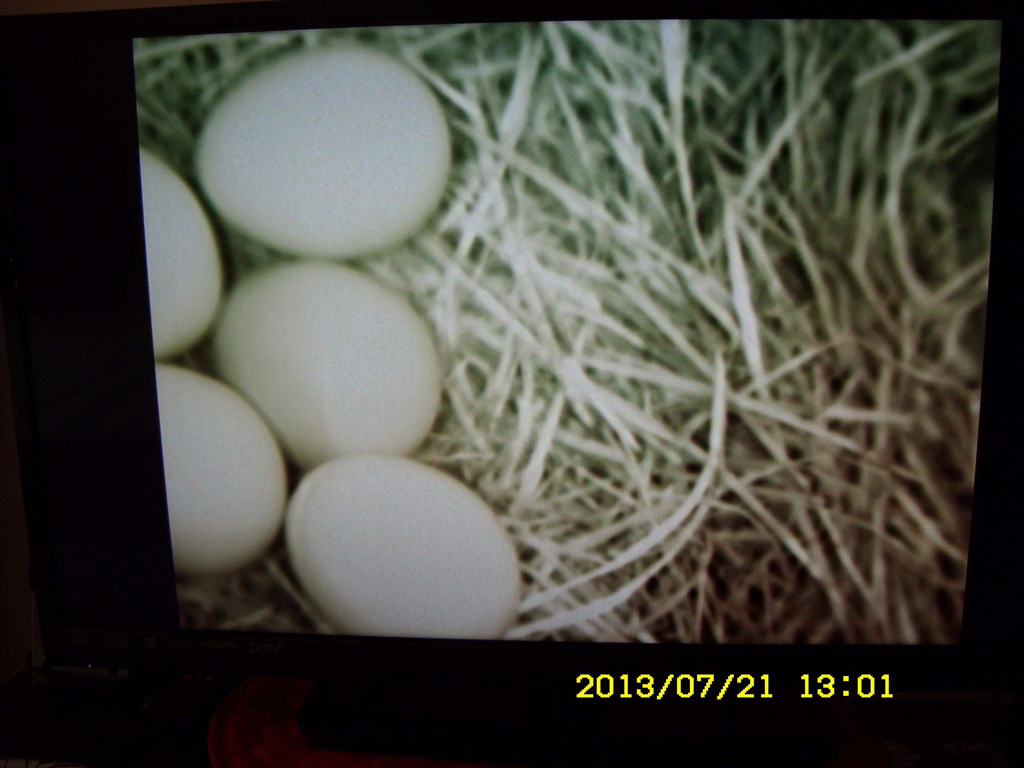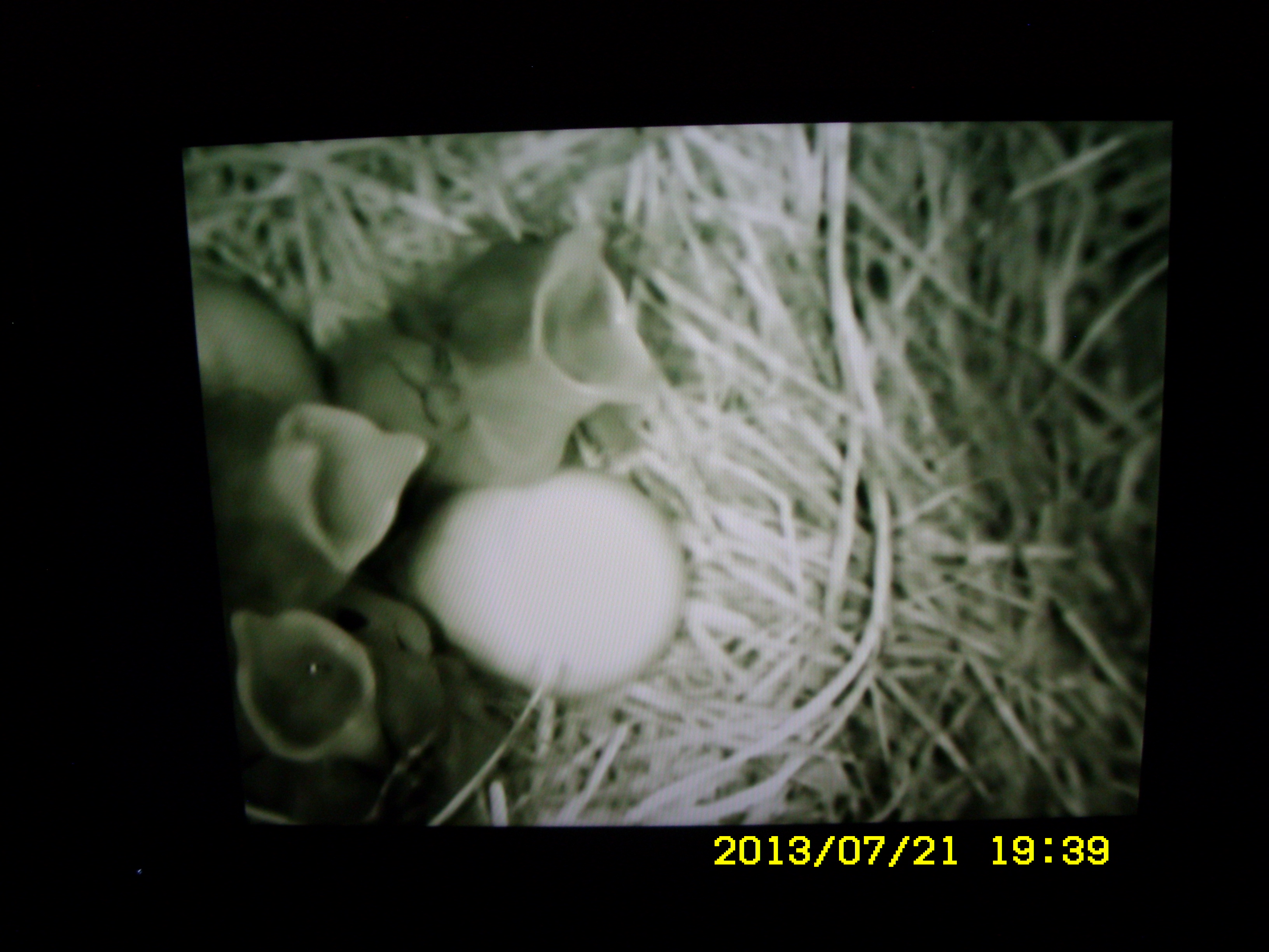 Next time perhaps, I should use a tripod so the pictures have perfect symmetry?! Hey, I’m just excited that I was able to see and photograph the event!! ~~ At one o’clock the nest looked exactly the same as it has for two weeks. 1:45-1:47 and I’m curious because one egg looks slightly different. 1:50 and a crack appears. ~~ I published the first batch of pictures at 3:20 while monitoring the TV and taking more pictures. It’s 4:00 as I publish additional pictures. Stay tuned; more to come. (You think these are repetitious? These are the best of one-hundred-plus shots!!) I’m curious about Mama’s absence from the nest. For days, and weeks, she has been on the nest every time I monitored it. This is extremely interesting to me!! Note the time stamps: All this in less than three hours.