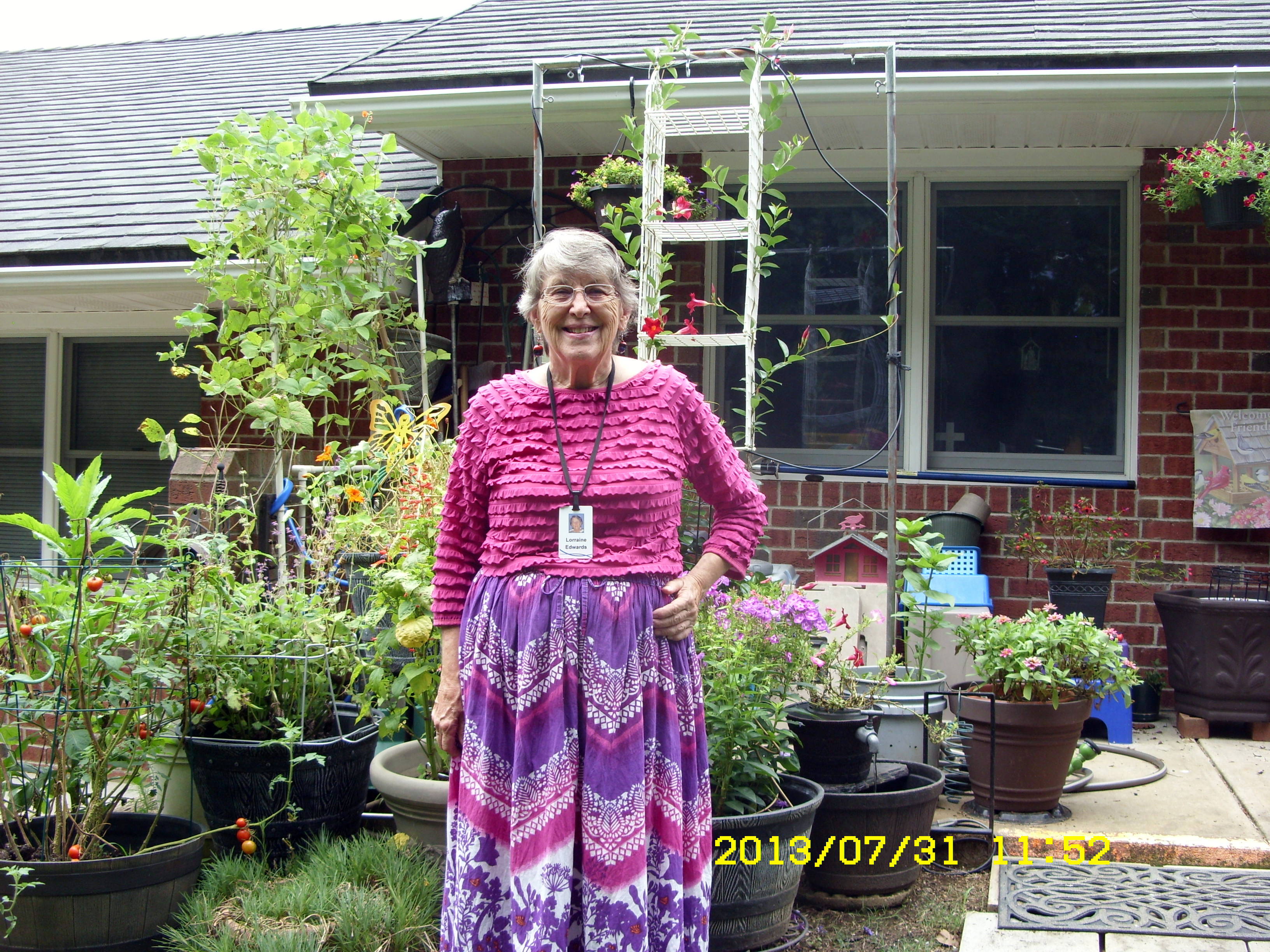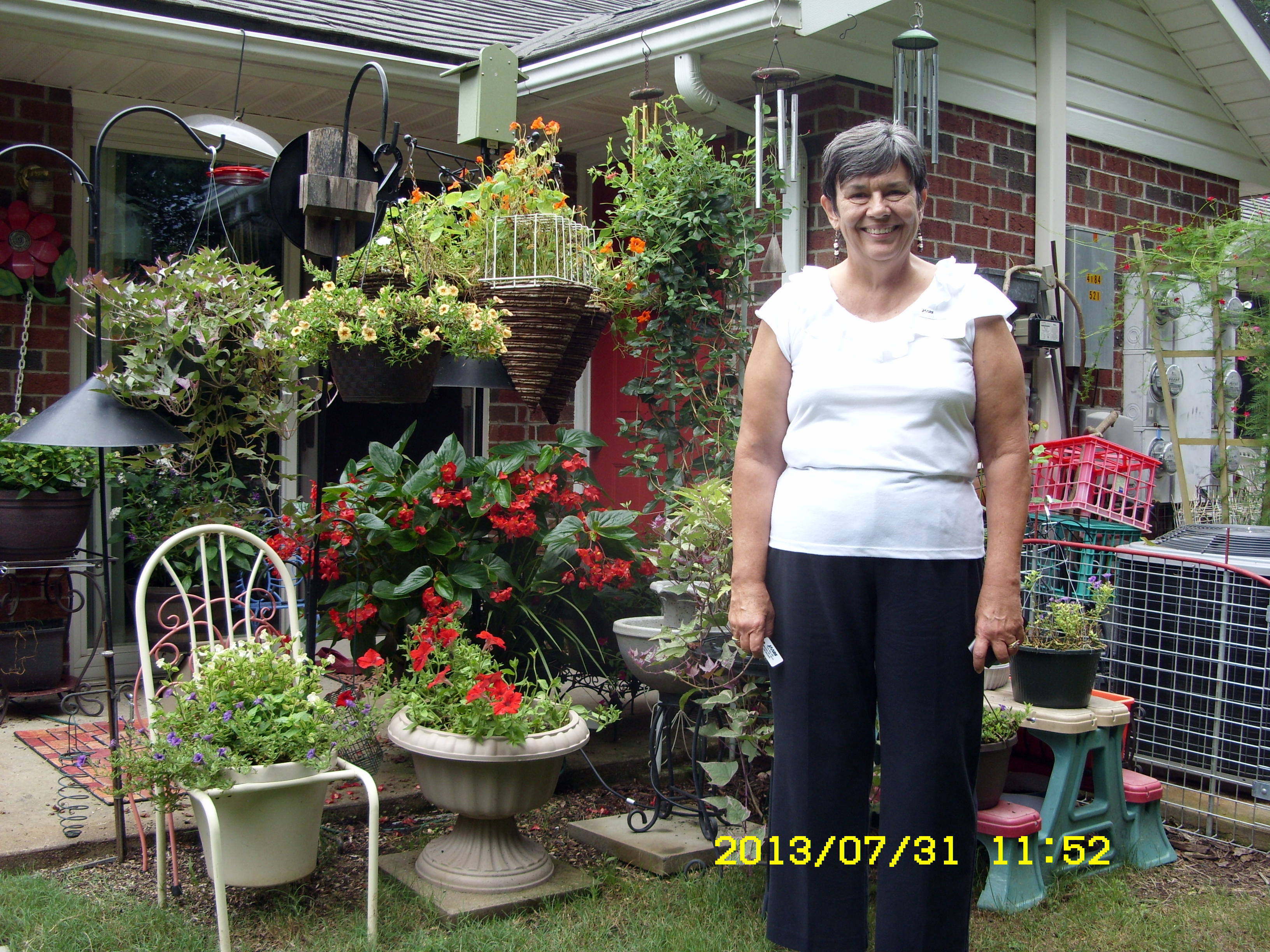 12 noon: Goody, goody, I had a visitor!! I’m delighted when someone is interested in my garden!! When Cynthia wanted pictures with her smart phone, it provided the opportunity for pictures with my camera. (When was the last time you saw a picture of me??)