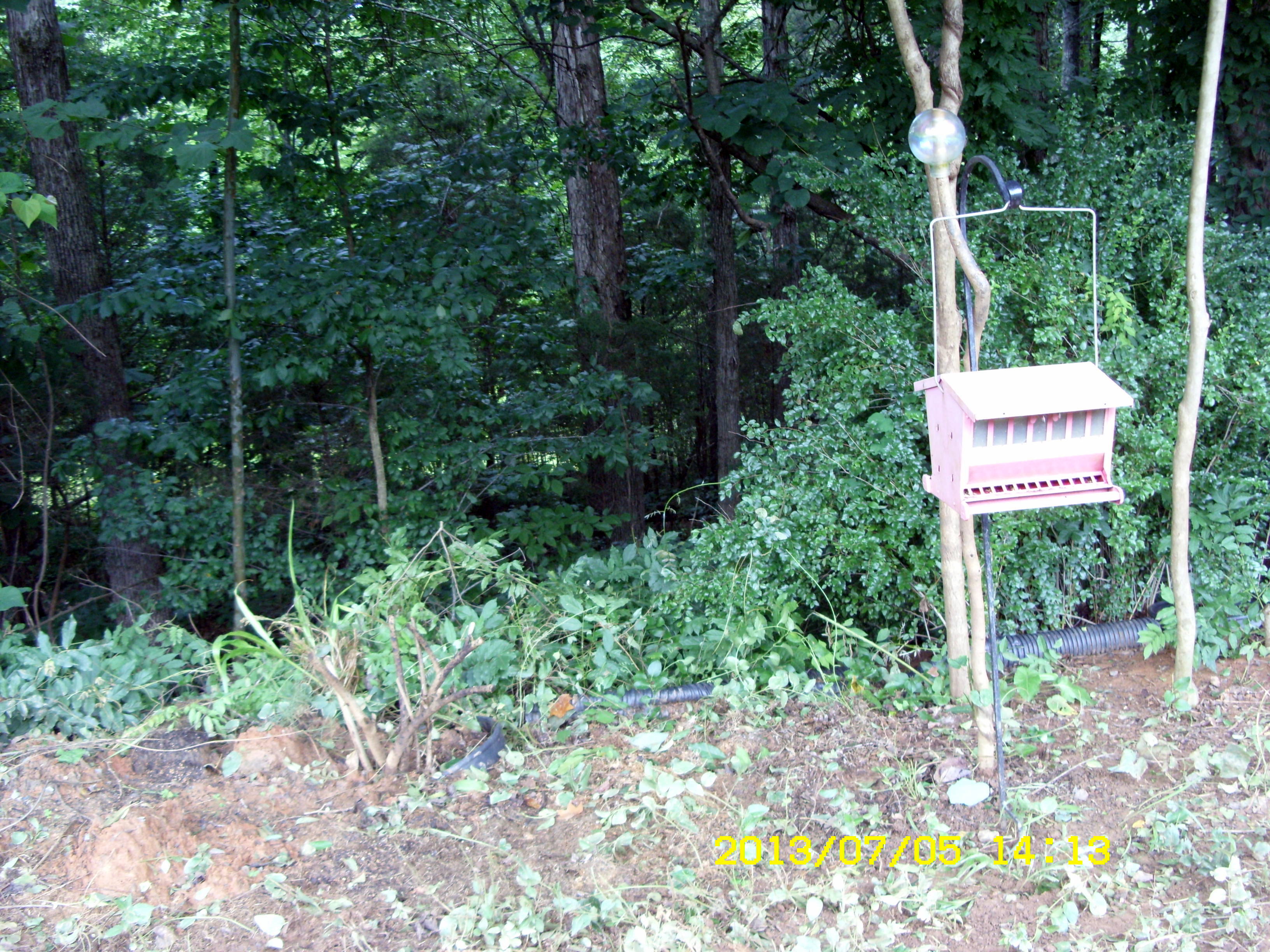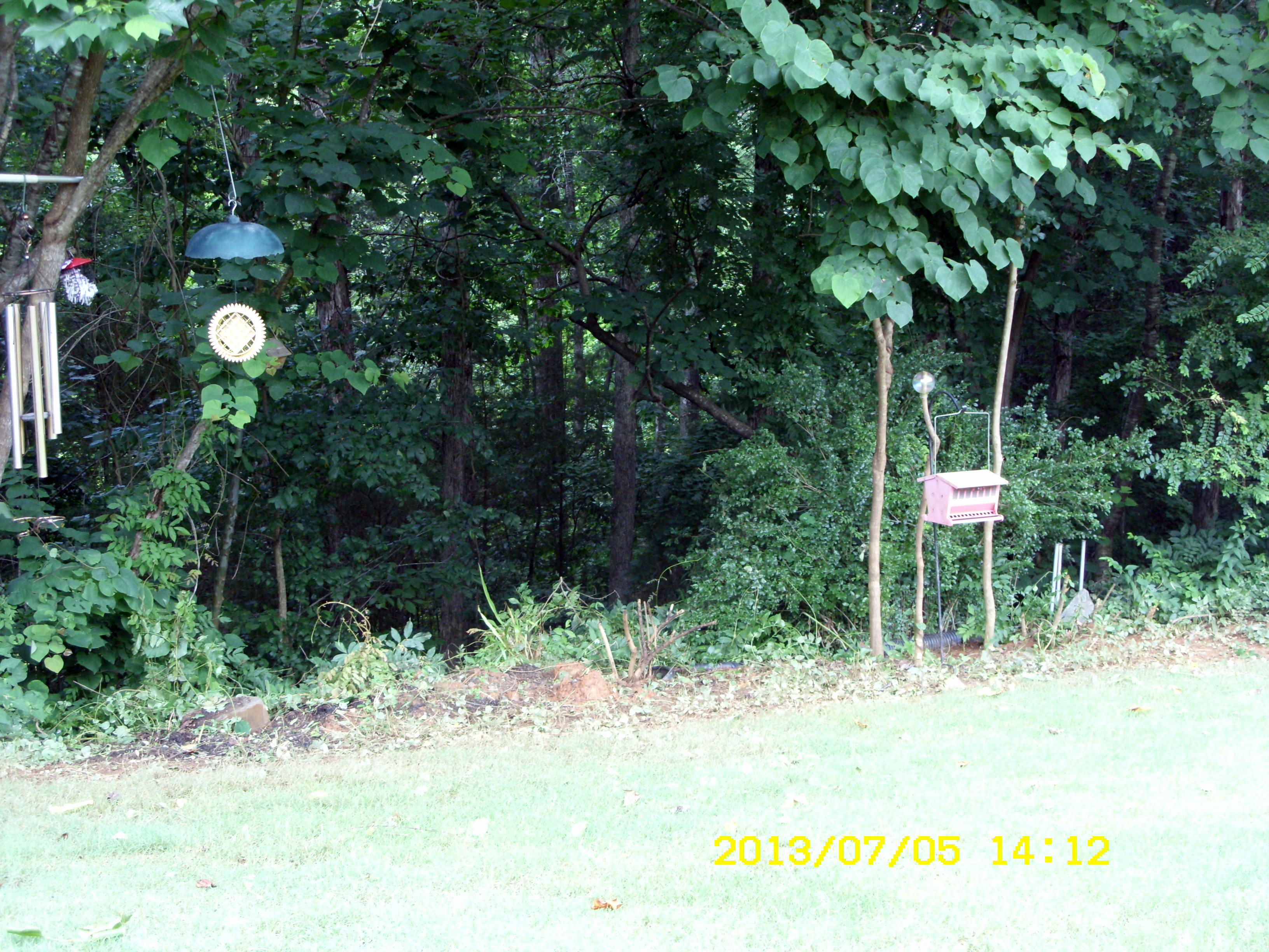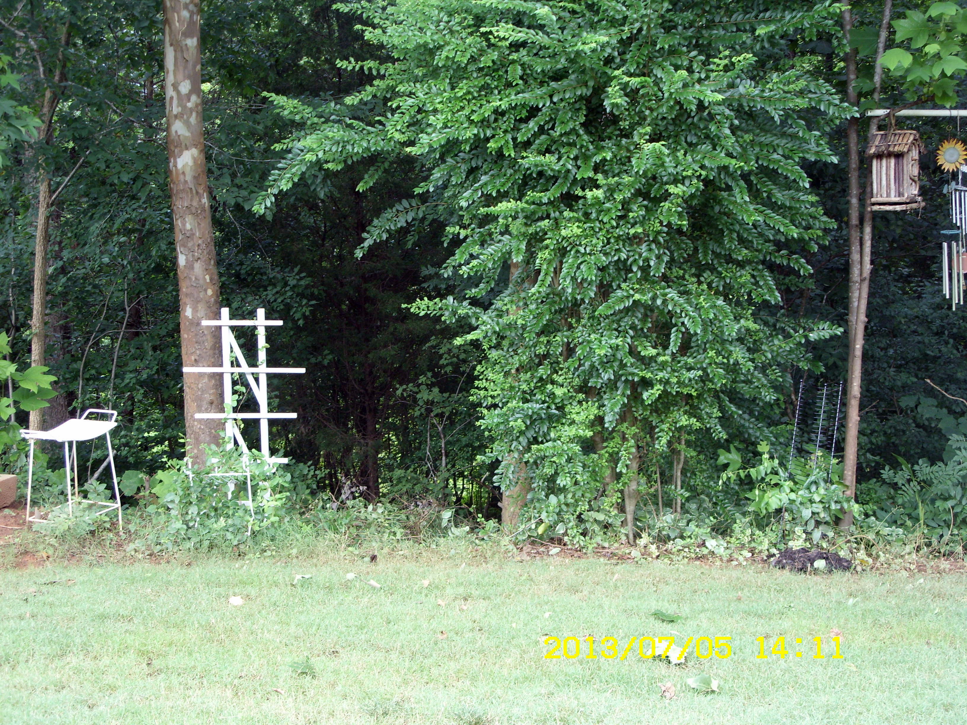 Truthfully, the pictures don’t really reveal the difference between “before” and “after” pictures. Accept my word for it, a lot of vegetation was removed and the area looks a lot better!! Something “old” is ancient root systems that thrust out new growth and look unsightly (in my humble opinion). Something “borrowed” is additional tools to tackle the project. I hired a teenage young man because “common sense” dictated I couldn’t do the job. Recently I started… but was soon the meal for a million “no-see-ums” and/or mosquitoes. Or (maybe) poison oak or poison ivy?! I was in misery!! ~~ I wish the young man had more hours for my project but he has a full schedule. He suggested he might be able to get back “in August.” ~~ I anticipate that I will be donning long pants, long sleeves and spraying heavily with a repellent before I finish beautifying that area. Trust me, I’ll be working there soon!!