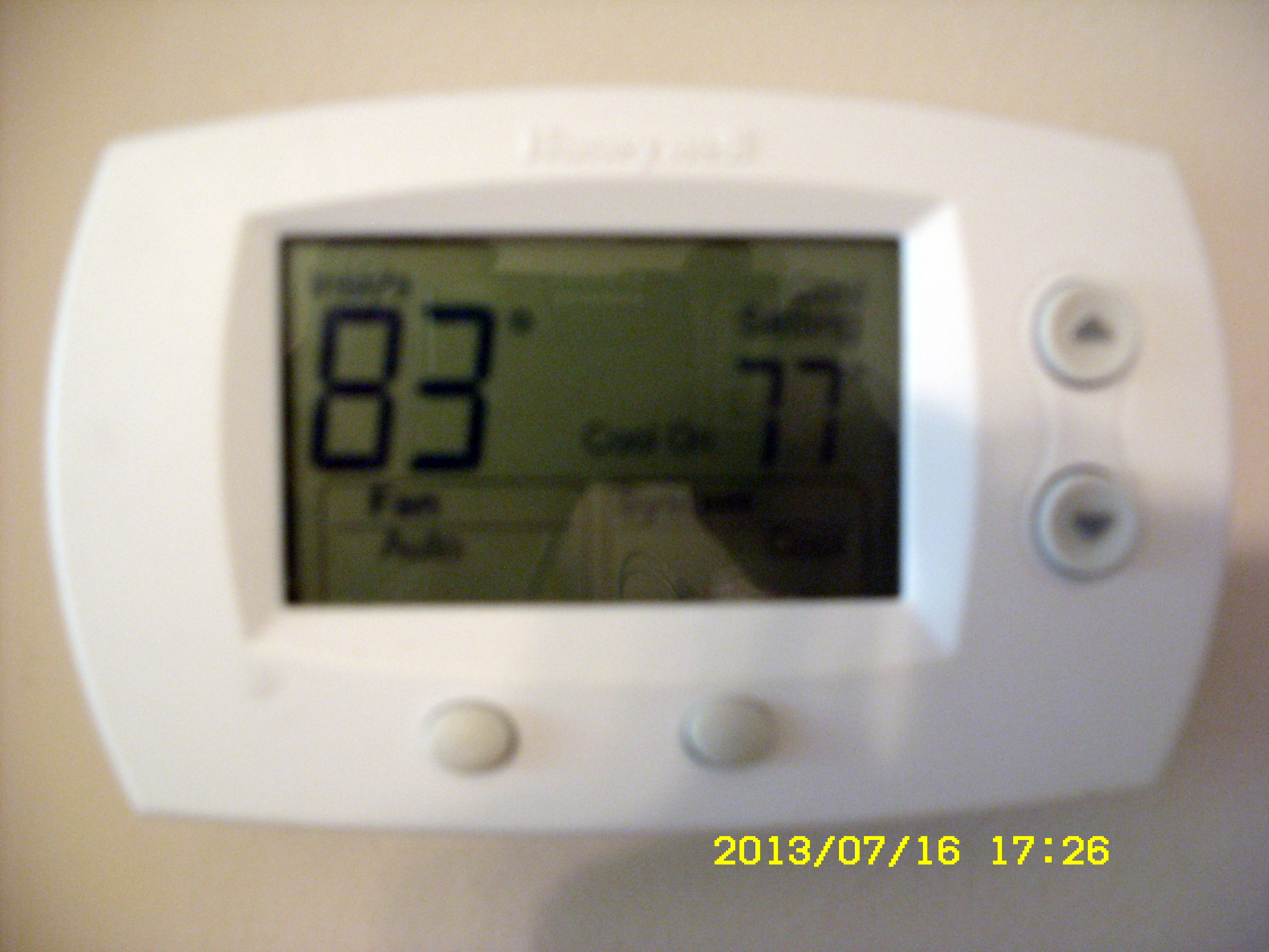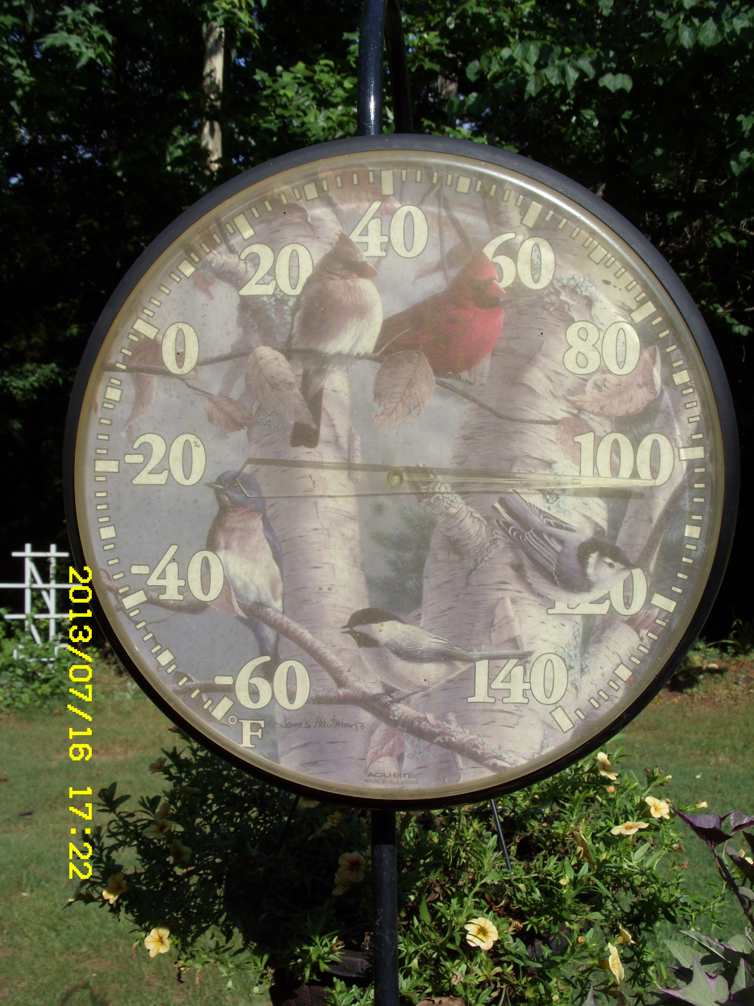 Actually, Tuesday, July 16, 2013, 5:30 PM: Did I say “frying pan”?? It’s more like an oven!! Note that outside thermometer says 104, in the sunshine, on the patio. Indoors, the thermostat says 83 degrees. ~~ Whew!! If I were a chocolate bar, I’d be a sticky melted mess. Forget that analogy: I am a sticky melted mess!!