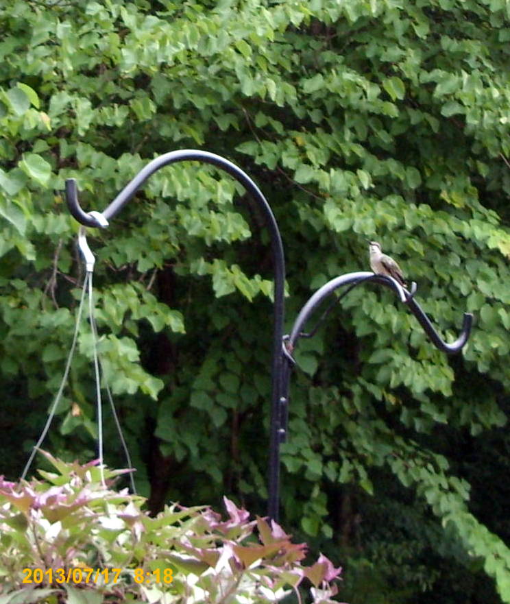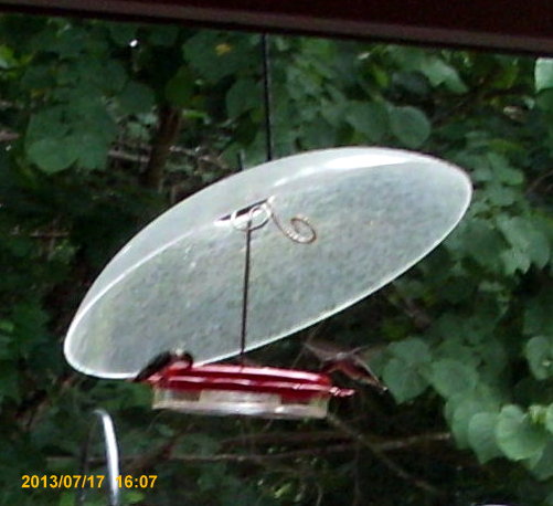 Today I have the privilege of seeing a female Ruby-throated Hummingbird on the perch occupied by the male a couple of days ago. I took over thirty pictures to get two worth publishing. They simultaneously visited the feeder but I didn’t capture that image.