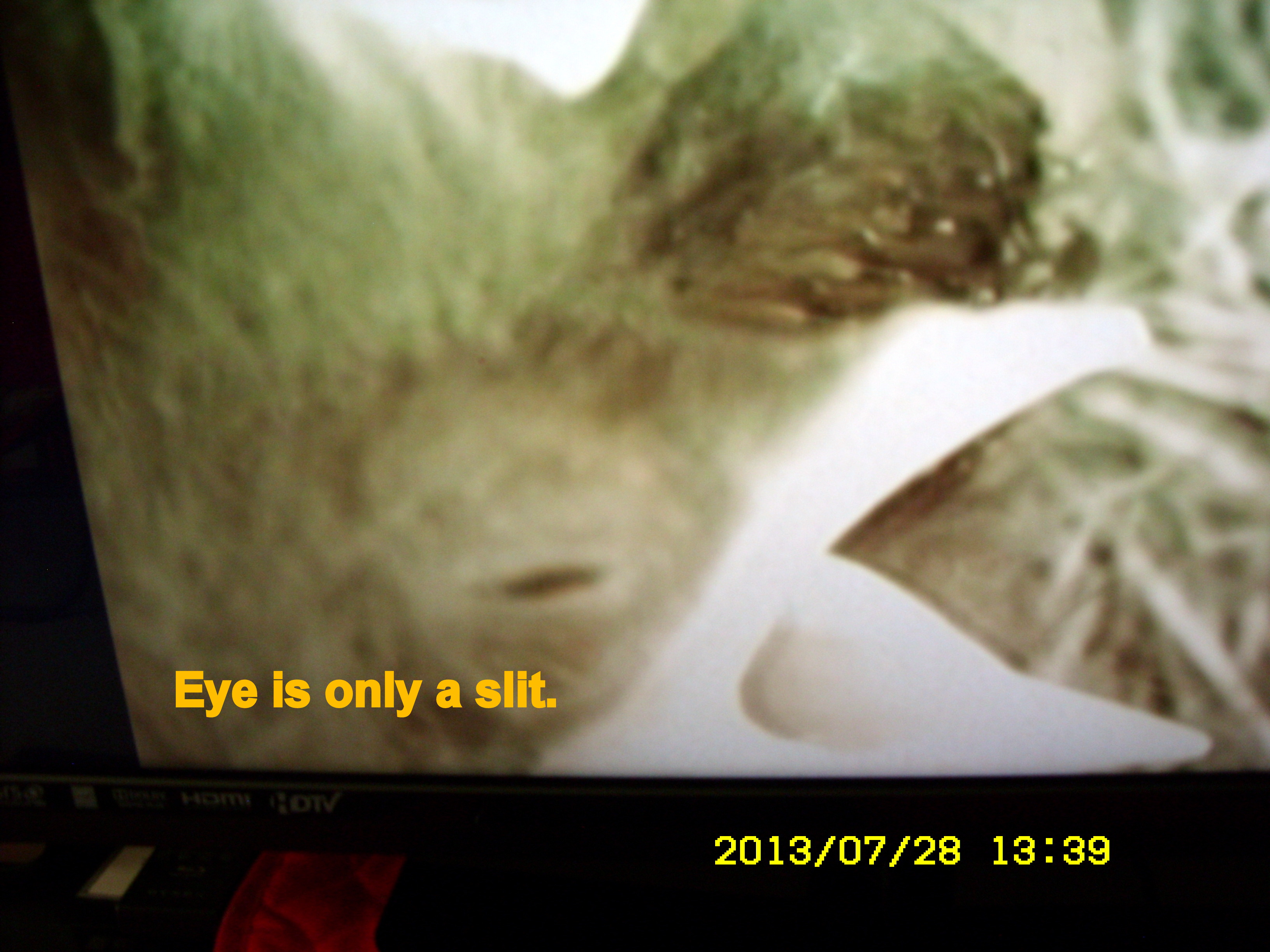 The “eye” pictures seem to illustrate the difference one day makes in their development. The baby with eye(s) wide open might be the first one born just seven days ago. The baby with eyes still sealed might be the last one to hatch. ~~ I don’t know their gender but I affectionately call them George, Alexander, Louis and Diana. They could be Georgia, Alexandria, Louise and Stewart (Diane, Princess of Wales, was born a Spencer). ~~ If you’ve missed the news recently, George Alexander Louis is the name of the new heir to the British throne.