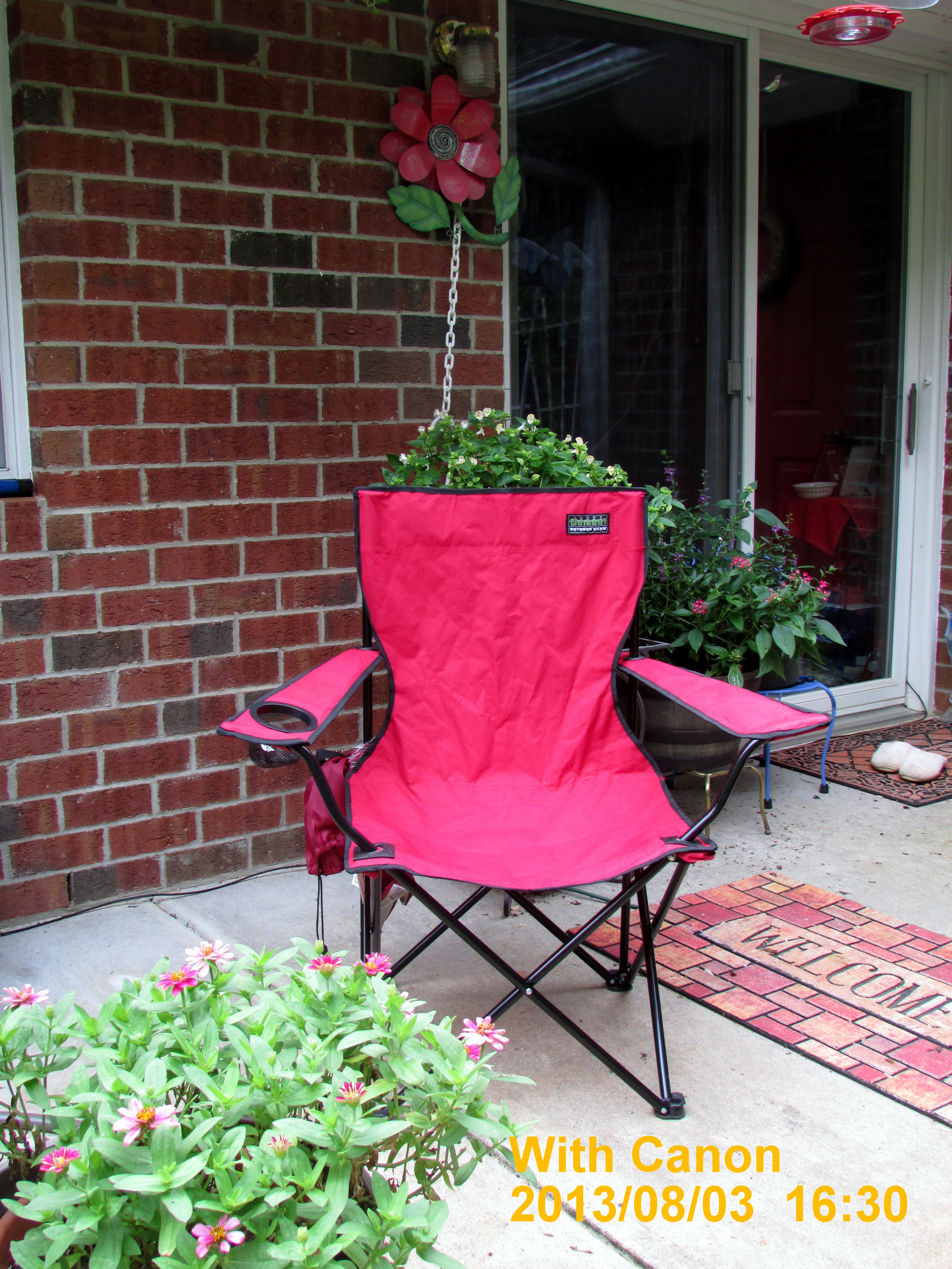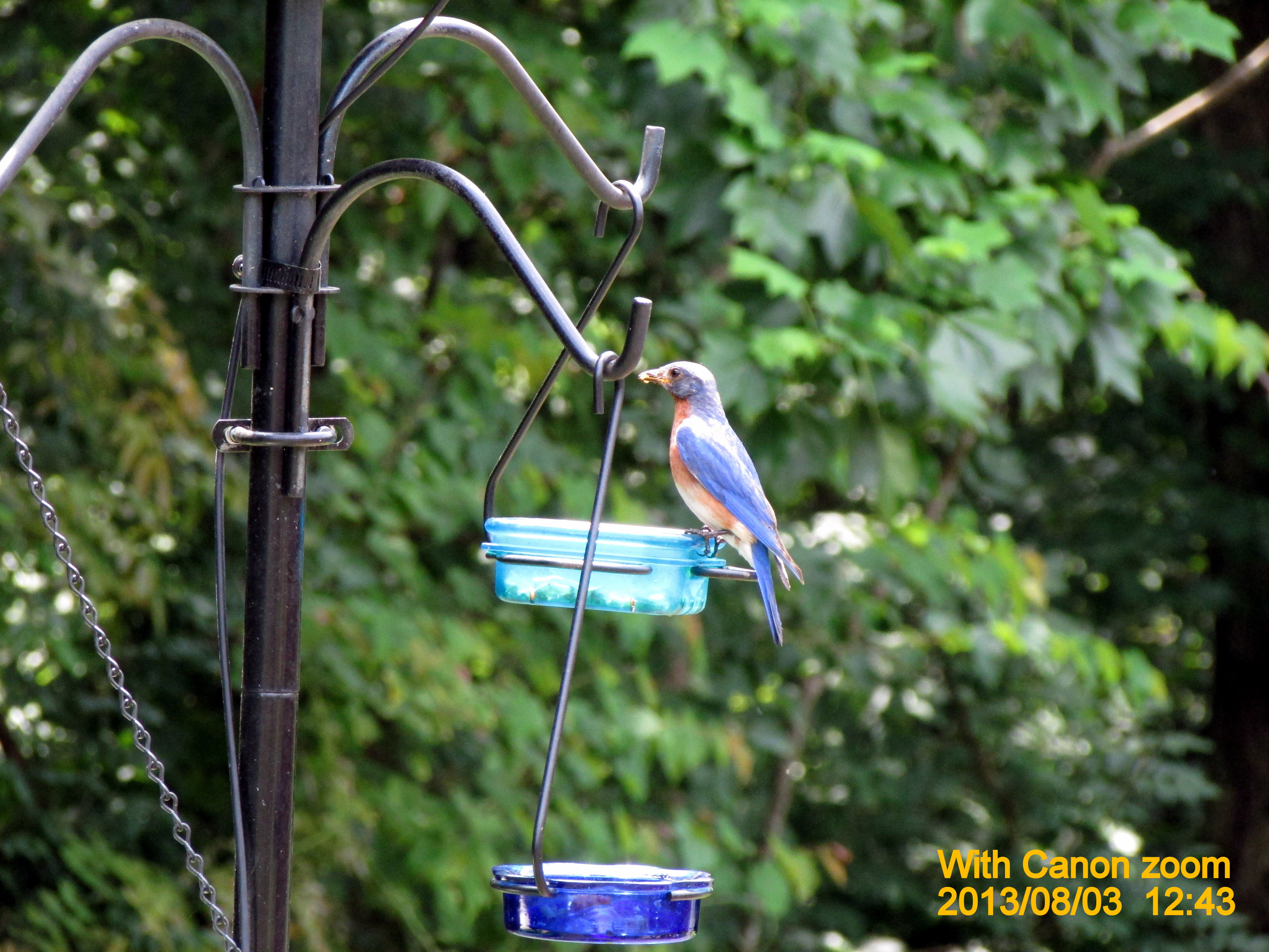 In the remote chance I might see one of the Bluebird babies fledge, I sat on the patio for a couple of hours. The following pictures have little value but provided an opportunity to experiment with the Canon. I love the zoom!! In the past, with the Samsung, I seldom used zoom and relied on the “crop” feature in Picasa software. I’ll spare you pictures of bees, chameleons and crows. (The Canon has “image stabilizer” so zoom pictures are better than those with the Samsung.)