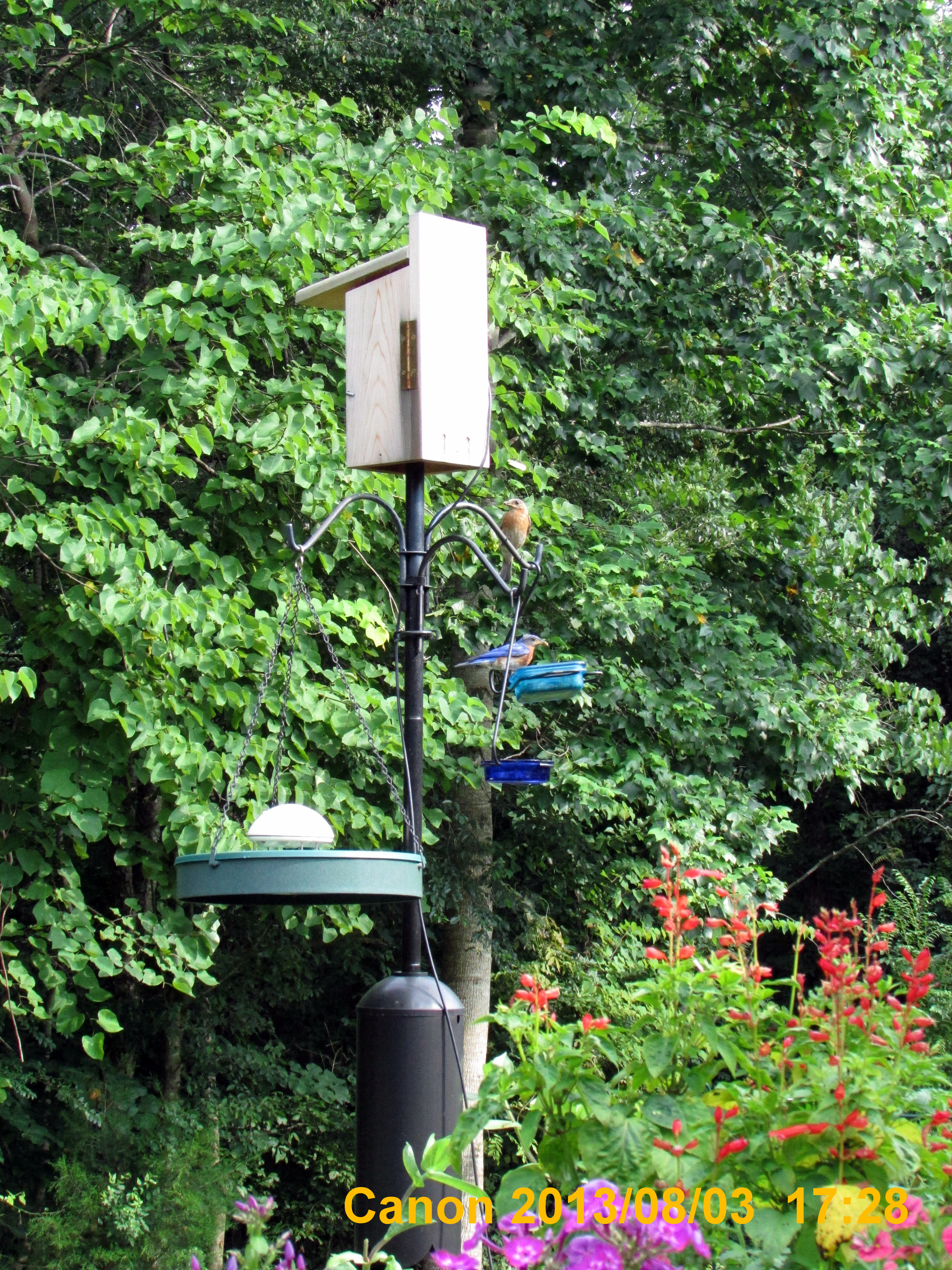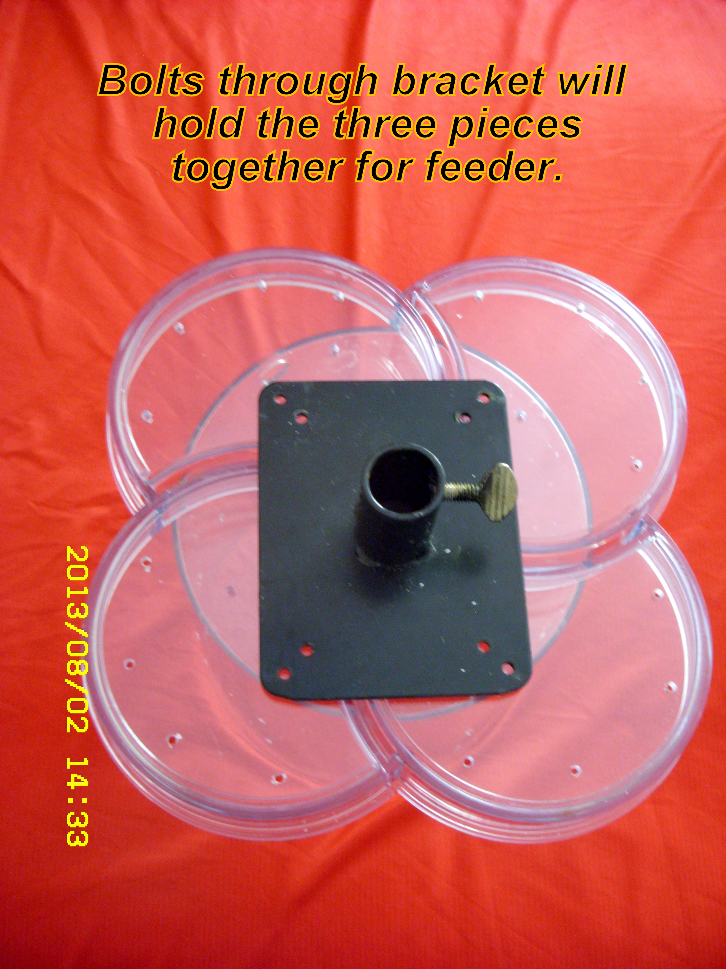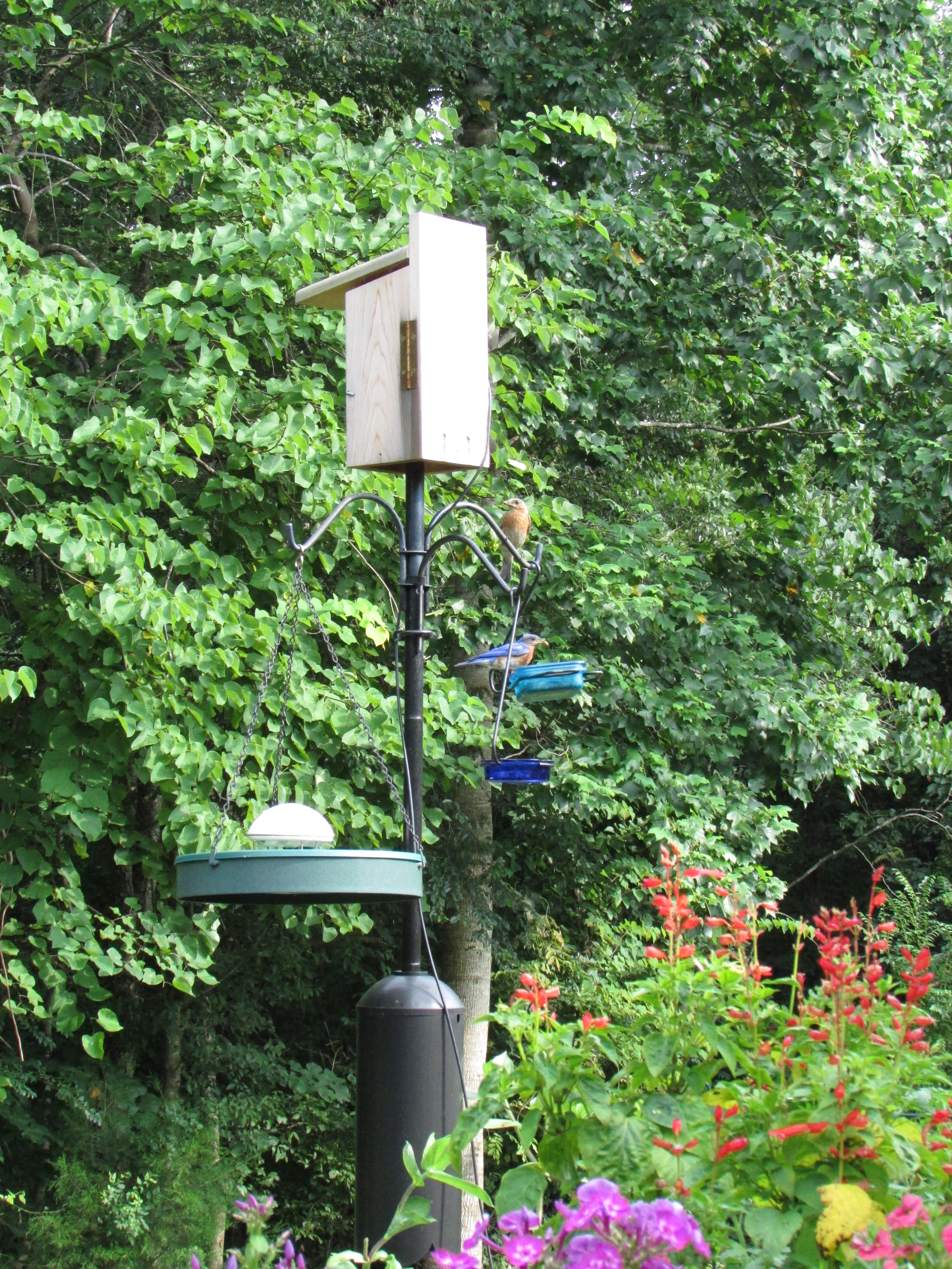 Postscript, Sat. Aug. 17, 2013, 3:00 PM: I’ve discarded the several items; I’ll never complete the project. I’m moving to Texas and will not have Bluebirds. Here is a link to a professional built “see through” feeder.
