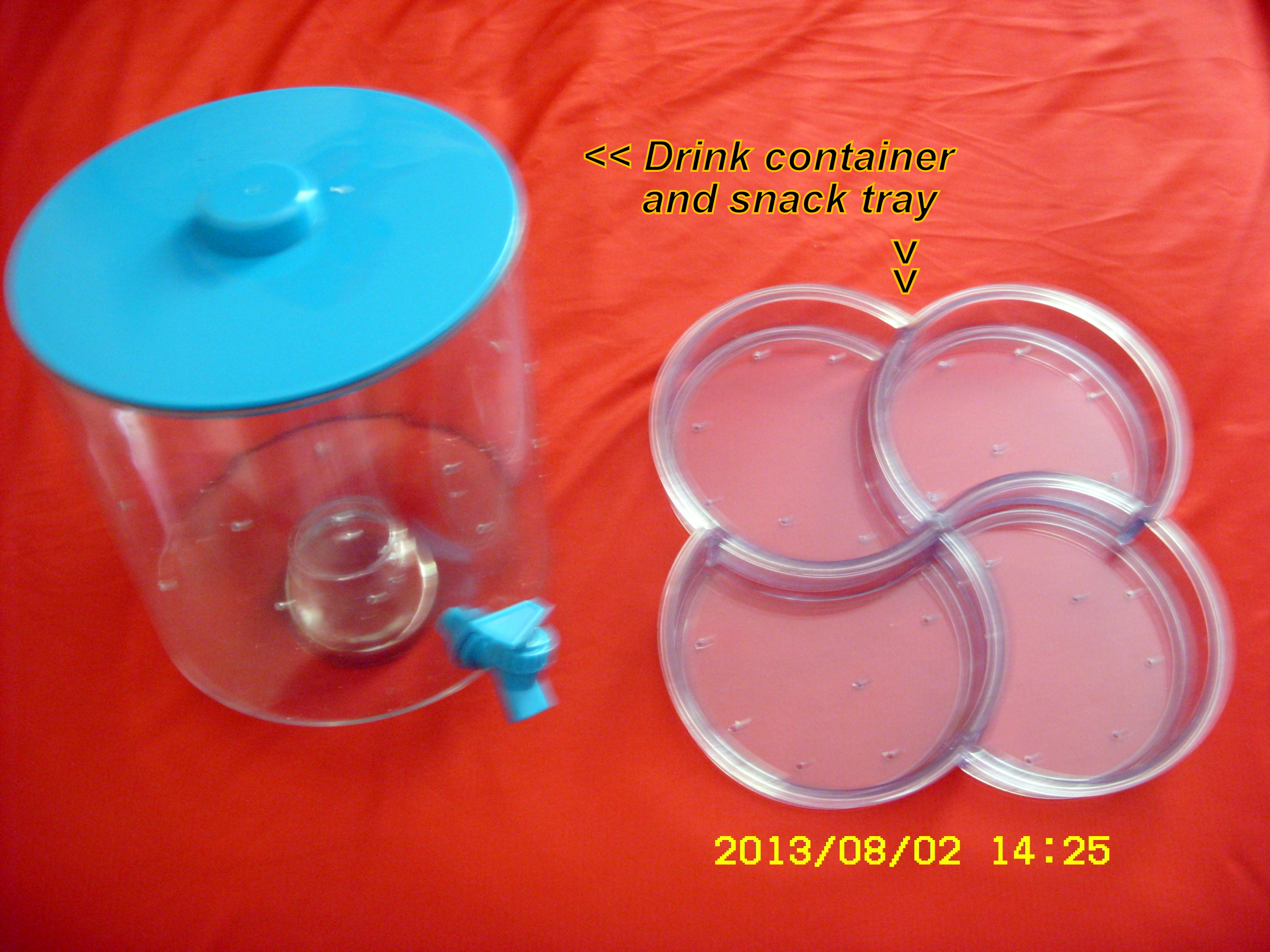 I love to be creative!! There is a sense of satisfaction compiling one item from unlikely objects. For ninety-nine cents, from Goodwill, I bought the plastic “drink” dispenser. I’ve owned the snack tray for decades!! The metal bracket was an eighty cent Thrift Shop purchase just waiting for its eventual usage.