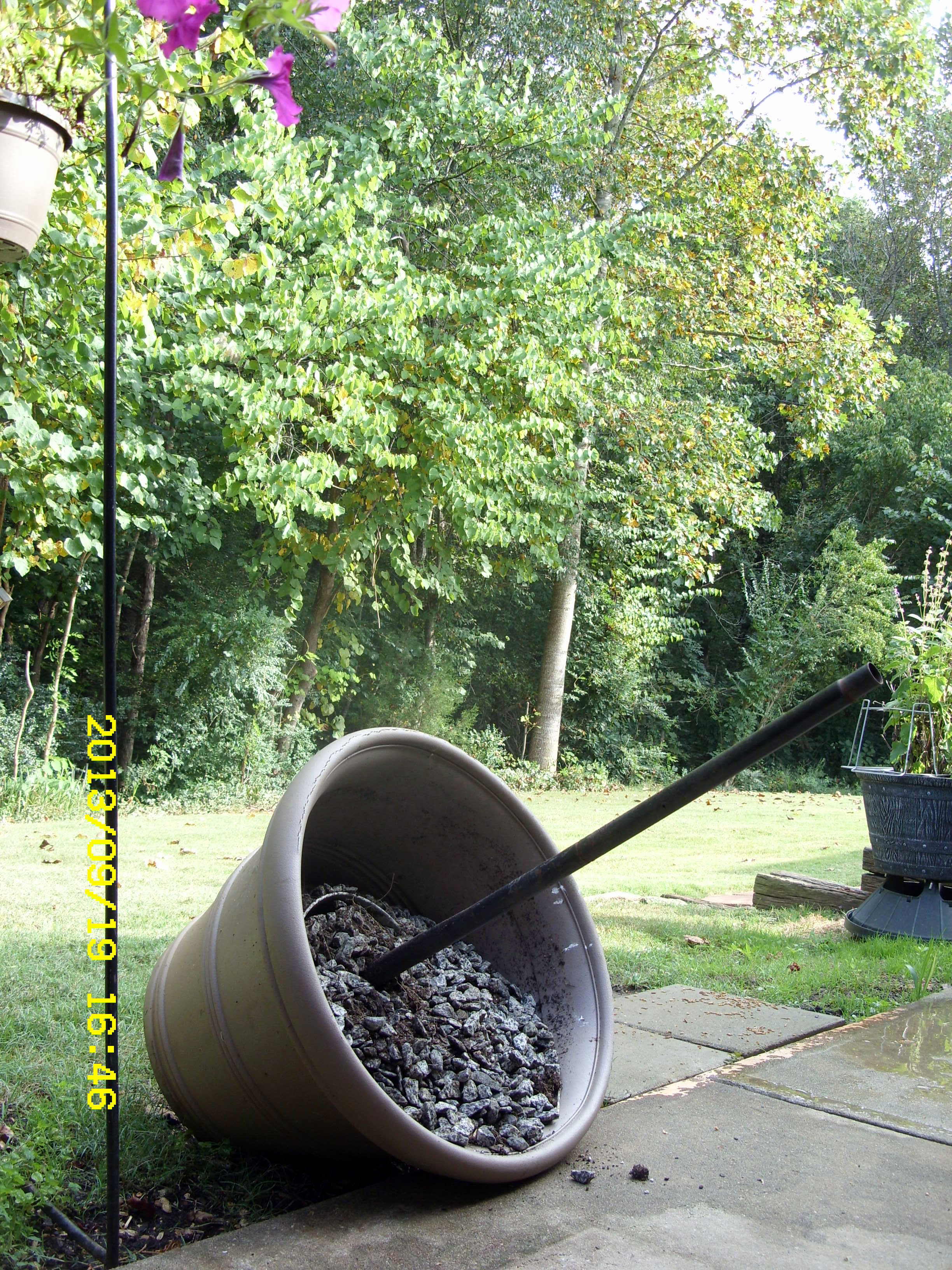 River gravel for weighted baseHow I hated to disassemble the support for the Bluebird house. Time is of the essence!! Components need to be washed; the planter and river rock need a new home. Finish line aheadThis was a late afternoon project after a day sorting, packing, and boxing items for Second Chance Boutique.Today I focused on the kitchen and most is done. Recently I removed clothing from the closets and packed–or donated. I believe “the finish line” is within view.