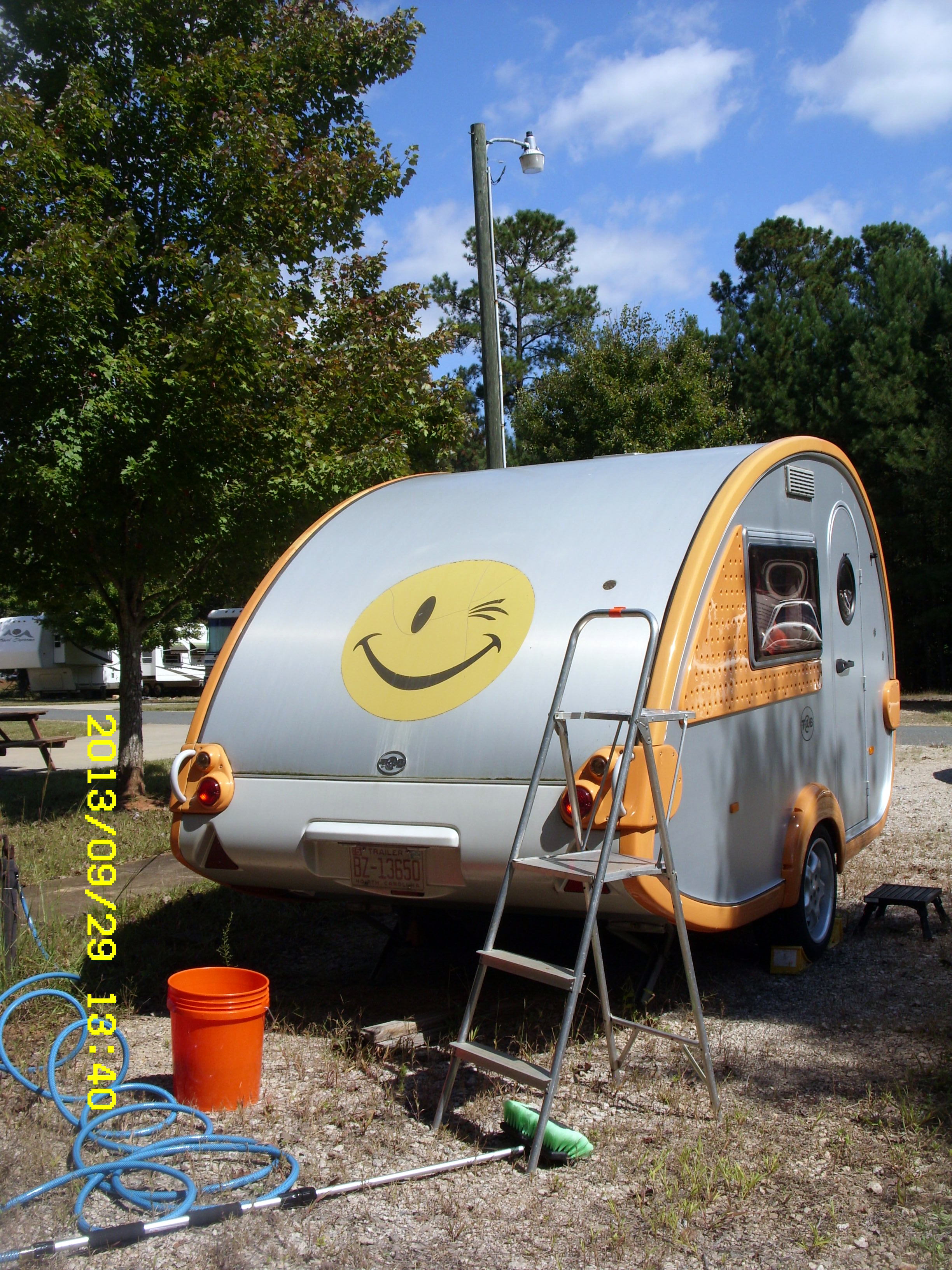 While I still have my step-ladder, I transported it from the apartment to the JAARS RV Park. With 20/20 hindsight, I could have dragged the picnic table close to Mercedes to scrub the top. Honestly, I’m so tired I only considered “the ladder.” ** I’m not complaining (“Just the facts, Ma’am” as Joe Friday [Jack Webb] used to say on the old Dragnet TV programs).