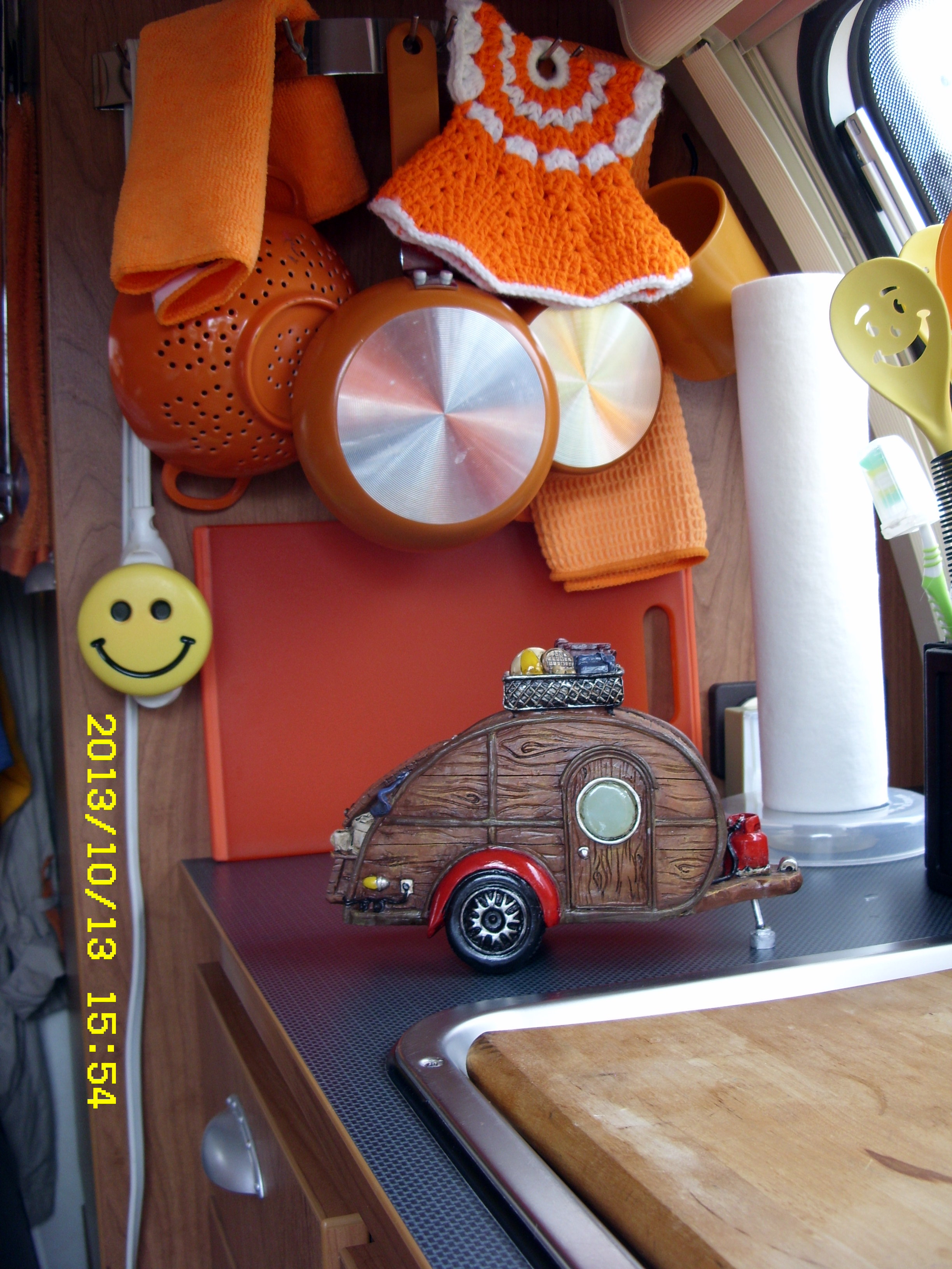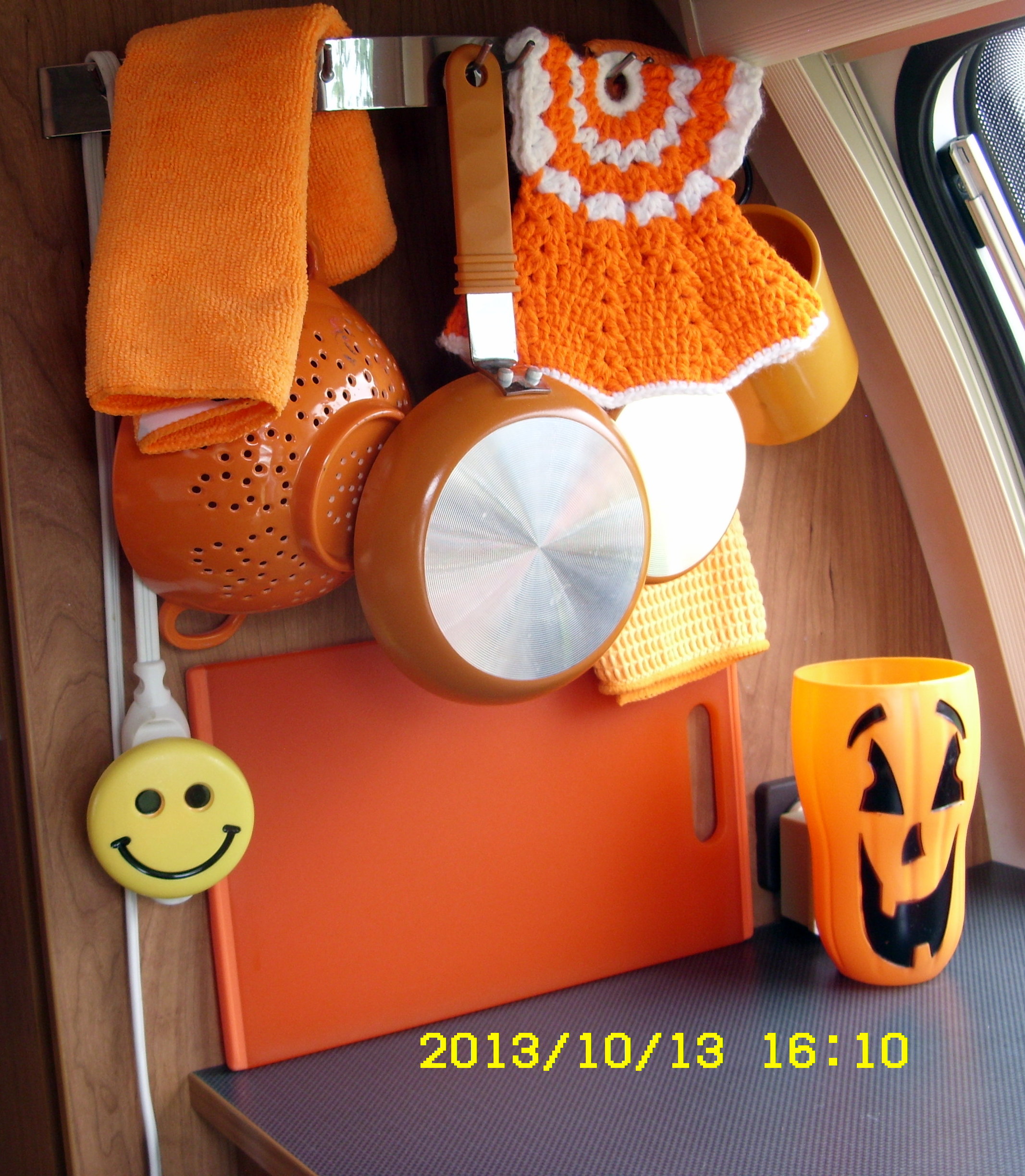 Orange is such a fun color. Aren’t you glad you didn’t run across a blue T@B? Glad you found the fan, and the weather cooperated so you could get settled!