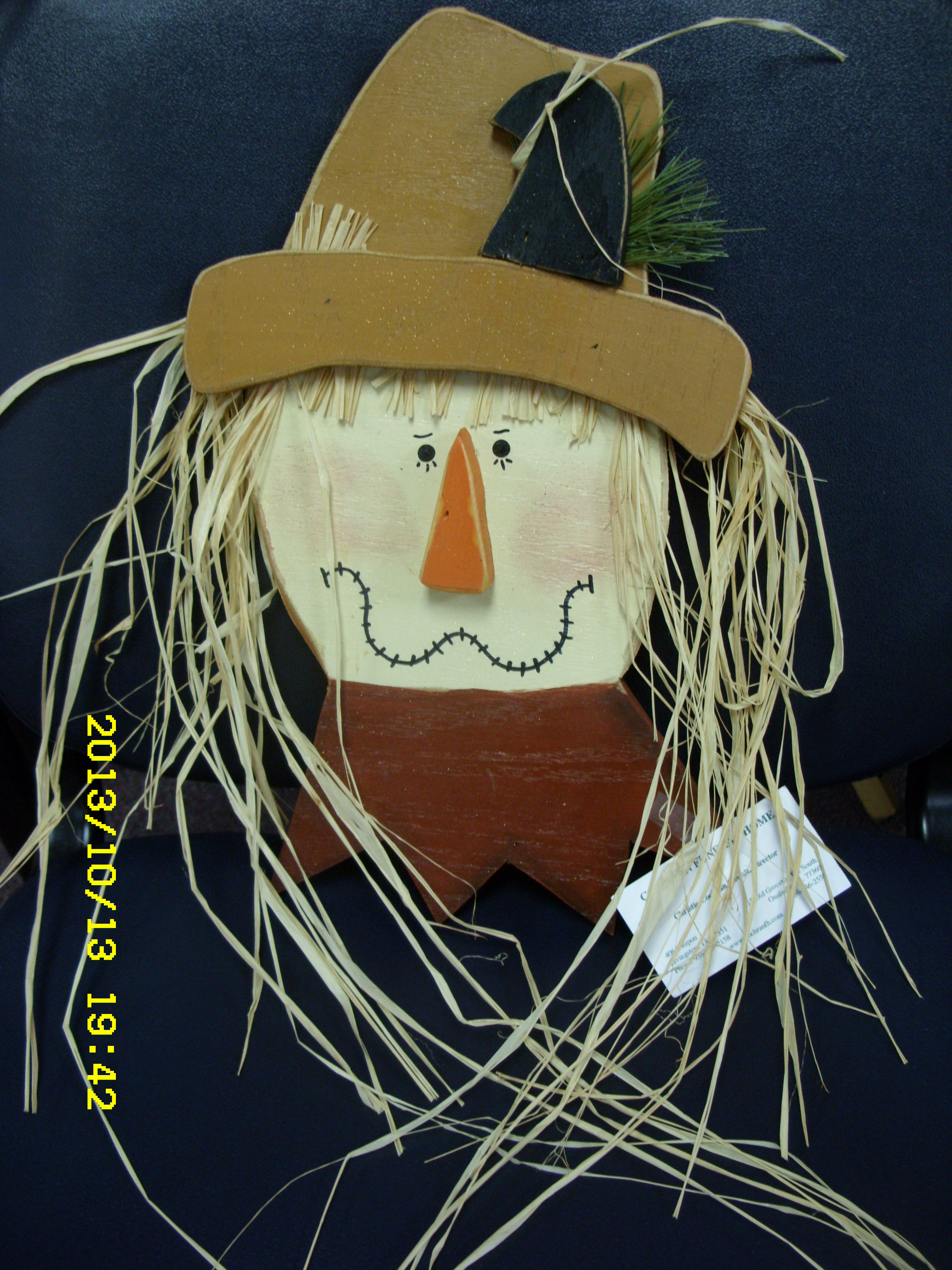 Door prizeThe Rainbow’s End Escapee October Fun Fest kicked off at 6:30 this evening. After ice cream, and socializing, and announcements, they drew for door prizes. The first item was an expensive RV TV antenna. No such luck; I didn’t win that. However, my name was the second one drawn and I “won” a wood scare-crow craft item. I do not have a place to hang it and have already decided it will be a hostess gift the next time I’m invited to dinner.  ~~ Surprise, surprise!! I found a couple I knew in Lancaster, California. We were in the same SKP Chapter and camped together frequently. Less than two years ago our paths crossed again at a SKP Rally in Marion, North Carolina. Small world?!  ~~ Eight PM and I think it’s time to head for the trailer.  ~~ Good night; sweet dreams!!
