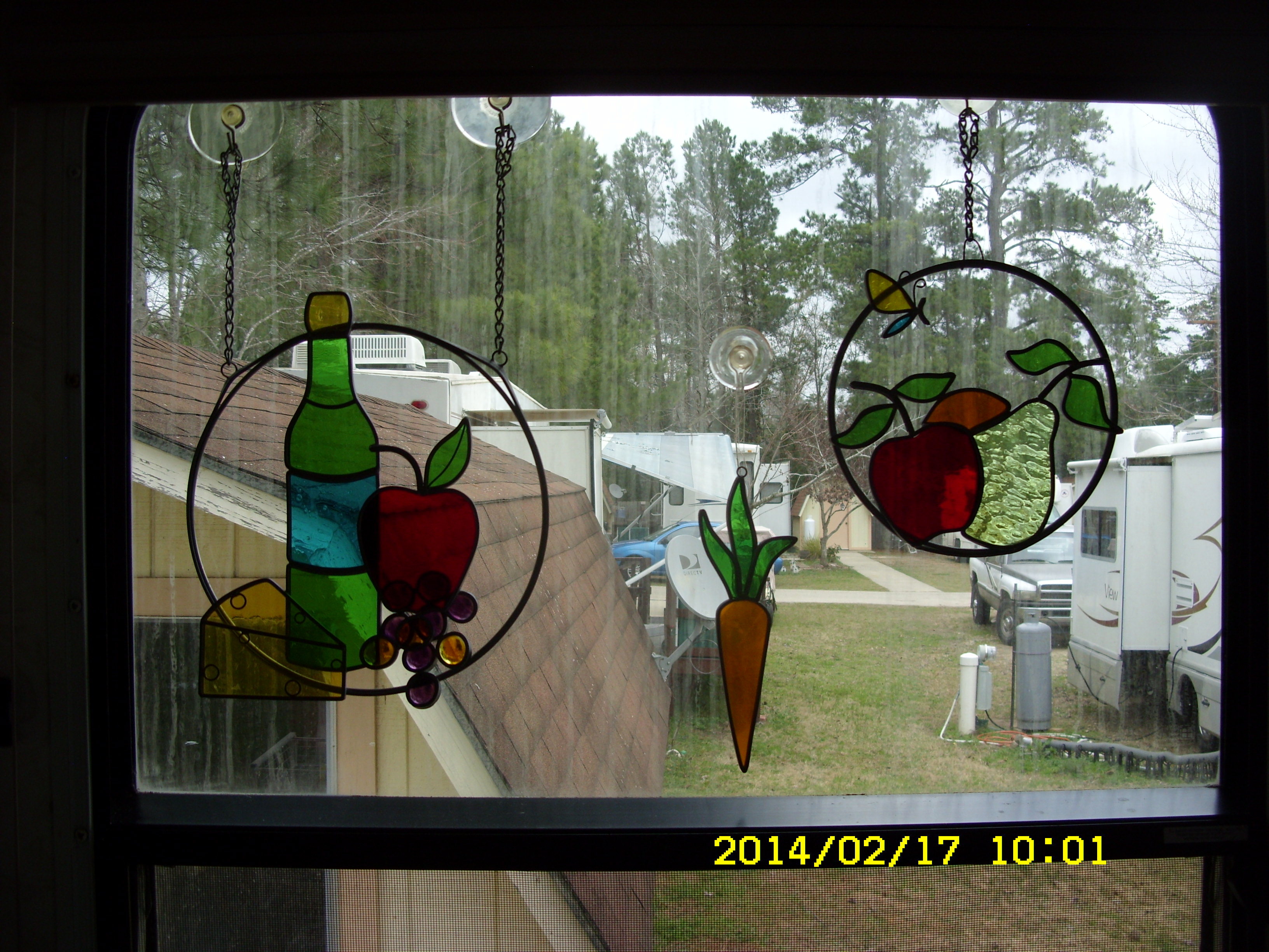 On second thought, maybe not so odd?! As I sort through decades of “treasures” (downsizing) I am reminiscing about people and events. Recently, I hung stained glass decorations in my kitchen windows. They have been packed for more than nine years; my husband, Donald Edwards, and I bought them at a “street faire” near Griswold’s, in Claremont, California, over thirty-five years ago.