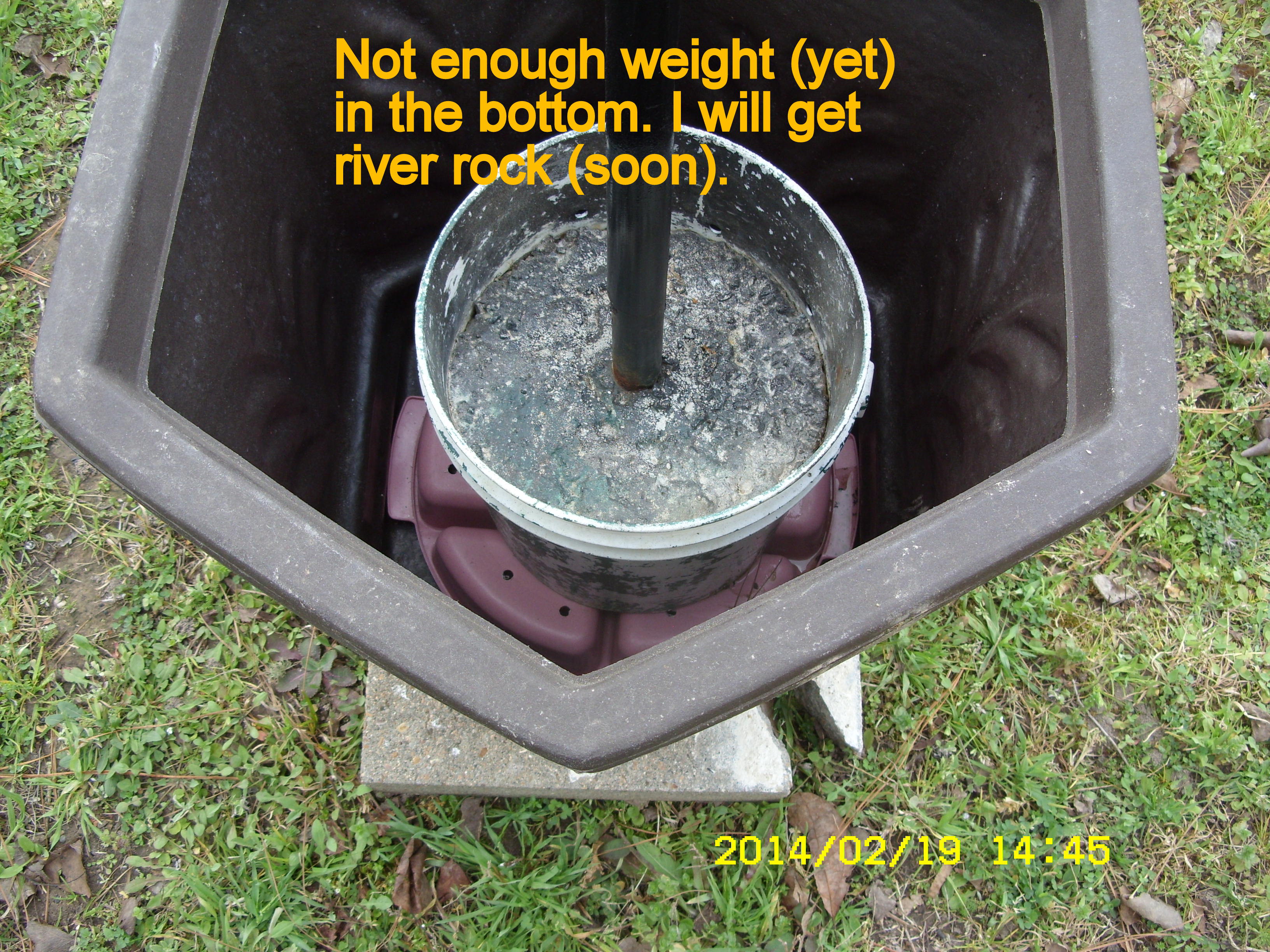 Postscript: I was inside the trailer and heard a crash. Puzzled, I went outside to check. Oh no!! ~~ The pictures tell the story. ~~ It’s 3 o’clock and I am heading to Lowe’s, in Livingston, for river rock and planter soil.