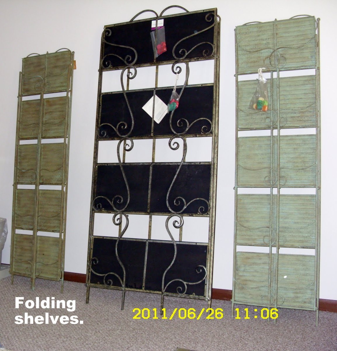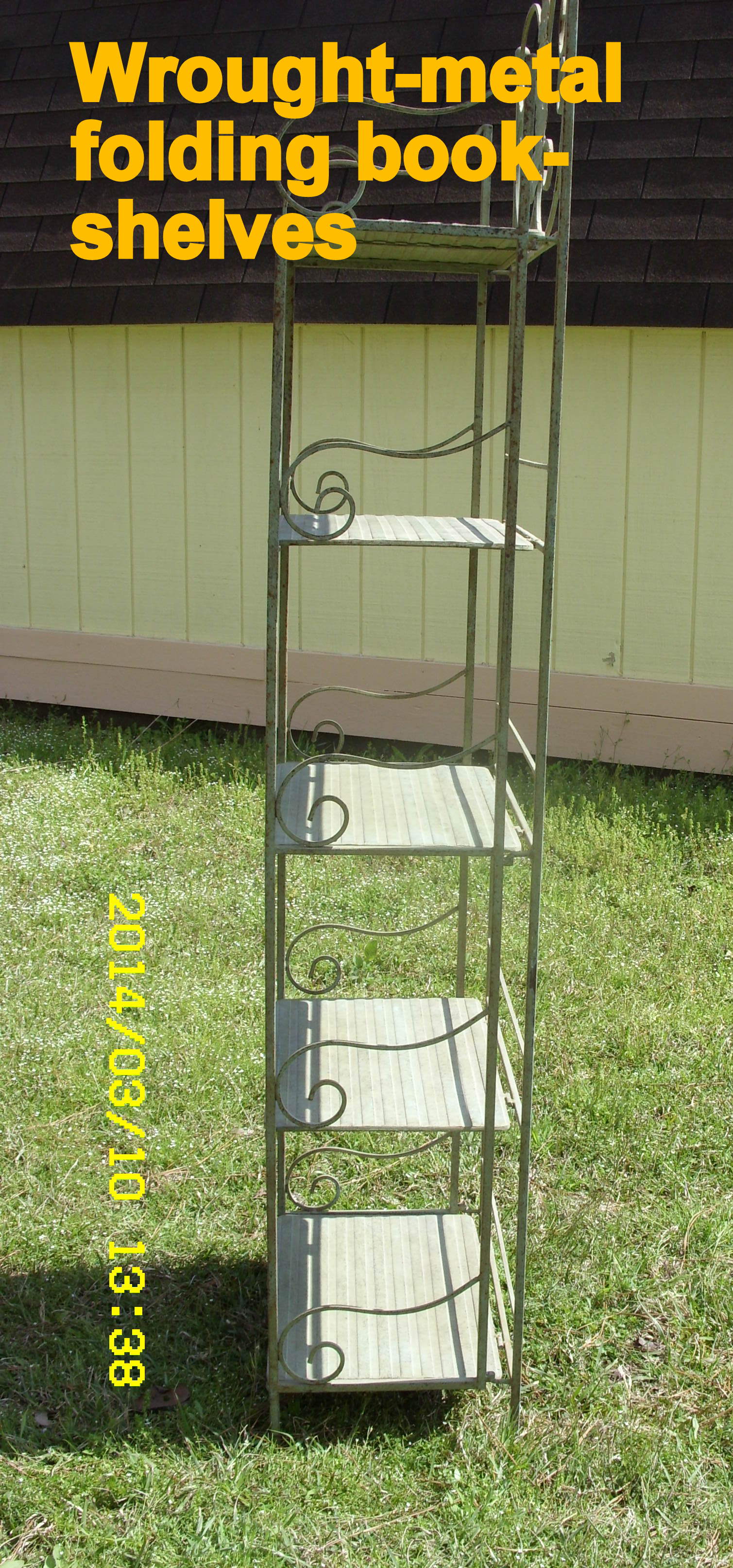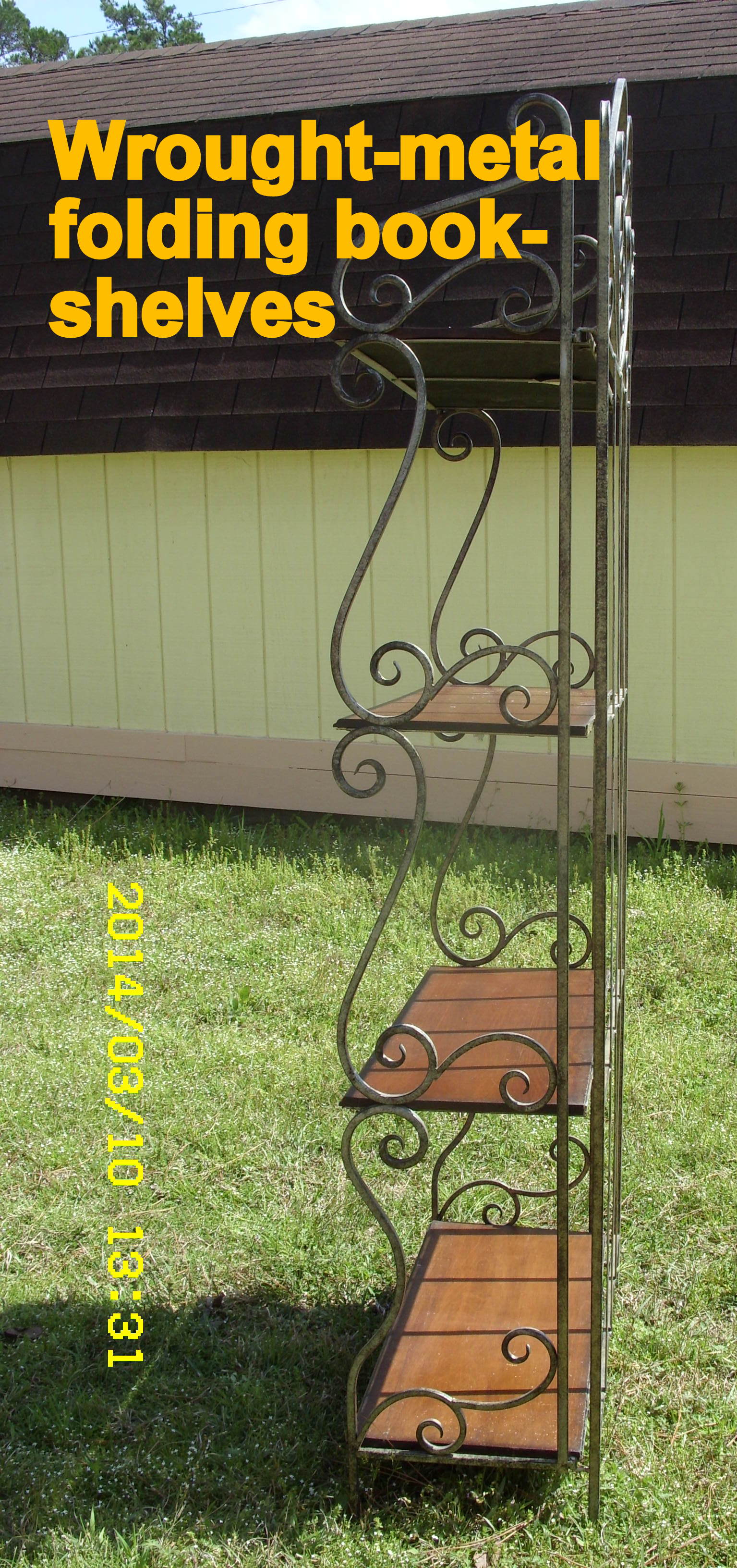 Wrought-metal folding bookshelves. (One large and one somewhat smaller.)