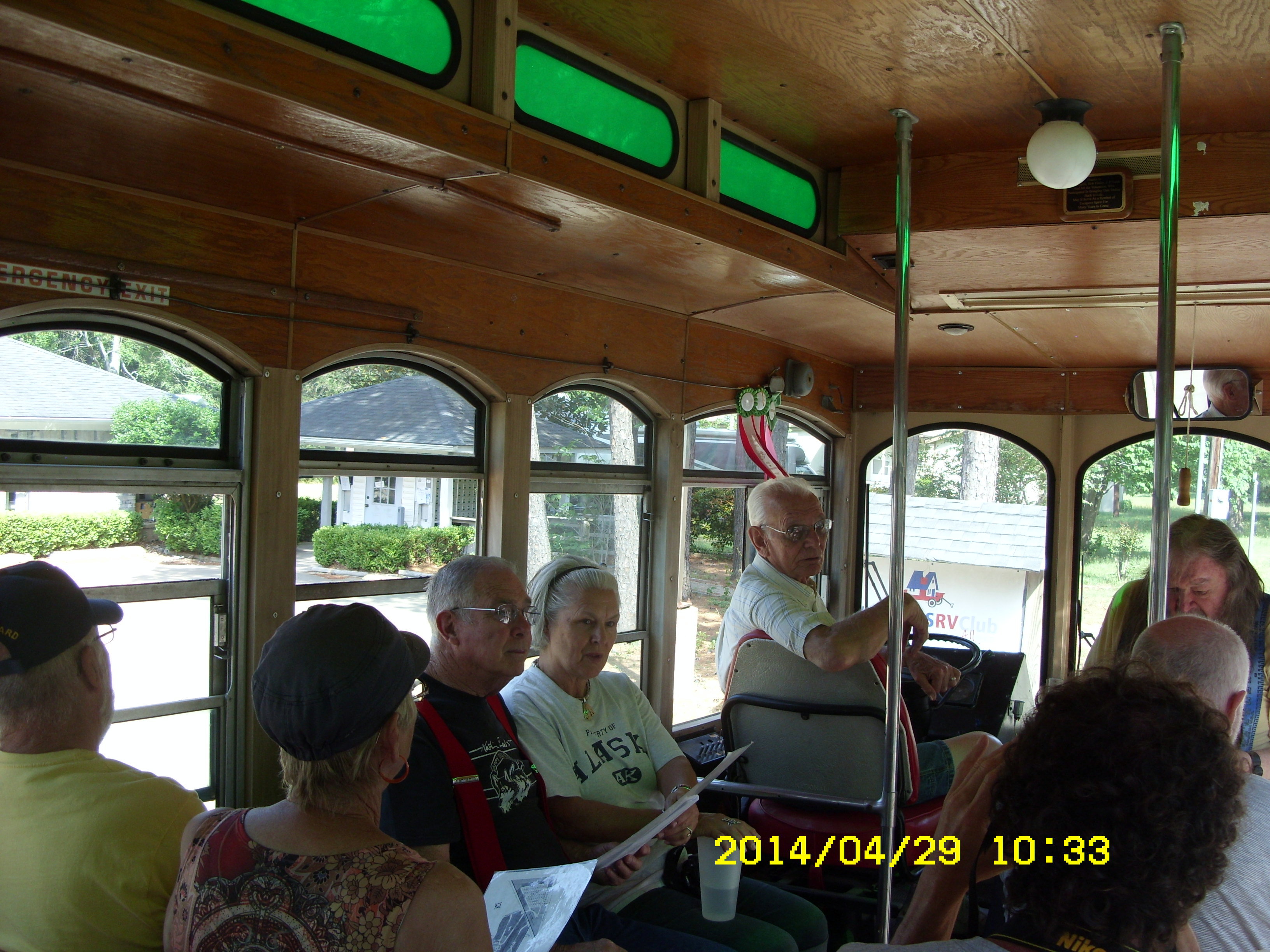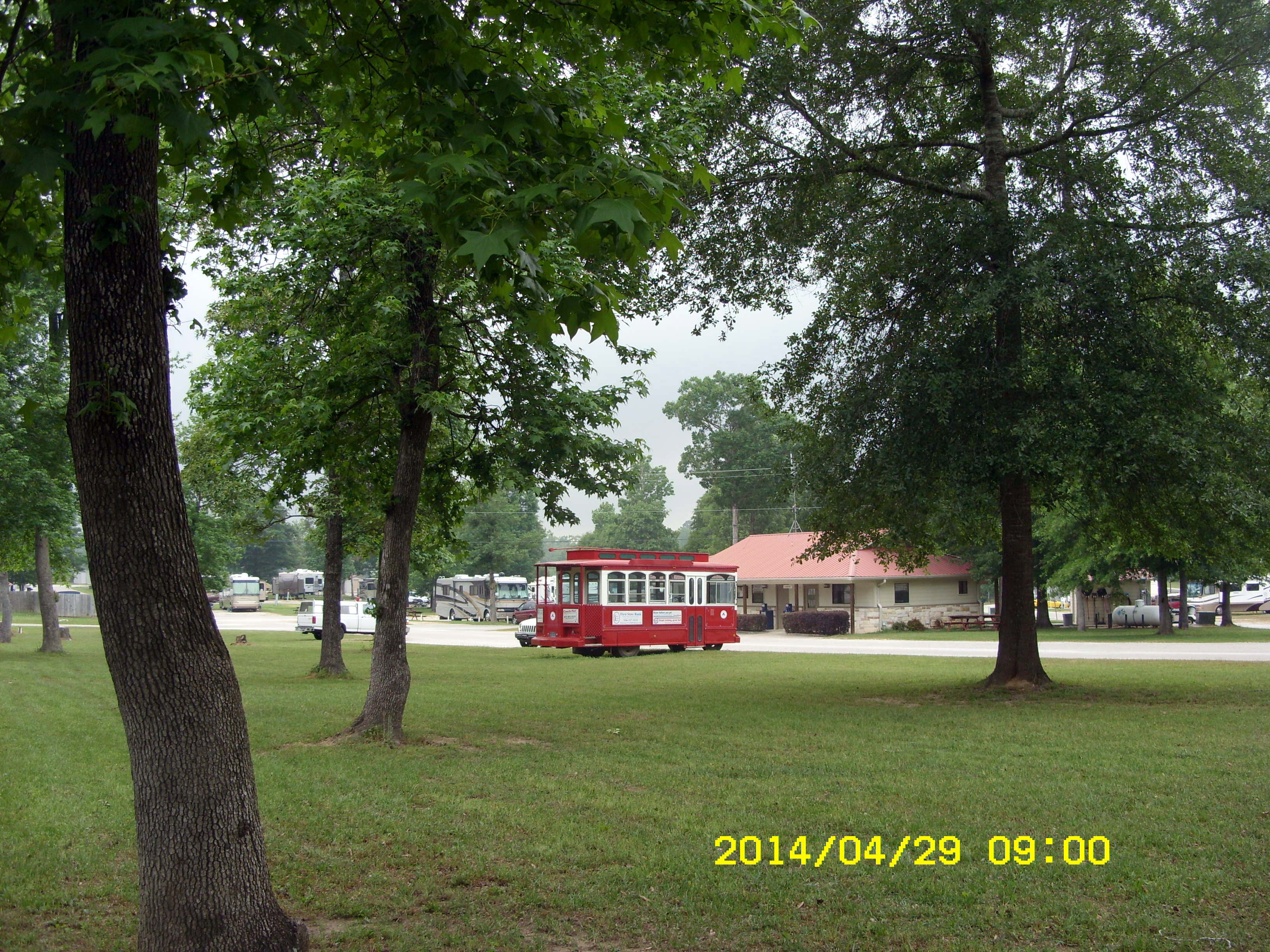 Speaking of golf carts: A cart and driver went over the embankment into the creek shortly before the trolley arrived at the location. We were asked to summon help and direct the ambulance to that remote corner of the RV Park. That particular location is designated for the disposal of leaves and limbs and, understandably, the ground is not solid. I surmise the weight of the golf cart and driver caused it to slide down the hill. The man seemed OK but the ambulance was en route.