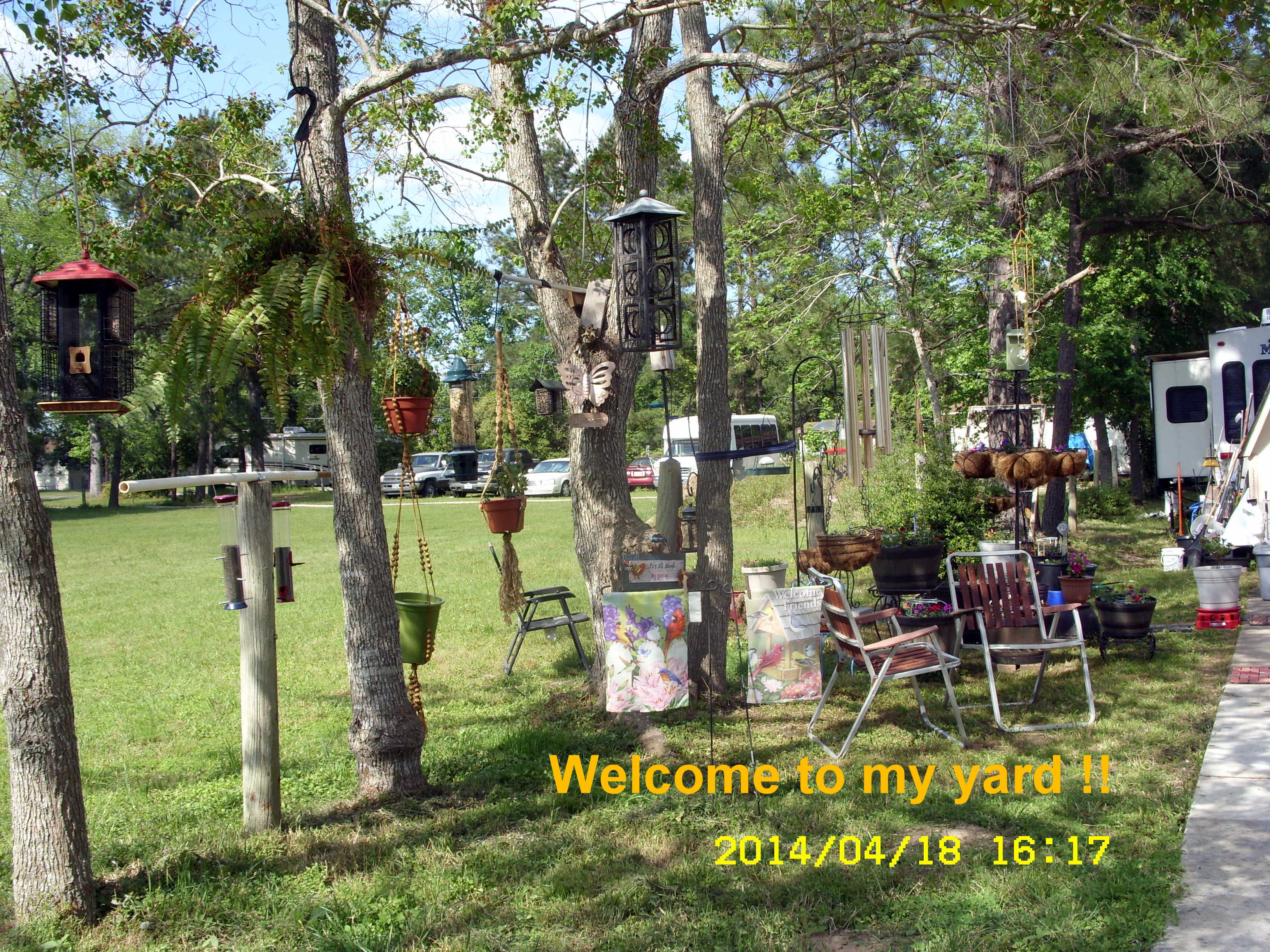 Finally, the last of Lowe’s mark-down plants are in planters. Nothing specific (garden-wise) awaits my attention (Praise the Lord). I’ve had the Rosemary plants for over a month–from a neighbor in the Escapees Rainbow’s End RV Park. Through “the grapevine” I was told the Facility Director does not want plants in the ground. The planter bottom has been removed… so, ultimately, the roots will go into the soil. The two Rosemary plants are my exception to his rule; they may not survive in their location; maintenance may yank them out. ~~ This morning I rearranged the electric cord to the fountain to (hopefully) prevent water damage (and burned out pump). More holes were drilled in the bottom of planters. Etc., etc., etc.!! Tools and clutter needs to be put away. It’s 5 o’clock and I feel I’ve earned a break. (A nap would be nice!!) ~~ Correction: The Black & Decker Weed Eater needs to come out of the box and be assembled. The grass and weeds need cutting!!