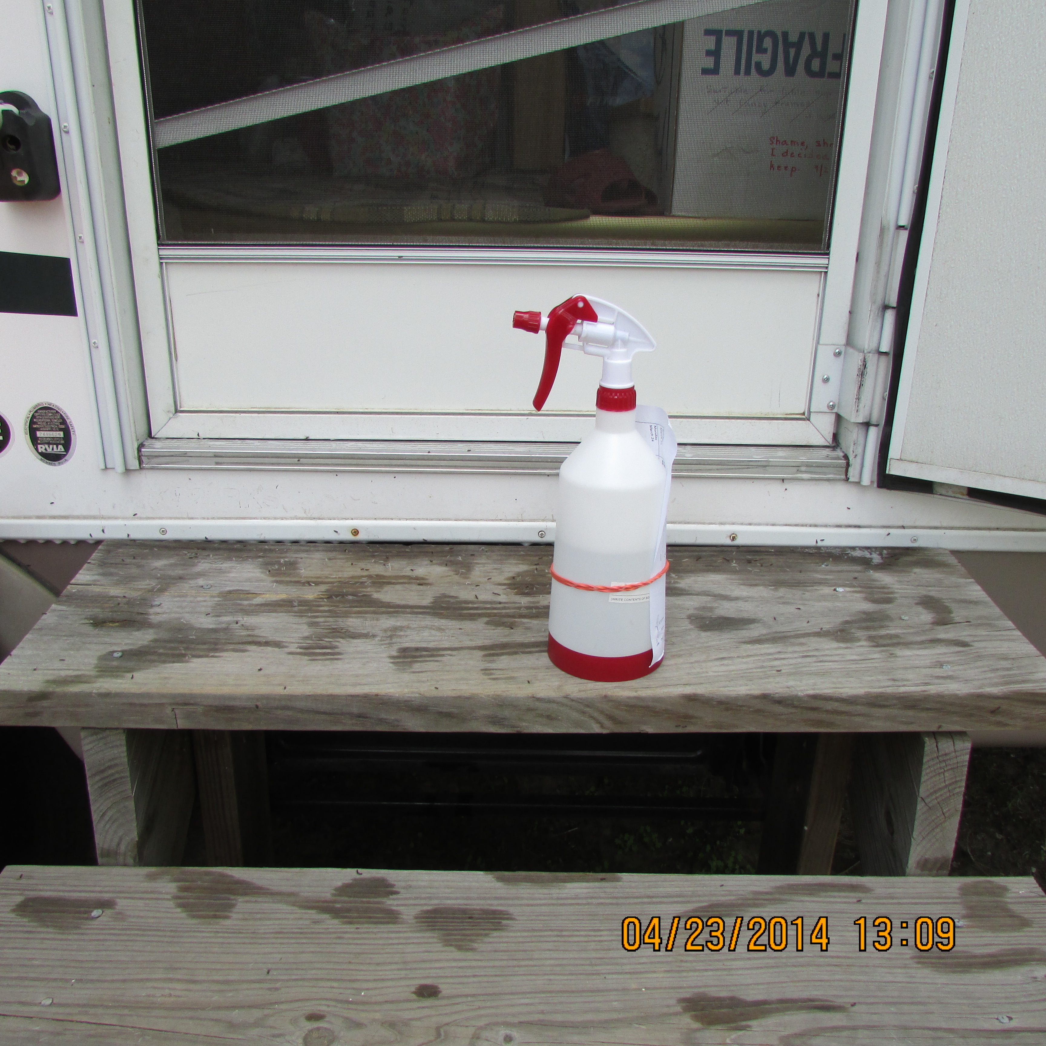 The storage building is crammed full of stuff. I don’t want to embarrass myself by posting a picture of the clutter piled in front of the electric fan. I persevered… and extricated the fan from the far back corner. It is oscillating in my kitchen area and cooling the living area. Sweet relief!! The thermometer hasn’t registered a cool down but my body has!! ~~ I’ve used some of my homemade insecticide on the flying nuisance but it does not seem to affect them. ~~ I’ll postpone “weed wacking.”