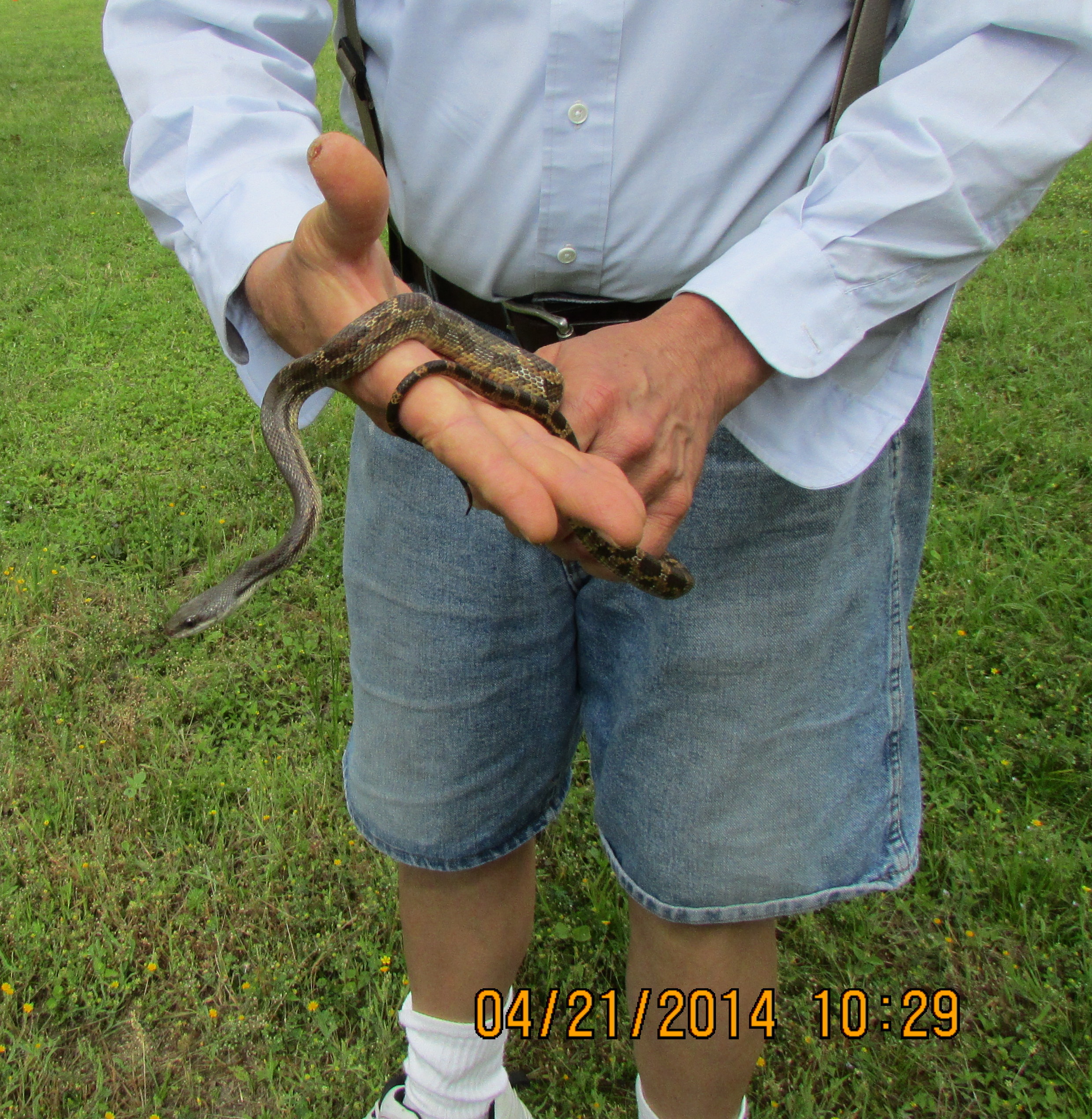 This Texas Rat Snake is not welcome in my garden!! Fortunate for me, a neighbor is very knowledgeable about reptiles and came to my rescue!! Tom carried the snake to the woods at the far side of field.