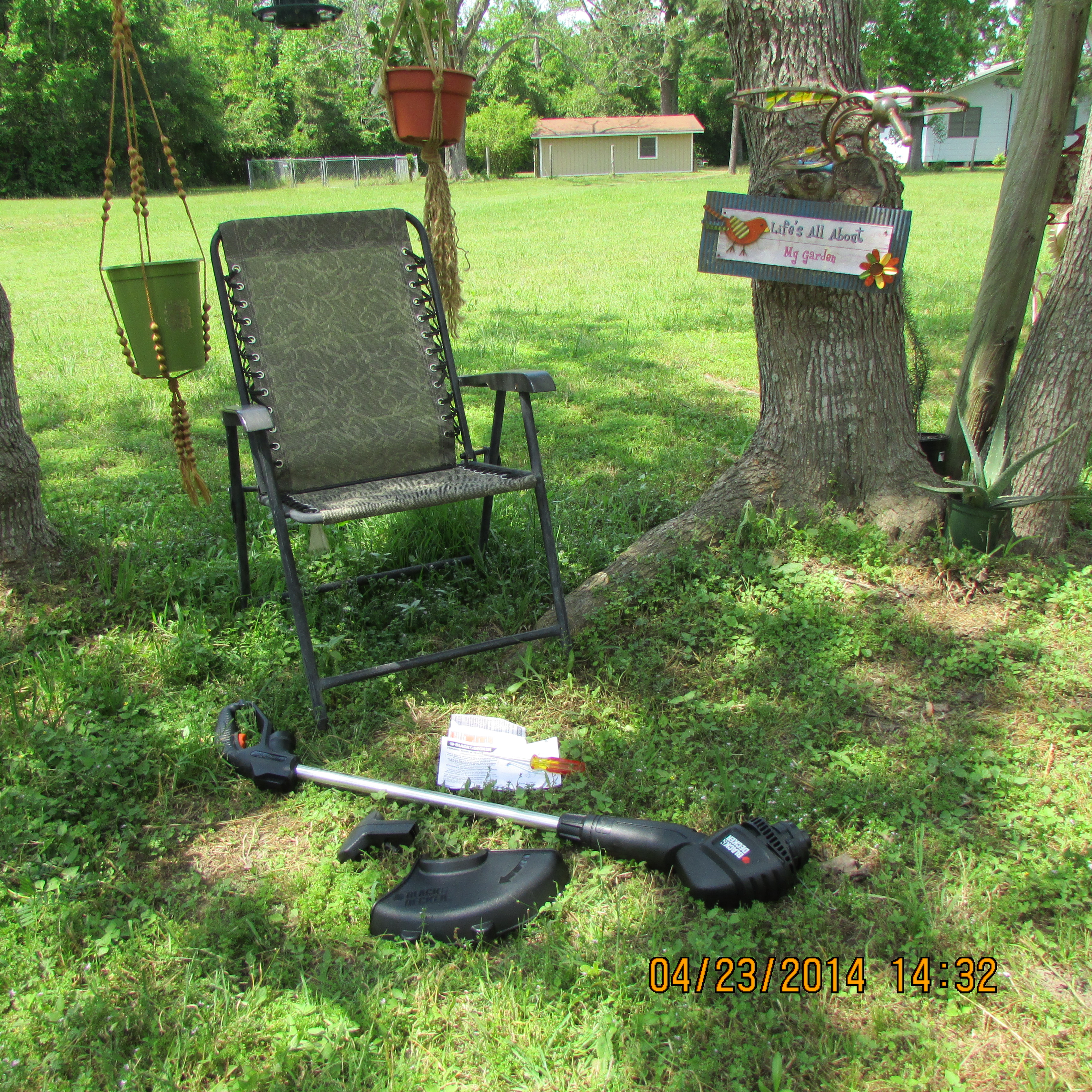 The Black & Decker Weed Eater was calling my name. I assembled it in the shade. I “wacked” for a few minutes before retreating to the “fan”-conditioned trailer.