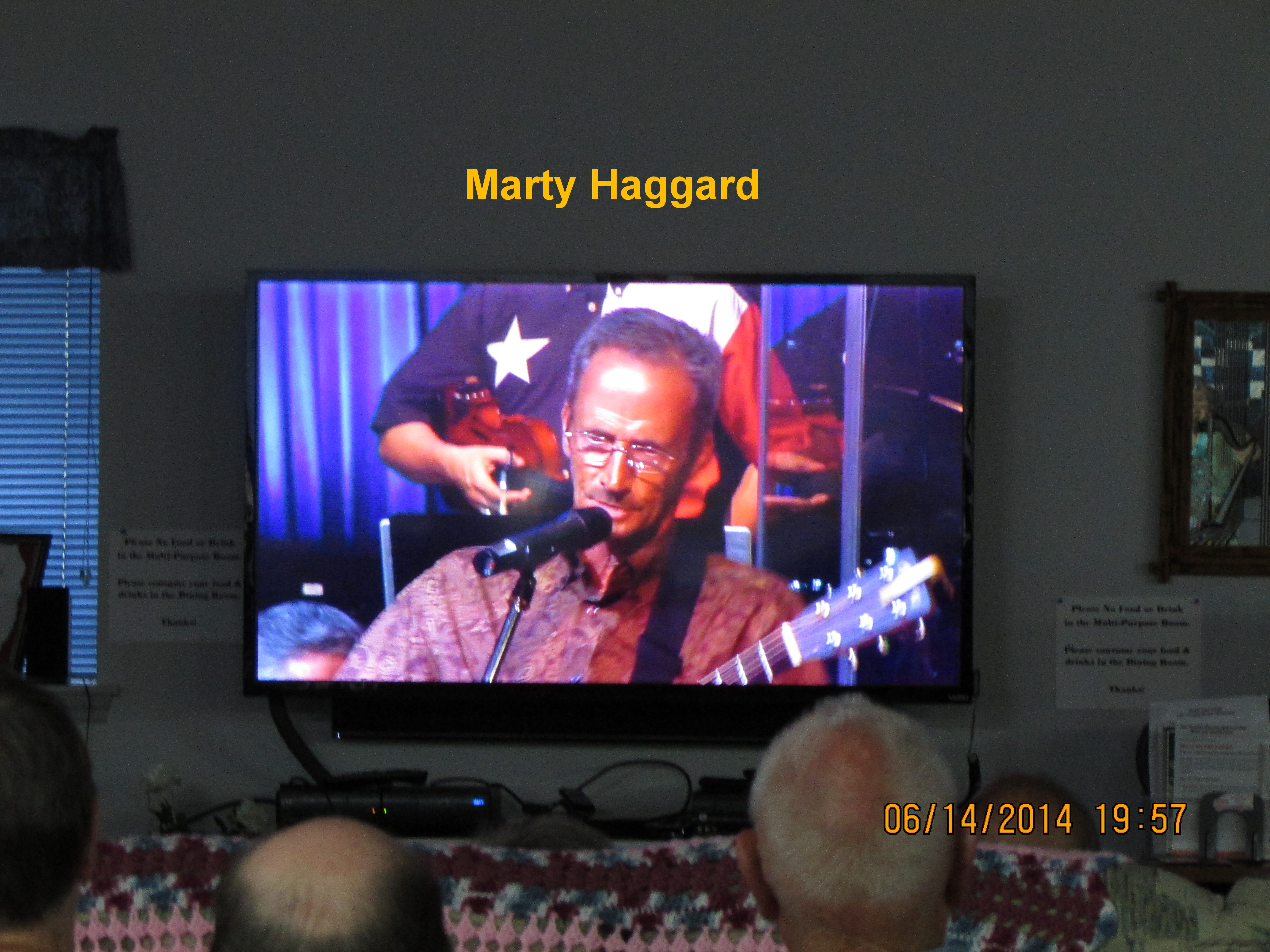 “Too hot, too cold.” Is there no happy medium? The multi-purpose room was colder than my refrigerator!! (The temperature is pleasant in my humble home.) The music was great: Marty Haggard paying tribute to his father Merle Haggard.