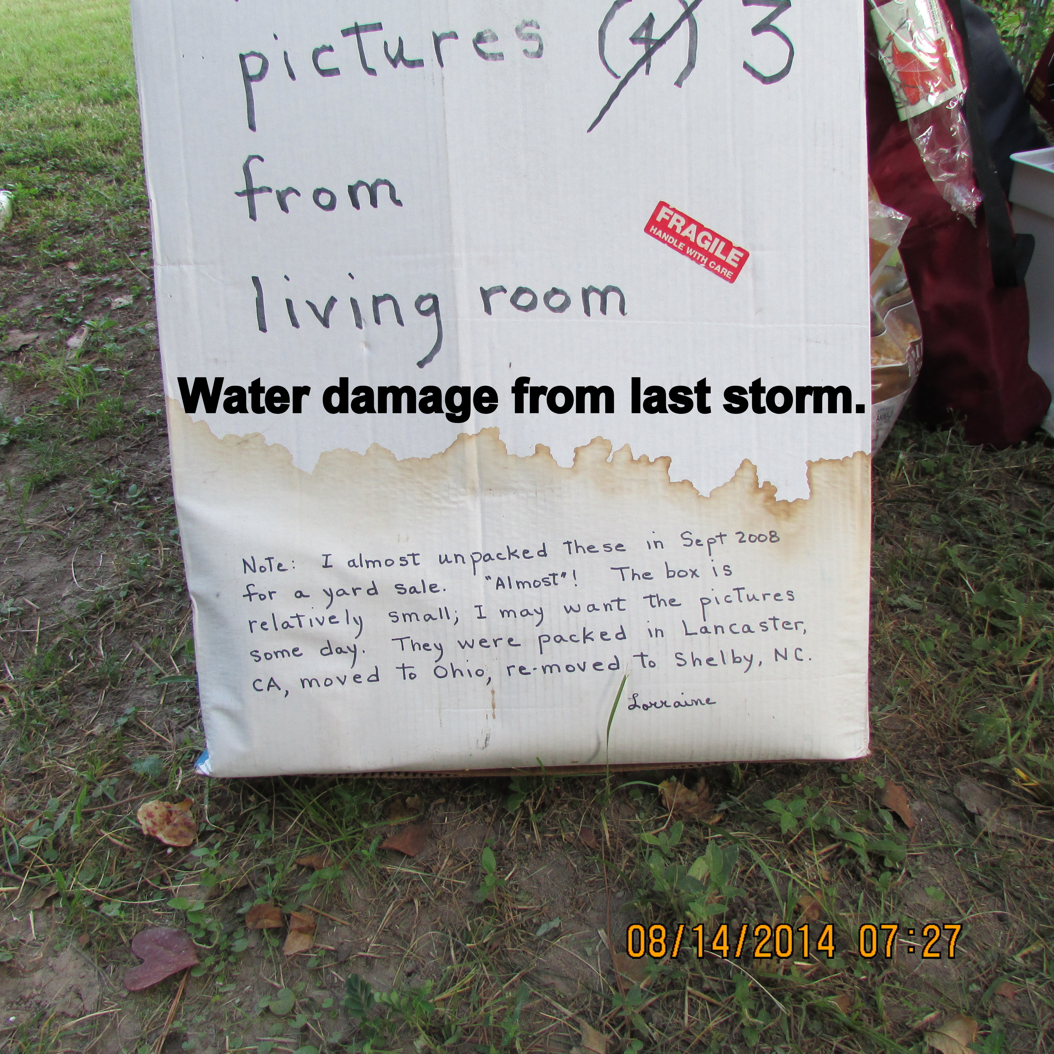 Gratefully, we did not have high humidity today. By noon, I could no longer work in the storage building. With the exception of three young men who lifted several heavy boxes, I moved everything out and will move everything in. Actually, contents of many boxes, still in the yard, will be scrutinized and items donated to local charities. It’s 4:15 and uploading pictures and preparing this blog is the most strenuous work I’ll do during the remainder of this day!! I’m exhausted!! ~~ Click each picture to enlarge for better viewing.