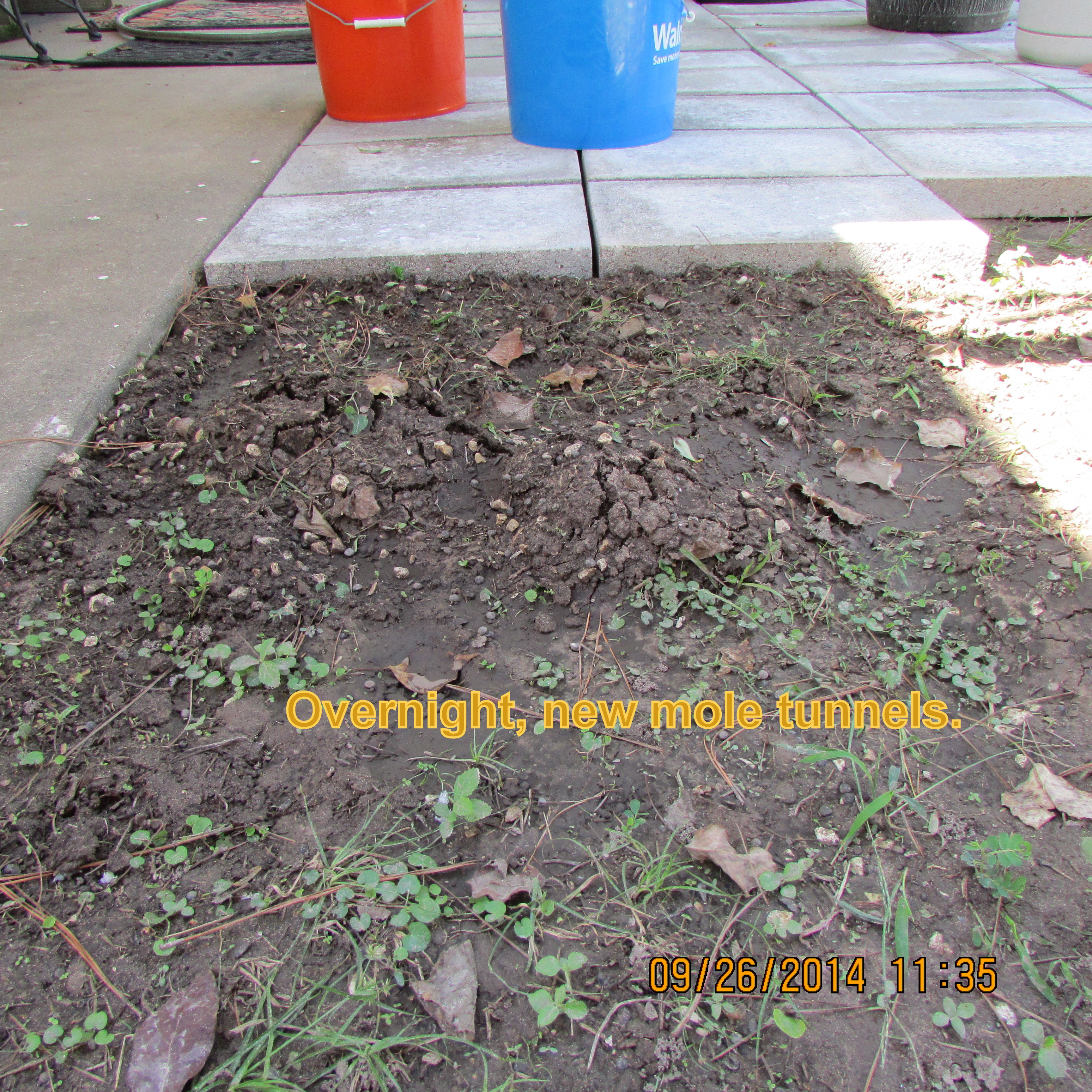 Postscript, Friday, September 26, 11:45 AM: See why I must cover the ground in my yard?? An old lady can twist an ankle stepping in one of those tunnels!! Those are new overnight or early this morning.