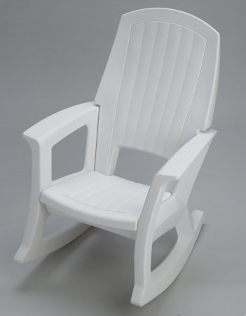 While browsing a thrift shop, I saw a Rubbermaid high back rocking chair. “Oh, that would be ideal for my patio!!” Sadly, it had already been sold. To satisfy my curiosity, I searched the Internet (because I had never previously seen that chair before). OMG; too expensive!! ~~ I’ll spend over $100.00 for a composter and $100.00 (each) for rain barrels but I won’t spend over $100.00 for a plastic patio chair!!